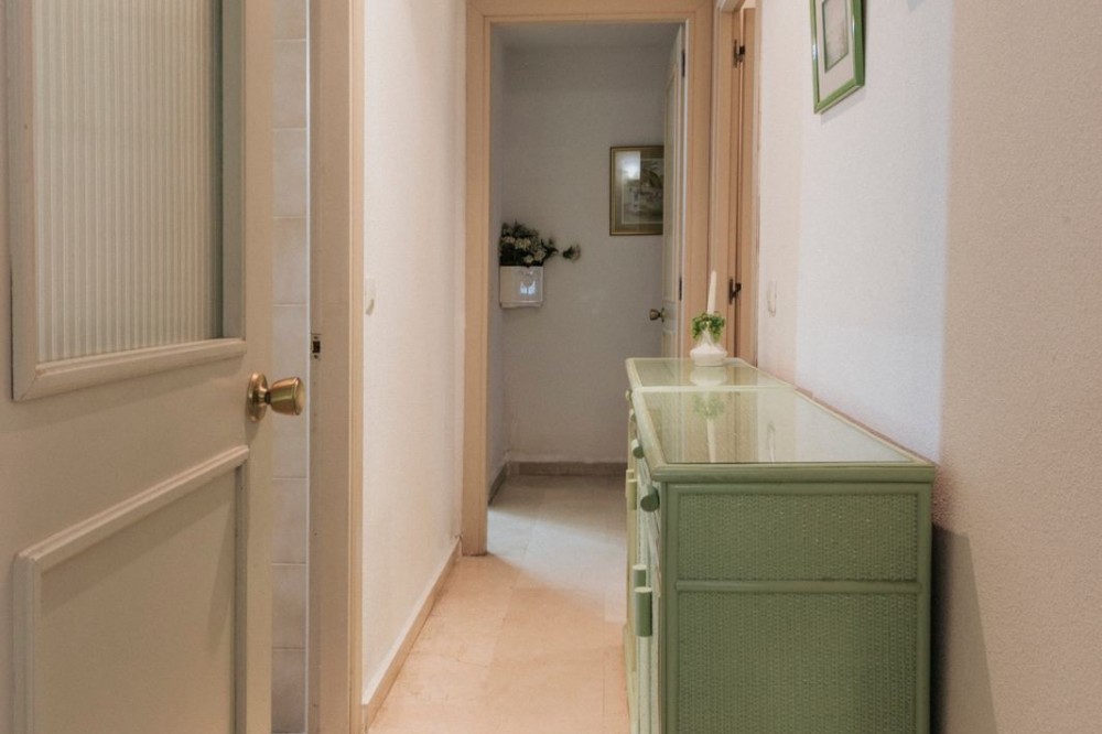 - Ground floor apartment with private garden in urbanization facing the sea A ground floor apartment of 90 m² built is offered for sale, located in a consolidated and quiet urbanization on the beachfront, The property is distributed in: Two bedrooms. Two complete bathrooms. Large porch with direct access to a private garden, located in an area of the urbanization with high privacy and no pedestrian traffic in front of the house. Independent kitchen and living-dining room with direct access to the outside. Includes parking space and storage room. The urbanization has a community pool and direct access to the promenade of the Estepona Marina. The beach is less than 5 minutes walk away, allowing you to enjoy a privileged coastal environment with total comfort. An ideal property for those seeking tranquility, privacy and an unbeatable location by the sea. Ground Floor Apartment, Estepona, Costa del Sol. 2 Bedrooms, 2 Bathrooms, Built 90 m², Terrace 15 m². Setting : Beachfront, Town, Commercial Area, Beachside, Port, Close To Port, Close To Shops, Close To Sea, Close To Town, Close To Schools, Marina, Close To Marina, Urbanisation, Front Line Beach Complex. Orientation : South. Condition : Good. Pool : Communal. Climate Control : Air Conditioning, Hot A/C, Cold A/C. Views : Garden. Features : Covered Terrace, Lift, Near Transport, Private Terrace, WiFi, Storage Room, Utility Room, Ensuite Bathroom, Marble Flooring, Double Glazing, Near Church, Fiber Optic. Furniture : Fully Furnished. Kitchen : Fully Fitted. Garden : Communal. Security : Gated Complex. Parking : Underground, Garage, Covered, Private. Category : Beachfront, Resale.