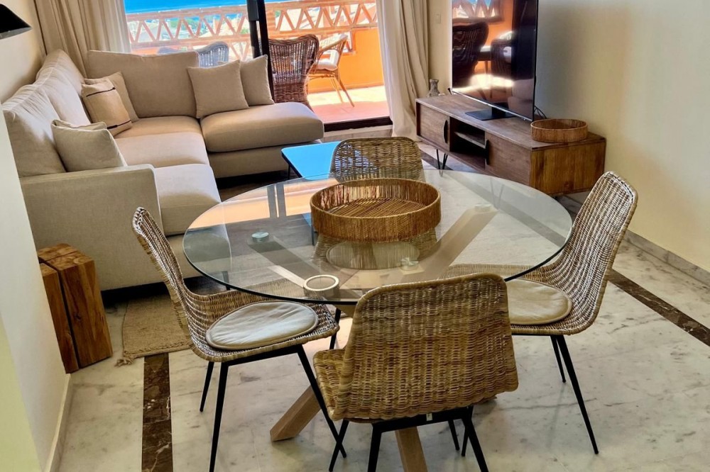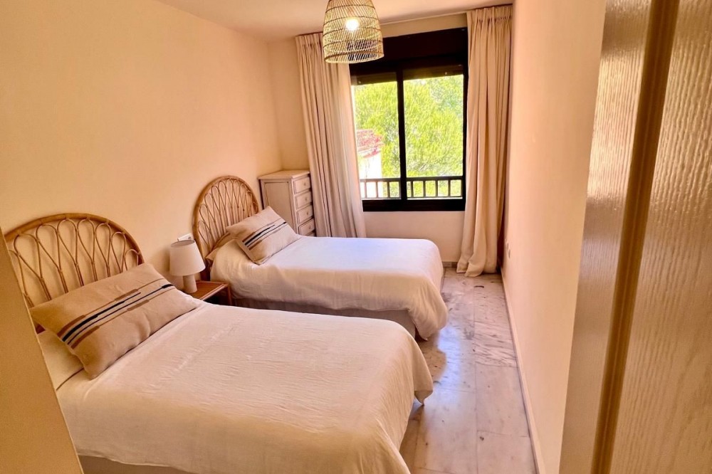 - Discover this magnificent property totally exterior, located in one of the most coveted areas of Marbella: the prestigious Golden Mile. Just 100 meters from the beach, this fabulous duplex penthouse offers a privileged lifestyle in a safe environment surrounded by nature. Located in an elegant gated residential complex, with 24h security, large gardens, two swimming pools for adults, two children's pools and playground, this property is ideal for both families and for those looking for a second home with all services at hand. The property is distributed in two floors: On the main floor, you will find an entrance hall, two bedrooms with fitted closets, a full bathroom, separate kitchen with access to the terrace and a spacious living-dining room that opens onto a 15 m² terrace with spectacular views of the sea and green areas. On the upper floor there is a third bedroom with fitted closets, a full bathroom and access to a private solarium, ideal for enjoying the sun and tranquility throughout the year. Equipped with centralized air conditioning hot / cold on the main floor and independent on the second floor, this house combines comfort, spaciousness and brightness. It includes a parking space for a large car and storage room of 8 m², adding convenience and additional storage space. A unique opportunity to live next to the sea, with privacy, privacy and privacy.