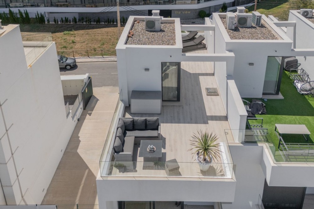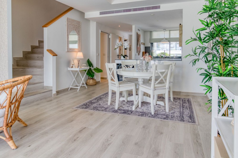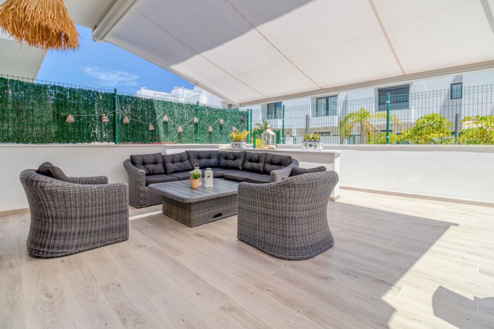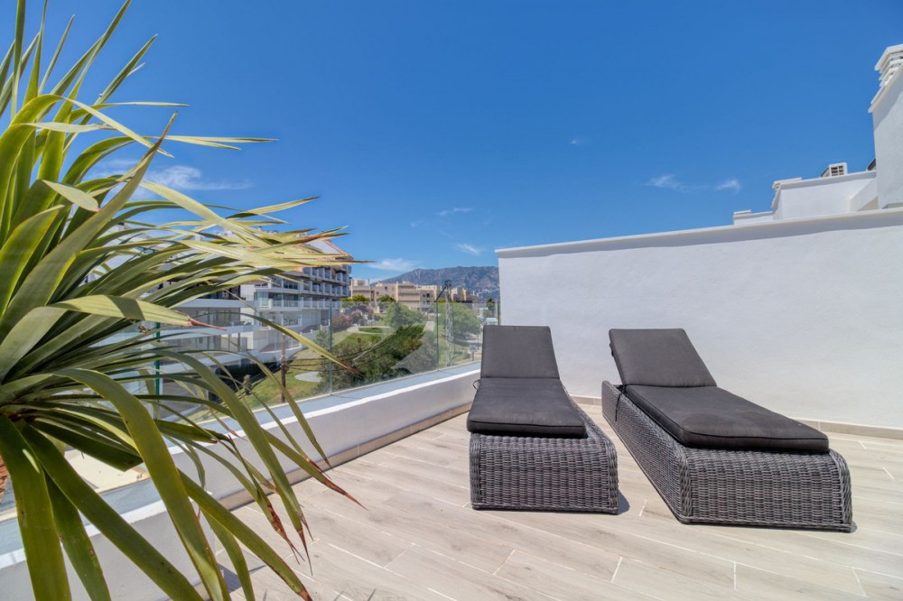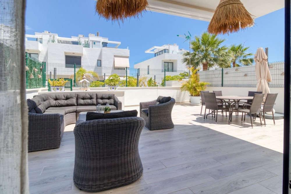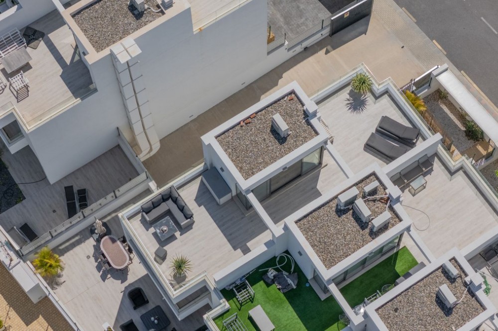 - = Stylish Modern Townhouse with prime location next to the beach in Fuengirola = This exceptional 3-bedroom townhouse offers the perfect blend of modern design, generous indoor-outdoor living spaces, and a premium location just minutes from the beach and Fuengirola’s charming town center. Set within a private gated community, this home is ideal whether you’re seeking a full-time residence, a holiday getaway, or a smart investment on the Costa del Sol. Highlights = Location: 6 minute walking distance to the beach, Sohail Castle, restaurants, shops, and transport. = The entire community has its own water softening filter = Built in: 2022 – modern, well-maintained, and move-in ready = Private garage: Direct access and space for 2 vehicles - 48 m² = Built area: 202 m² on three levels = Private plot: 317 m² with 115 m² of terraces and garden = Rooftop solarium: 55 m² with sweeping sea and mountain views = Bedrooms: 3 spacious rooms including a master with en-suite and private terrace = Bathrooms: 2 full bathrooms + 1 guest toilet = Community features: Swimming pool, gym, sauna, landscaped areas = Orientation: South and west for optimal natural light = Energy efficiency: Double-glazed windows and hot/cold air conditioning = Only 19 minutes to Málaga Airport. Whether enjoying sunset views from your private rooftop, entertaining on your garden terrace, or relaxing in the comfort of your stylish interiors, this property offers a lifestyle of ease and elegance. With its unbeatable location and access to premium amenities, it’s a rare opportunity to own a modern home in one of the Costa del Sol’s most desirable coastal towns.
