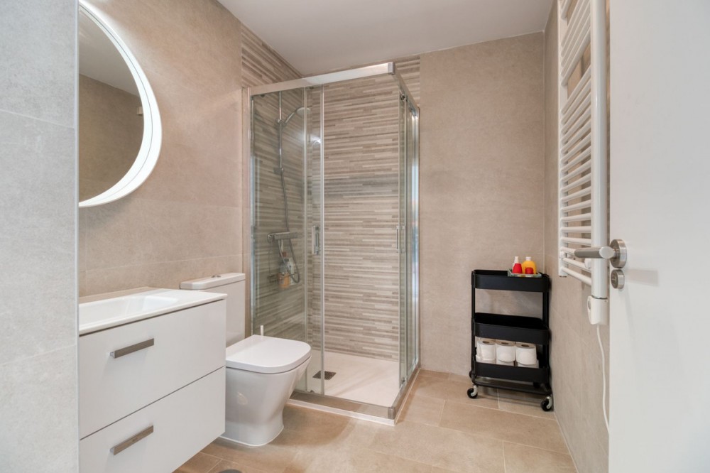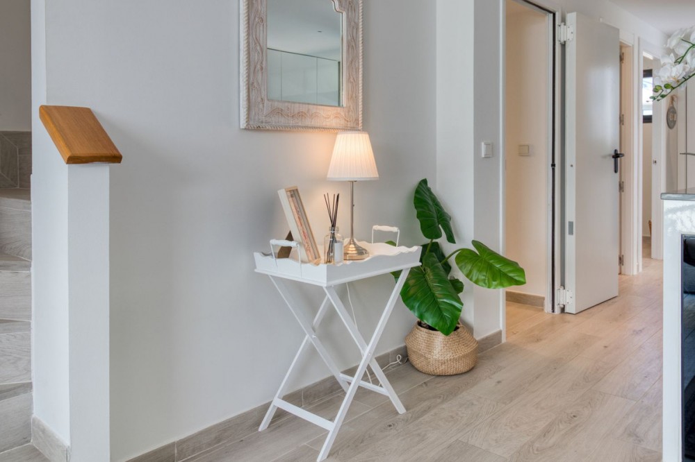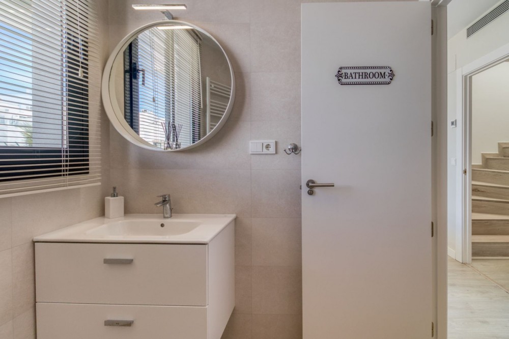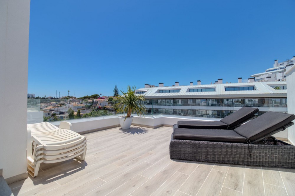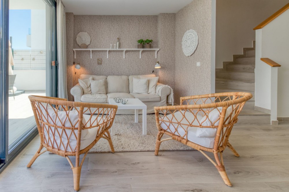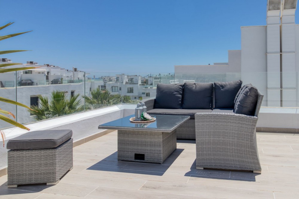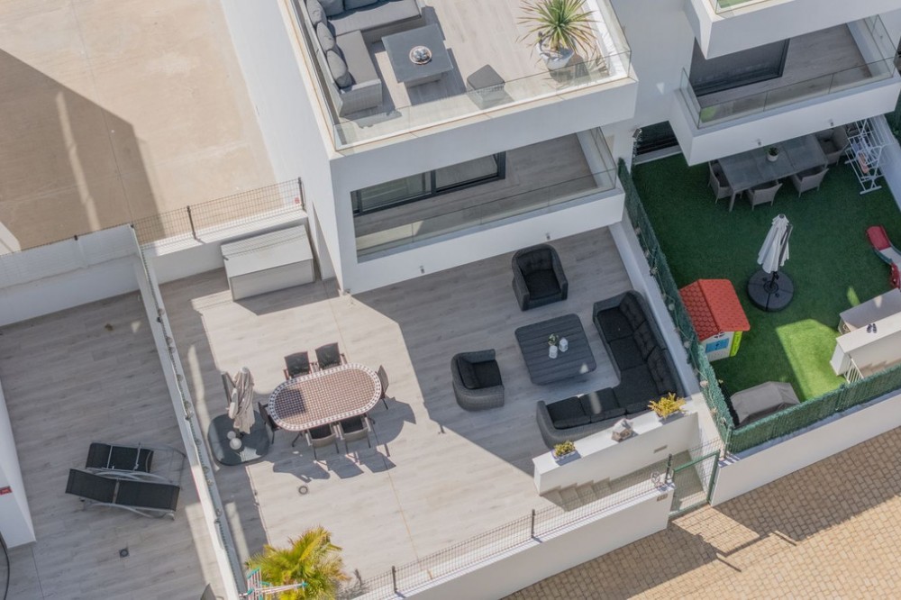 - = Stylish Modern Townhouse with prime location next to the beach in Fuengirola = This exceptional 3-bedroom townhouse offers the perfect blend of modern design, generous indoor-outdoor living spaces, and a premium location just minutes from the beach and Fuengirola’s charming town center. Set within a private gated community, this home is ideal whether you’re seeking a full-time residence, a holiday getaway, or a smart investment on the Costa del Sol. Highlights = Location: 6 minute walking distance to the beach, Sohail Castle, restaurants, shops, and transport. = The entire community has its own water softening filter = Built in: 2022 – modern, well-maintained, and move-in ready = Private garage: Direct access and space for 2 vehicles - 48 m² = Built area: 202 m² on three levels = Private plot: 317 m² with 115 m² of terraces and garden = Rooftop solarium: 55 m² with sweeping sea and mountain views = Bedrooms: 3 spacious rooms including a master with en-suite and private terrace = Bathrooms: 2 full bathrooms + 1 guest toilet = Community features: Swimming pool, gym, sauna, landscaped areas = Orientation: South and west for optimal natural light = Energy efficiency: Double-glazed windows and hot/cold air conditioning = Only 19 minutes to Málaga Airport. Whether enjoying sunset views from your private rooftop, entertaining on your garden terrace, or relaxing in the comfort of your stylish interiors, this property offers a lifestyle of ease and elegance. With its unbeatable location and access to premium amenities, it’s a rare opportunity to own a modern home in one of the Costa del Sol’s most desirable coastal towns.