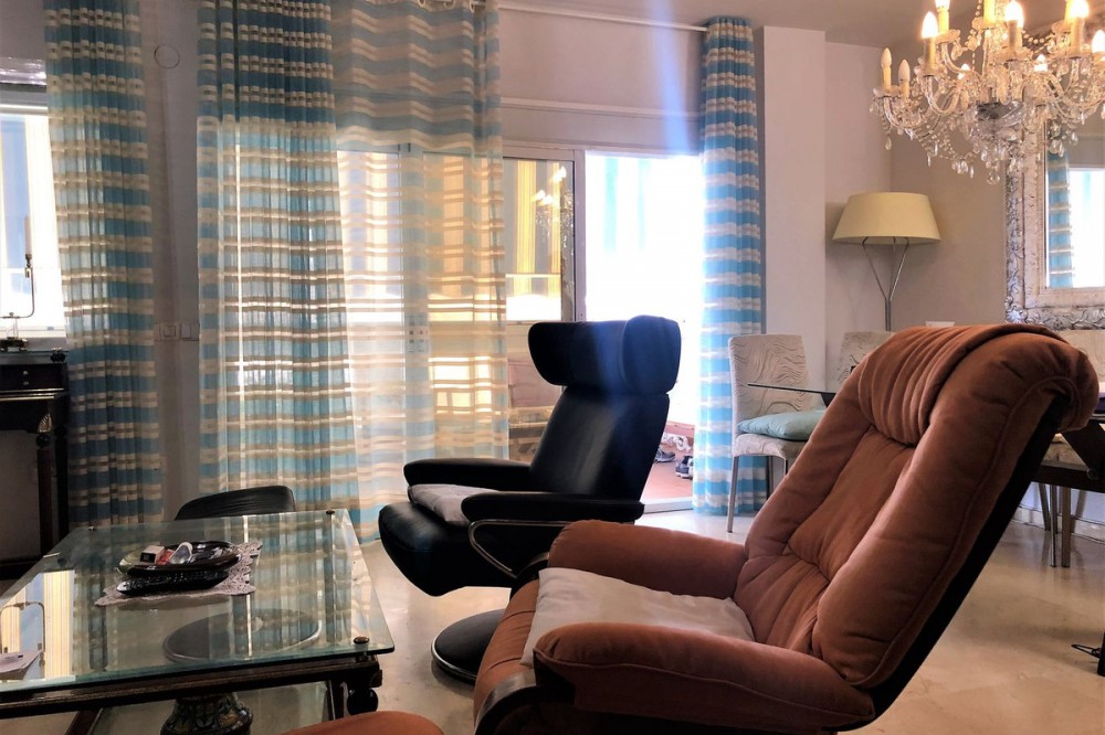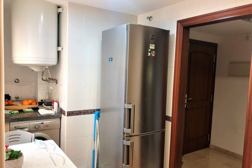 - Middle Floor Apartment, Fuengirola, Costa del Sol. 3 Bedrooms, 2 Bathrooms, Built 126 m², Terrace 12 m². Setting : Town, Commercial Area, Port, Village, Close To Shops, Close To Sea, Close To Schools. Orientation : South West. Condition : Excellent. Pool : Communal. Climate Control : Air Conditioning, Hot A/C, Cold A/C. Views : Urban. Features : Covered Terrace, Lift, Fitted Wardrobes, Near Transport, Private Terrace, Satellite TV, Ensuite Bathroom, Access for people with reduced mobility, Marble Flooring, Restaurant On Site, Courtesy Bus, Near Church. Furniture : Fully Furnished. Kitchen : Fully Fitted. Security : Entry Phone. Parking : Underground, Garage. Utilities : Electricity. Category : Luxury.