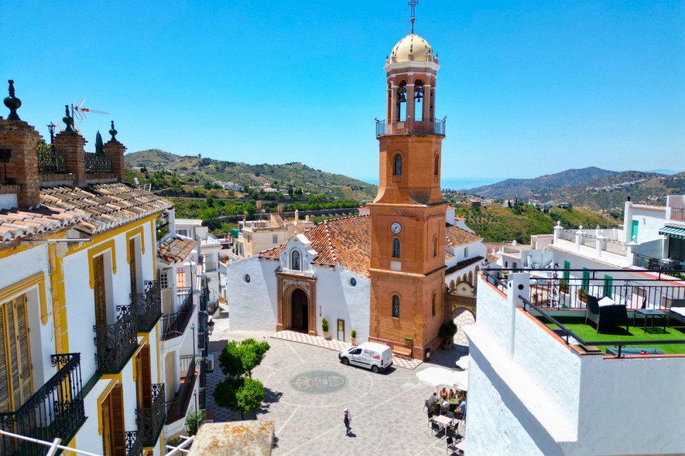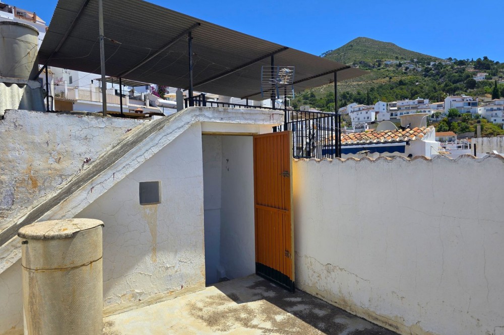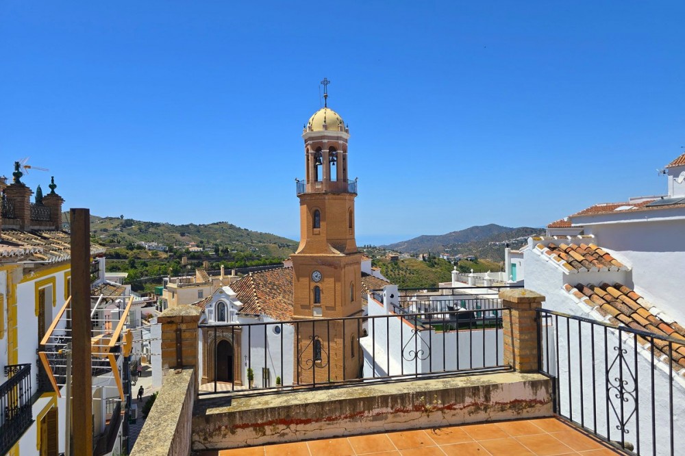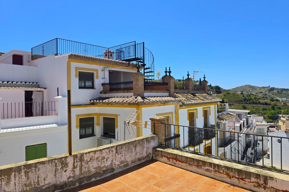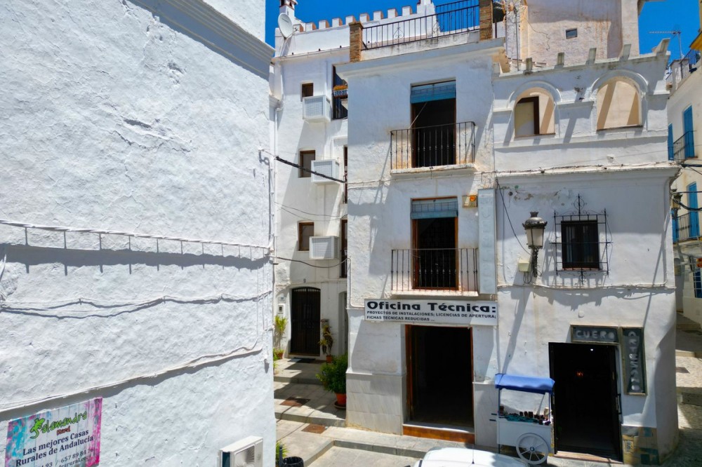 • For Sale: Historic Business & Residential Property in Prime Cómpeta Location – Full Renovation Required A rare opportunity to acquire a prominent historic townhouse in one of Cómpeta’s best locations, directly overlooking the main village square. This spacious property offers huge potential for business and residential use but requires full renovation to bring it up to modern standards. With approximately 210 m² built over four floors, the ground level features two independent commercial units, ideal for shops, offices, or as a reception area for a future B&B. A third entrance provides private access to the residential space above. The upper floors comprise a living room, dining room, kitchen, bathroom, four bedrooms, a small patio, several large storage rooms, and two south-facing roof terraces with sweeping views over the square and down to the sea. Original features such as handmade floor tiles, wooden beams, Juliette balconies, and shuttered windows give the property authentic charm. The structure is solid, with a new roof and re-rendered ground floor, but a full internal renovation is needed, including kitchen, bathroom, plumbing, and electrics, to meet today’s comfort and design standards. Ideal for buyers looking to create a boutique hotel, business premises with living space, or a unique family home in the very heart of Cómpeta.