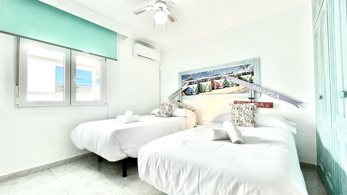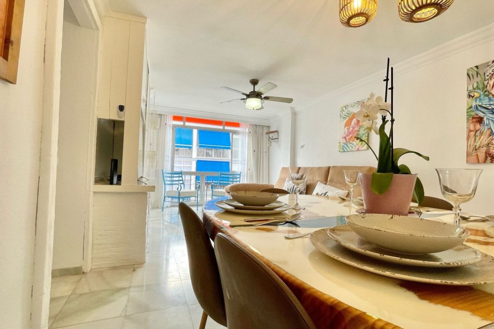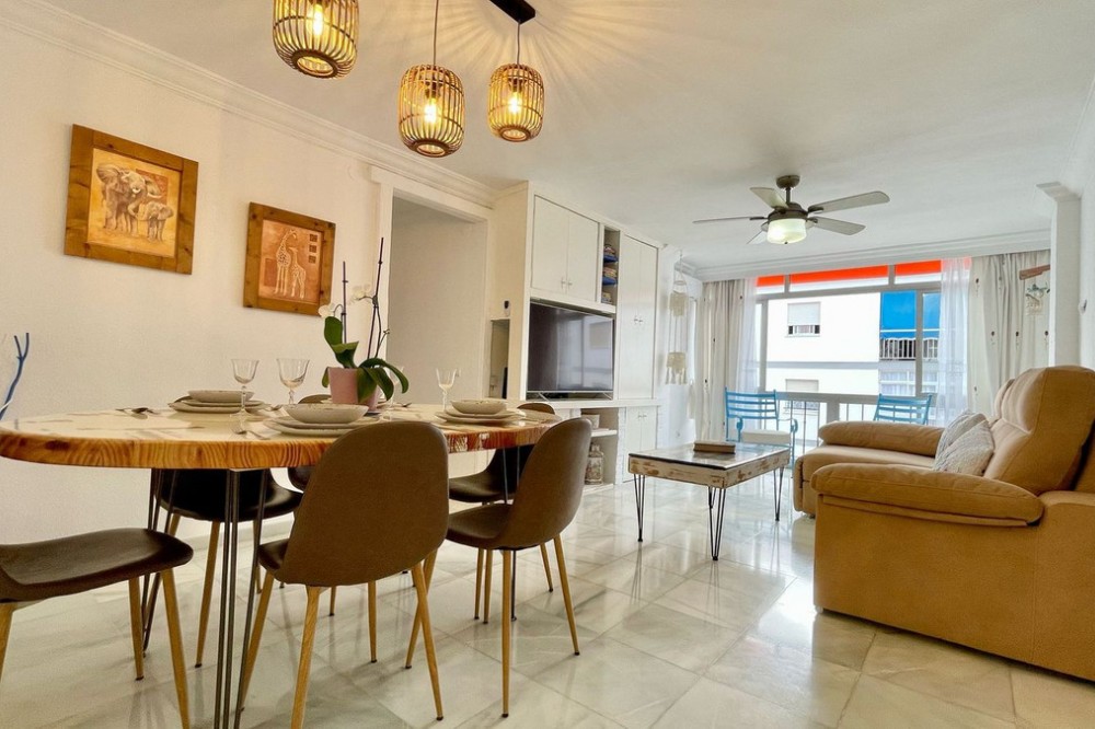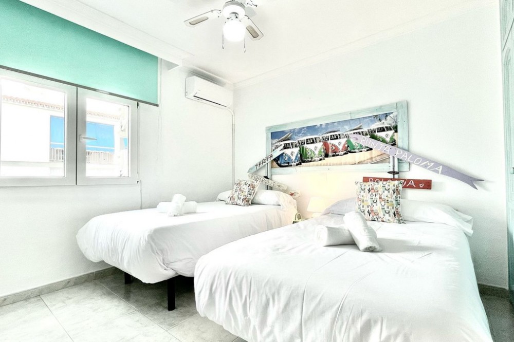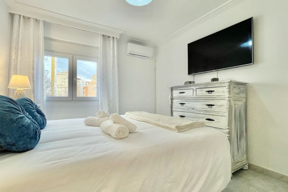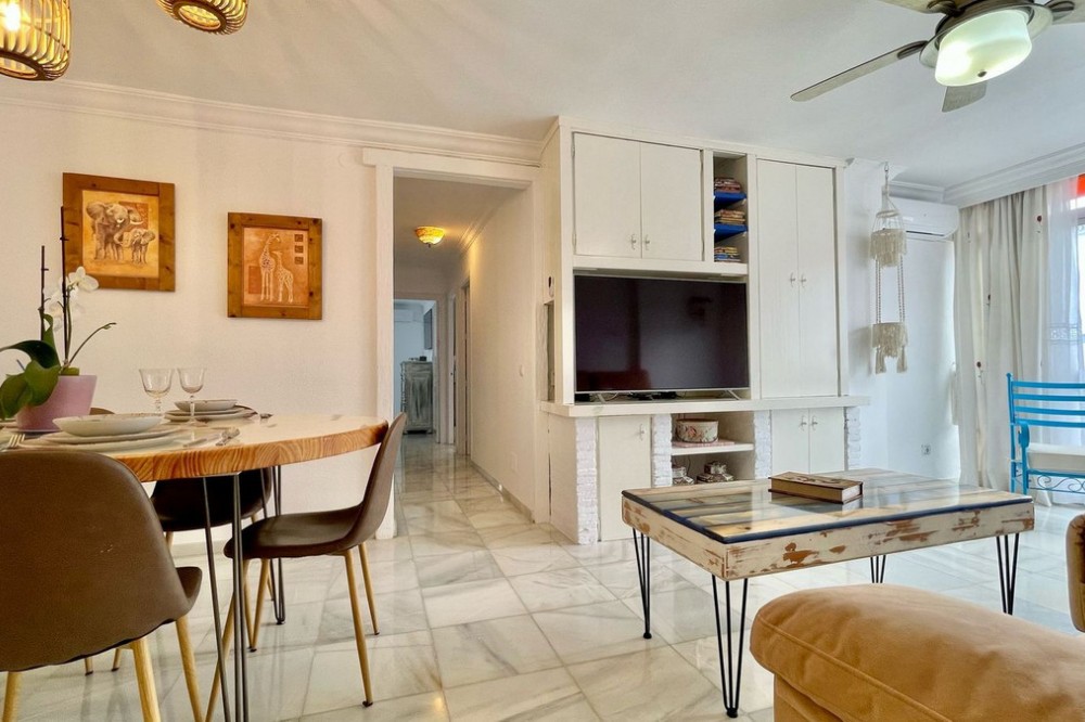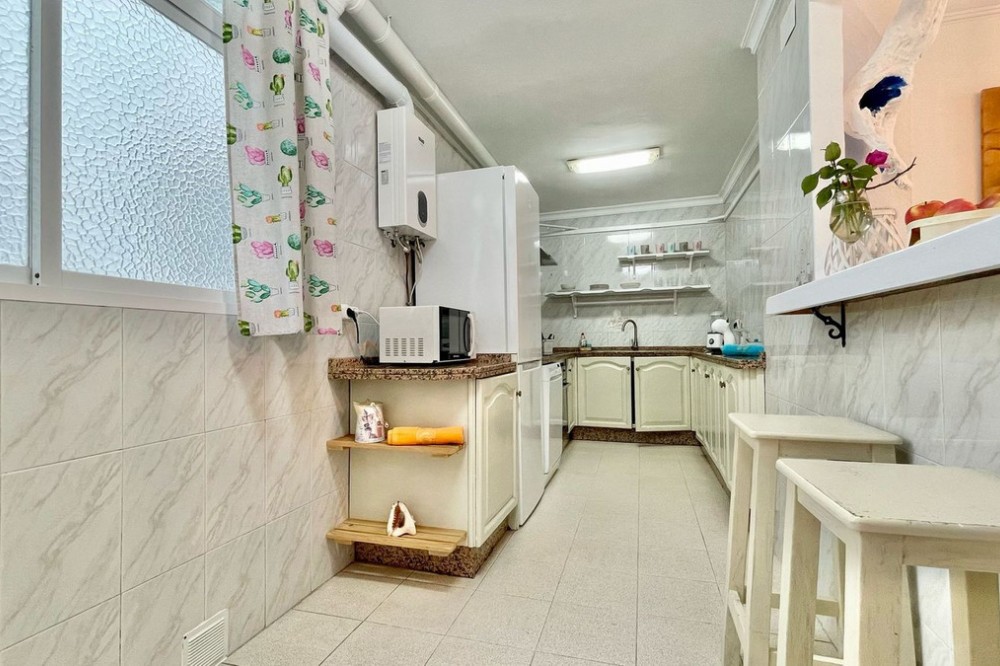- Fabulous property of 120 square metres built and distributed in three bedrooms (1 single and 2 doubles) and a complete common bathroom. At the entrance we have a small hall that leads to a spacious kitchen with an opening as a window that connects it with the living-dining room that enjoys a fantastic window as a balcony through which enters brightness and natural light throughout the day. The master bedroom has an exit to a balcony. The bathroom and the bedroom windows have been renovated. It has air conditioning by Split with hot and cold. The property is located in a very busy area and very close to both the Boulevard (300m) and the Paseo Marítimo de San Pedro (1 km), and is surrounded by all kinds of services and shops which makes the property very comfortable for the owners in the daily chores. The area has an endless number of parking spaces in the street all around the house and in the adjoining streets. Flat area with no major slopes. The building has accessibility for people with reduced mobility with ramps and lift. IBI and Rubbish - 500 €/year.