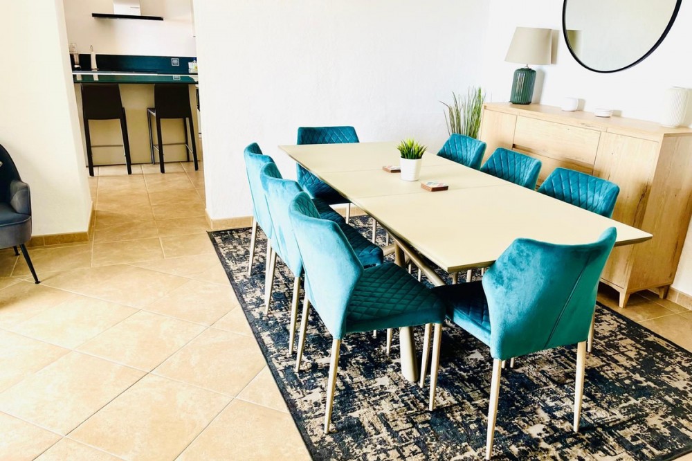 - Unique Triple-Townhouse Conversion on Mijas La Nueva – Versatile Living with Private Terraces and great views Prime Location | 6 Bedrooms | 4 Bathrooms | Large Terrace | Dual-Level Living Welcome to a one-of-a-kind opportunity — three adjoining townhouses creatively combined into a single, expansive property. Located in the highly sought-after community of Mijas la Nueva. This distinctive 6-bedroom, 4-bathroom bungalow-style home is the result of a creative and thoughtful conversion of three adjoining townhouses into a single, spacious residence—offering an ideal blend of character, comfort, and functionality. This home is ideal for multi-generational families, boutique investors, or visionary renovators. Property Highlights: Three Homes in One: Each original townhouse has been cleverly repurposed to create three distinct yet interconnected zones. The first features a modern, fully equipped kitchen renovated just two years ago. The second offers a welcoming dining area and a convenient service kitchen. The third serves as a cozy lounge area, perfect for relaxing or entertaining. Seamless Indoor-Outdoor Living: The entire front of the home opens up to a large shared terrace boasting spectacular views—ideal for al fresco dining, sunbathing, or enjoying the tranquil surroundings. Private Bedroom Wings: Upstairs, the layout retains the charm of the original townhouses, each with its own staircase leading to two bedrooms and a bathroom—offering complete privacy and independence for family members or guests. The front bedroom in each wing is a bright double with access to a private upper terrace. The back bedroom is a cozy twin with built-in wardrobes, ideal for children or visiting guests. Additional Features: Air conditioning throughout for year-round comfort Jacuzzi hot tub for ultimate relaxation Abundant communal parking available nearby Combined Summary of the Three Townhouses (Converted into One) Metric Combined Total / Notes Built Area (2 levels) 242 sqm (83 + 79 + 80 sqm) — total internal floor area Graphic Surface (Plot Area) 146 sqm (51 + 48 + 47 sqm) — ground footprint of all 3 units Dwelling Area 106 sqm (36 + 35 + 35 sqm) — main living space Other Internal Areas 30 sqm (11 + 9 + 10 sqm) — hallways, stairs, etc. Total Internal Area (Net) 136 sqm (Dwelling + Other) Levels 2 per townhouse — across 3 homes Bedrooms 6 total — 2 bedrooms per townhouse Bathrooms 4 total — 1 upstairs bathroom per townhouse and 1 downstairs Estimated Frontage Width ~15 meters — approx. 5 meters per townhouse Estimated Terrace Depth 1.5m – 2.5m (typical range) Estimated Front Terrace Size ~25–35 sqm — full-width terrace across all 3 frontages Ownership Structure & Running Costs – What You Need to Know As this property is comprised of three originally independent townhouses that have been seamlessly combined, each still retains its own title deed. This means the sale will involve three separate transactions, an important consideration for any prospective buyer or investor. Utility Bills & Community Fees: Each section of the property continues to generate its own utility bills (electricity, water, and local charges such as basura) and community fees for the urbanization. As such, the annual running costs are higher than average, estimated at approximately €4,500 per year for the 3 townhouses, compared to the usual €1,500 for a single unit. There may be potential to combine this into one property, however to combine urbanization fees this would need to be agreed at an AGM. Investment Potential & Flexibility: This structure also provides added flexibility. Buyers may choose to continue enjoying the property as one expansive home, or easily reconvert it into three individual homes, or perhaps split it into a 4-bedroom and a 2-bedroom layout, depending on personal needs or rental strategy. This unique setup may come with additional costs, but it also offers unparalleled versatility, privacy, and future potential—a rare find in a character-rich location like Mijas la Nueva. We have the keys and are ready to show you!