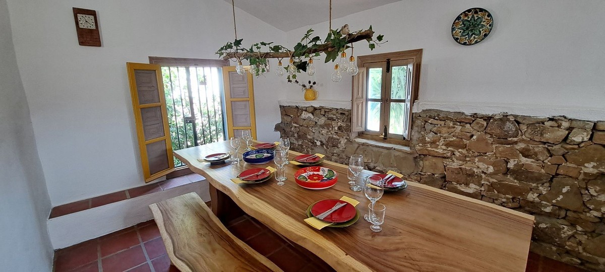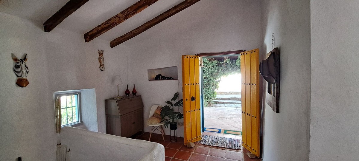 - Location This classic Cortijo, about 40 minutes drive from Málaga airport, is easily accessible for both national and international guests. The road to the Cortijo is paved and during the route to the Cortijo you immediately enter the typical Andalusian countryside with distinctive mountains, olive & fruit trees and many breathtaking views. Casa Canelo is a unique Andalusian Cortija built in the classic style and, while retaining all its architectural charm, has been sympathetically renovated and extended to offer all modern conveniences. The estate extends to 48,550m2 with 300m2 of built property. It includes a successful Airbnb rental and extensive planted hillsides and gardens. The property is fortunate to be connected to fresh drinkable spring water from the El Torcal mountain. While being complete in itself the property additionally offers the opportunity for simple conversion into a guest house and/or the installation of further rental businesses across the estate. The bustling white village of Alora with its Spanish charm is about 15 minutes drive from this cortijo and offers all necessary amenities including restaurants and bars, local shops and a medical centre as well as a primary and secondary school, sports facilities and a quick train connection to Málaga. For adventurers and holiday makers there are several options nearby such as kayaking on the Ardales lakes, hiking on the worldfamous “El Caminito del Rey”, mountain climbing in El Chorro and kilometres of hiking and cycling trails through the beautiful surroundings. The UNESCO natural park El Torcal is a national attraction and is even visible from your own estate. The approach to the property is through a wooded and lush mountain valley. Arriving at the secure metal gates you immediately appreciate the beautiful country setting, nestled into a small hillside and surrounded my spectacular views. There are beautiful views of the rolling countryside from every part of the plot. There is plenty of planting, rock formations and many beautiful footpaths on the estate. With plenty of space, privacy is guaranteed and you have endless possibilities. A driveway leads you to the Cortijo Cortijo Top floor A lush ivy archway surrounds a portico and it is through this you enter the front of the house on the top floor. Classic Spanish studded doors open into a bright rustic hallway with beams and arches showing off the magnificent thick and sturdy cortija walls. The Cortijo retains its authentic atmosphere but with all the comforts you would expect in a modern home. On the top floor is the spacious kitchen and open dining room. The kitchen is well equipped with all the expected built-in appliances. Across the breakfast bar is a dining area for great evenings of entertainment and culinary enjoyment. From the kitchen, there are breathtaking views all around, through the authentic windows with wooden shutters. Continuing through the charming hall, we enter the master-bedroom with en-suite bathroom. The ensuite has Jack and Gill doors one from the bedroom and the other into the hall. The ensuite has a recently installed modern bathroom suite with bright Spanish tiling and invigorating pan head shower. When you wake up, in the morning, you can take a seat on your own private terrace to enjoy the stunning views of the countryside all around you. The open entrance hall finds a traditional tiled stairwell leading down to the ground floor of the Cortijo. Cortijo Ground floor Down here are two further double bedrooms The wooden beamed hall here opens up into a family living room with large classic fireplace. Behind the living room is a small storage room that can be used for several purposes. This part is at least 100 years old !! From the adjoining back hall we turn into the modernised family bathroom with recent new fittings and tiles. The bath is a large jacuzzi style. For owners who may want to use the lower part of the main house for holiday rentals, there is a separate entrance. This entrance gives access to the pool and surrounding terraces. Swimming Pool The swimming pool (8x4 M) is surrounded with a large stone built terrace, olive trees and yuccas and offers breathtaking views over the valley. An unusual and beautiful feature are the natural rock walls surrounding the terrace creating an enchanting oasis to enjoy the tranquillity of this area. Casita This casita is very atmospheric and there are many beautiful classic elements, matching the main house. The casita is spacious and it contains a living room, followed by a bedroom. To the end of this casita is a large bedroom with double doors onto the shaded outside terrace. This bedroom and the main casita both have attractive natural stone walls. The Casita is heated by an effective woodburning stove. With some minor adjustments, this casita is ready to be used as holiday rental accommodation. Vegetable Garden An element that suits the rural location of this cortijo are the masonry white vegetables beds. These beds are meant for growing your own vegetables and fruit. Atmospheric and classic is a description that does justice to this section. There is an irrigation system to encourage the growth of the tastiest vegetables. Circus Wagon A short but beautiful hillside track takes you up to the properties unique, original Circus Wagon. Built in the 19th century, the wagon now nestles secluded in the hillside and has been renovated up to modern standards and is currently available for rental through Airbnb. The wagon has full tourist licenses and its success is proven by its multiple 5 star reviews. Displaying original artwork from circuses across Spain and uniquely decorated it is designed in full circus theme. Retaining all its original features, this circus wagon has been restored and features a super comfortable luxury double bed, dining area, sofa and a stylish fully equipped kitchen with all modern conveniences. The circus wagon is surrounded by a full decking with rocking sun c