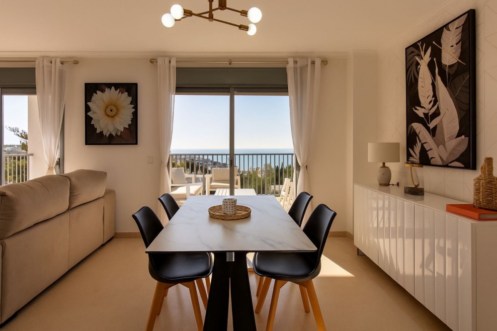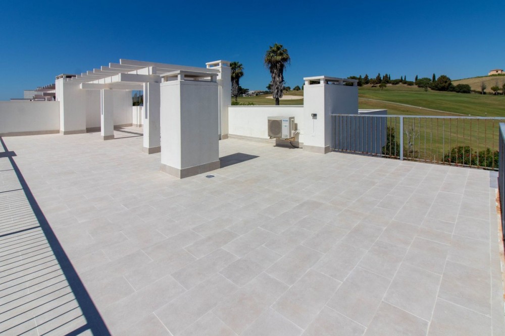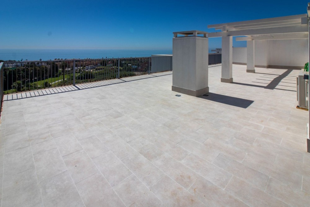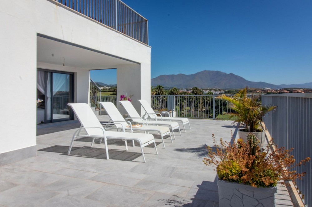 - Penthouse for Sale in Casares with Panoramic Sea and Golf Views. Walking Distance to Beach and Finca Cortesin This luxury three-bedroom penthouse in Casares offers stunning panoramic views of the sea, golf course, and surrounding mountains. Ideally located next to the prestigious golf courses of Finca Cortesin and Doña Julia, and just a short walk from the beach, this property offers one of the best locations on the Costa del Sol for lifestyle, investment, and year-round living. The apartment features 131 square metres of interior space and 230 square metres of private terraces. It is designed to enjoy the Mediterranean climate, with open views and outdoor living areas that make the most of the sun and the scenery. The layout includes three spacious bedrooms with built-in wardrobes and two modern bathrooms with high-quality finishes. The open-plan kitchen is fully equipped with premium appliances and flows seamlessly into the bright living and dining area, which connects directly to the main terrace. A separate utility room adds convenience for everyday living. The main terrace measures 106 square metres and offers plenty of space for outdoor dining, sunbathing, and relaxing. The private rooftop solarium is 118 square metres and offers panoramic views and complete privacy, perfect for creating your own outdoor oasis. Thanks to its southeast orientation, the property is filled with natural light throughout the day. Sea views are visible from every bedroom, the kitchen, the living area, and all terraces. The master bedroom includes a walk-in wardrobe, an en-suite bathroom, and private access to the terrace. There is also potential to enclose a section of the terrace to create a glassed-in living room or winter lounge, ideal for use throughout the year without sacrificing the open views. This penthouse is finished with a stylish and modern design, combining elegance and comfort. It is ideal as a permanent residence, a holiday home, or a rental investment with high return potential. Located in the sought-after area of Casares Costa, near Estepona, this property offers easy access to golf courses, beaches, restaurants, international schools, and two international airports. It is a rare opportunity to own a sea view property near Finca Cortesin, one of the top golf resorts in Europe. If you are searching for a luxury penthouse with large terraces, sea views, and a prime location on the Costa del Sol, this is an opportunity not to miss.