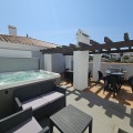 - Stunning Two-Story Penthouse in Cortijo del Mar, Private Collection Presenting the most desirable penthouse in the prestigious Cortijo del Mar development – a beautifully maintained, two-story top-floor apartment offering exceptional space, comfort, and style. This immaculate property features two spacious bedrooms, with the luxurious master suite occupying the entire upper level. The master includes a private en-suite bathroom and opens onto a charming balcony terrace with picturesque views. On the main level, you’ll find a bright and airy living and dining area, a second double bedroom, a modern kitchen, and direct access to a huge main terrace – a true highlight of the home. This expansive outdoor space features a jacuzzi, areas for sunbathing, dining, and entertaining, making it ideal for enjoying the Mediterranean lifestyle year-round. The master suite has walk through fitted wardrobe area and the bathroom has twin sinks, jacuzzi bath and separate shower. There is also potential to convert the master suite into two separate bedrooms, creating a spacious 3-bedroom layout – perfect for growing families or adding value to an already standout property. Enjoy access / shared facilities to the main resort’s larger pool, kids pool and restaurant in additional to our private collection pool. Set within a secure, well-maintained community with lush gardens and a large communal pool, this penthouse offers luxury living just minutes from the beach, golf courses, and all local amenities. Key Features: Best unit in Cortijo del Mar Two-story penthouse in perfect condition 2 bedrooms (option to convert to 3) Spacious main terrace with jacuzzi, ideal for sun and entertaining Private upper-level master suite with en-suite and balcony terrace Gated complex with communal pool, gardens, and security Prime location close to beaches, golf, and amenities Underground parking space and storage unit included in the price Electric security shutters to patio doors and window shutters A rare opportunity to own the top property in one of the Costa del Sol’s most desirable communities.