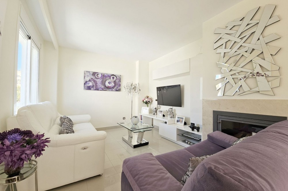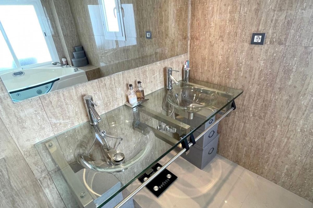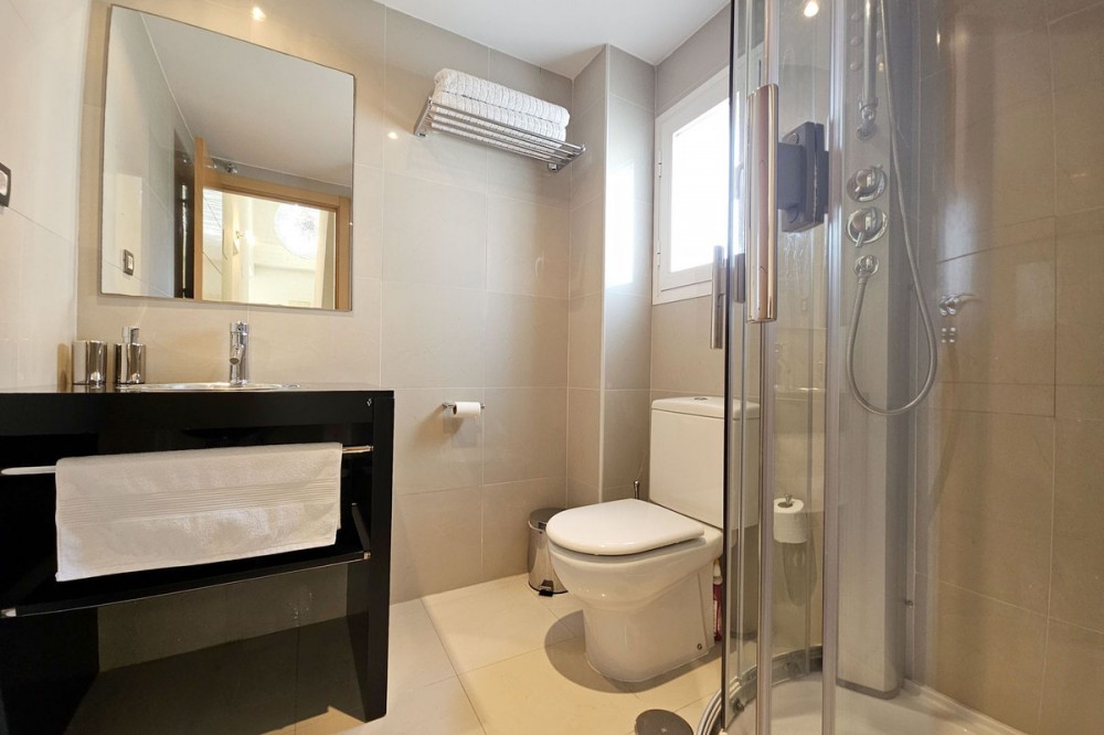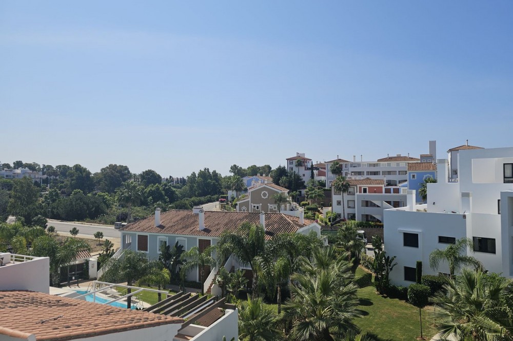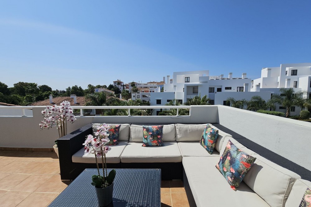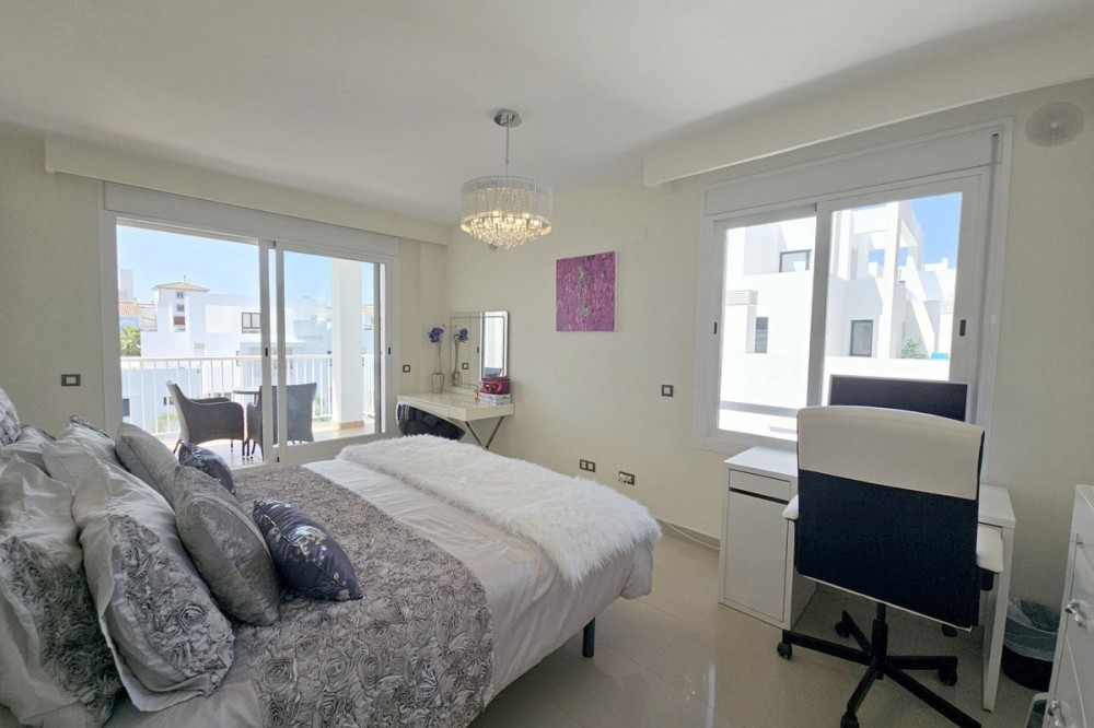- Stunning Two-Story Penthouse in Cortijo del Mar, Private Collection Presenting the most desirable penthouse in the prestigious Cortijo del Mar development – a beautifully maintained, two-story top-floor apartment offering exceptional space, comfort, and style. This immaculate property features two spacious bedrooms, with the luxurious master suite occupying the entire upper level. The master includes a private en-suite bathroom and opens onto a charming balcony terrace with picturesque views. On the main level, you’ll find a bright and airy living and dining area, a second double bedroom, a modern kitchen, and direct access to a huge main terrace – a true highlight of the home. This expansive outdoor space features a jacuzzi, areas for sunbathing, dining, and entertaining, making it ideal for enjoying the Mediterranean lifestyle year-round. The master suite has walk through fitted wardrobe area and the bathroom has twin sinks, jacuzzi bath and separate shower. There is also potential to convert the master suite into two separate bedrooms, creating a spacious 3-bedroom layout – perfect for growing families or adding value to an already standout property. Enjoy access / shared facilities to the main resort’s larger pool, kids pool and restaurant in additional to our private collection pool. Set within a secure, well-maintained community with lush gardens and a large communal pool, this penthouse offers luxury living just minutes from the beach, golf courses, and all local amenities. Key Features: Best unit in Cortijo del Mar Two-story penthouse in perfect condition 2 bedrooms (option to convert to 3) Spacious main terrace with jacuzzi, ideal for sun and entertaining Private upper-level master suite with en-suite and balcony terrace Gated complex with communal pool, gardens, and security Prime location close to beaches, golf, and amenities Underground parking space and storage unit included in the price Electric security shutters to patio doors and window shutters A rare opportunity to own the top property in one of the Costa del Sol’s most desirable communities.