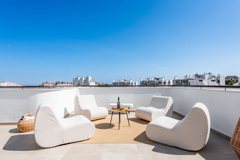 - Exclusive Home in Top Condition in Sought-After Las Mesas, Estepona. Welcome to this brand-new, elegant apartment in the exclusive South Place complex, located in the highly sought-after Las Mesas area of Estepona. Set in an elevated position, the property boasts breathtaking panoramic views over Estepona town and the shimmering Mediterranean Sea. The apartment offers a bright and airy ambiance with an open-plan layout that blends modern design with everyday comfort. It features three spacious bedrooms and two stylish bathrooms, all finished to a high standard. The true highlight is the stunning terrace of over 100 square metres — an ideal space to relax, soak up the sun, dine al fresco, and entertain family and friends. A private garage space and storage room are included, adding convenience to this exceptional home in one of Estepona’s most desirable residential areas. A perfect choice for those seeking style, space, and sea views on the Costa del Sol.