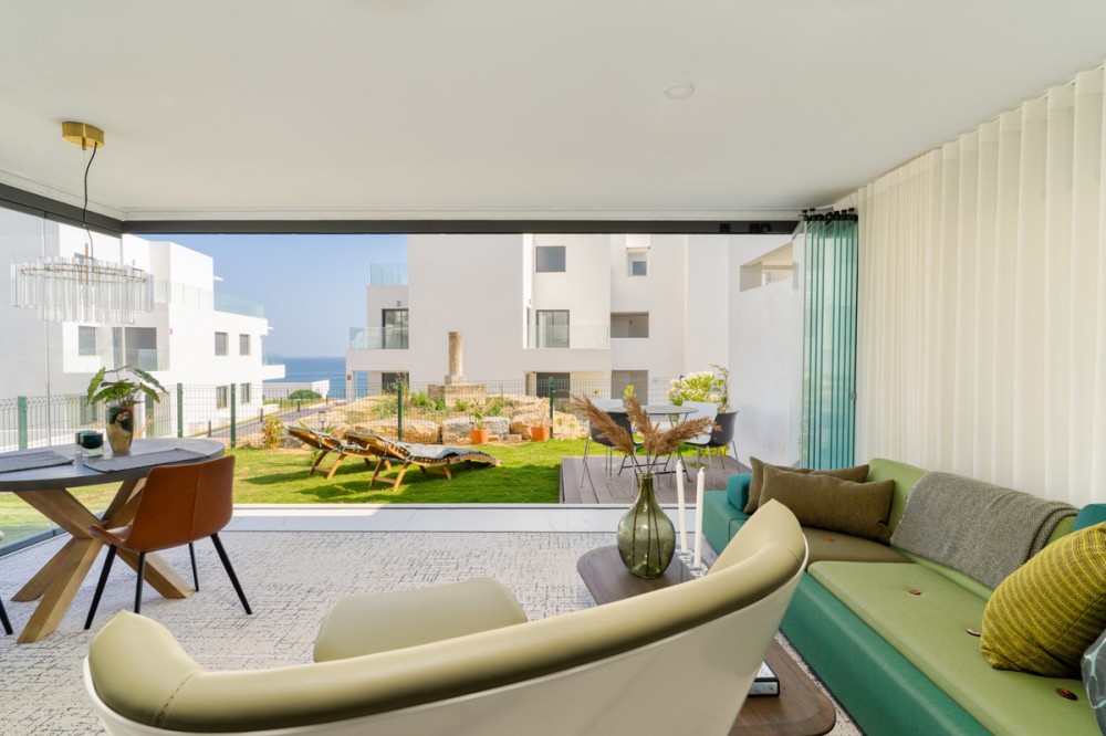 - Discover a peaceful coastal retreat in this beautifully designed one-bedroom apartment located in the prestigious Azata del Mar urbanization, Casares. Set in a serene and well-connected area surrounded by lush golf courses, this modern home offers both tranquility and convenience. Enjoy open, south-facing views of the Mediterranean from your private glassed terrace, perfect as an additional living space during the cooler months. The apartment boasts a generous layout, abundant natural light, and high-quality finishes throughout—ideal for both full-time living and holiday getaways. Azata del Mar is a secure, modern complex with resort-style amenities, including a large communal pool, well-equipped gym, and beautifully maintained gardens. Estepona is just a 6–7 minute drive away, and you’re only 20 minutes from the vibrant atmosphere of Marbella. Whether you’re a golf enthusiast, a beach lover, or simply seeking a quiet place to unwind with stunning sea views, this property offers the best of Costa del Sol living. Key Features: •1 spacious bedroom •Sea views & southern orientation •Glassed terrace for year-round enjoyment •Modern kitchen & finishes •Quiet, well-kept urbanization •Community pool and gym •Surrounded by golf courses •7 min to Estepona, 20 min to Marbella This is your chance to own a stylish coastal home in one of the most sought-after areas of southern Spain.