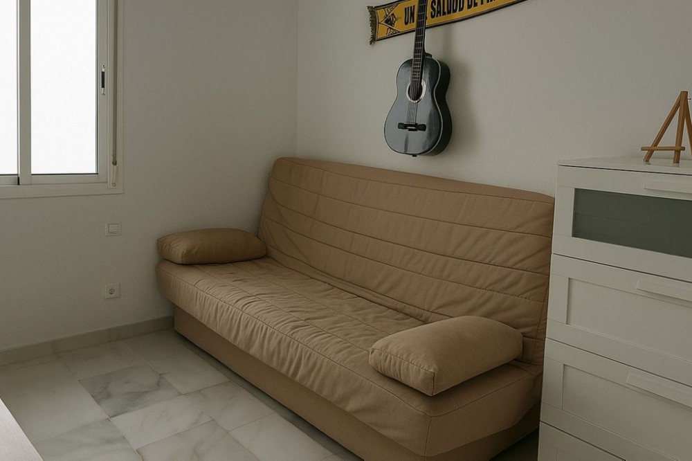 - This penthouse offers a bright and relaxed living experience on the third floor with elevator access, standing out for its fresh, summery atmosphere. Its location, just a few minutes’ walk from Bombo Beach and close to all the village’s amenities, allows you to enjoy the coast without needing a car. From the living room and the main bedroom, you can enjoy open sea views—a privilege that also extends to the two private terraces: one with direct access from the living room, and another located on the rooftop, right above the apartment. Designed to make the most of natural ventilation and light, this penthouse is perfect for both relaxing and remote working, thanks to its stable internet connection. Additionally, the building, constructed in 2005, features communal areas that include three swimming pools, adding extra value for those seeking a peaceful life near the sea. The price includes a parking space with direct elevator access, and the property is sold fully furnished. Don’t miss this opportunity! If you have any questions, feel free to contact us—we’ll be happy to h