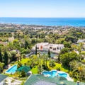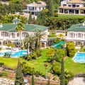- This exceptional property is set on a generous, elevated plot of 7,200 m² in the exclusive, gated Cascada de Camoján community in Marbella and offers breathtaking views of the Mediterranean Sea. The impressive luxury residence consists of three separate properties: the four-bedroom main house, an adjoining, connected seven-bedroom guest house, and a self-contained four-bedroom guest finca with its own tennis court. The property welcomes you with an imposing entrance gate leading to a spacious driveway. This provides access to a four-space underground garage, two further garages on the ground floor, and ample space for eight additional vehicles outside. The entrance of the main house opens into a magnificent double-height reception hall with a stunning imperial double staircase. The ground floor houses the elegant living room with large French windows that let in plenty of natural light, a stylish study, a fully equipped gym, and a spacious kitchen. Directly adjacent to the living room is a spacious dining room for up to 12 people, which offers access to a long, elegant indoor bar with seating for at least 10. This is also connected to an outdoor bar, ideal for entertaining guests on the spacious terrace. The kitchen is also connected to the garages on this level via an adjoining utility room. Upstairs, you'll find four luxurious bedrooms, each with its own bathroom. From here, there is also direct access to the adjoining guest house, which includes seven additional bedrooms, several bathrooms, and a total of three fully equipped kitchens. The basement of the main house houses four additional garage spaces, several storage rooms, and the property's utility rooms. Both the main house and the guest house have their own lavishly landscaped gardens and a heated pool – each completely independent of the other. The separate guest finca, ideal for visitors or staff, features four bedrooms, private living areas, and a special highlight, a private tennis court. In addition to its unique living comfort, this property also offers enormous potential as an exclusive investment: Due to the exceptional size of the plot, there is the possibility of building up to six luxurious villas on this site – a rare opportunity in one of Marbella's most desirable locations. This property combines outstanding architecture, absolute privacy, luxurious amenities, and excellent development opportunities at the highest level. Discover a new level of living in Cascada de Camoján – an oasis of tranquility with spectacular views. Contact us today for an exclusive viewing of this unique property.