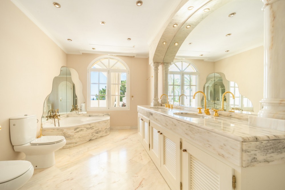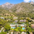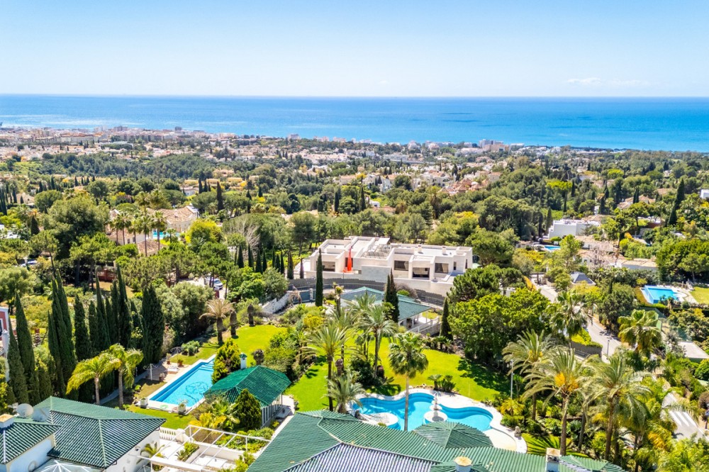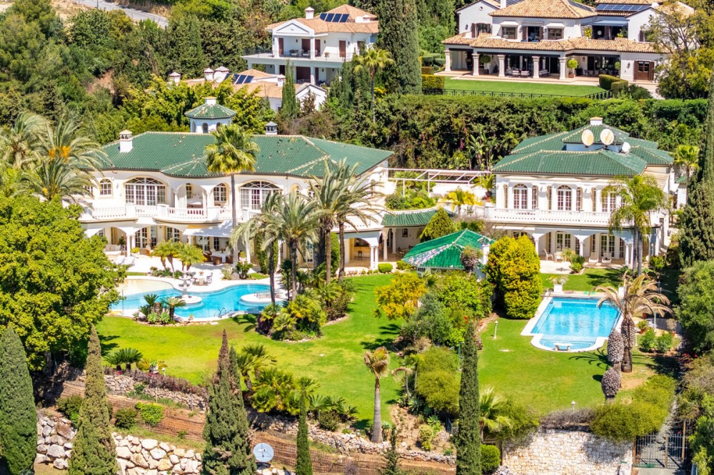 • This exceptional property is set on a generous, elevated plot of 7,200 m² in the exclusive, gated Cascada de Camoján community in Marbella and offers breathtaking views of the Mediterranean Sea. The impressive luxury residence consists of three separate properties: the four-bedroom main house, an adjoining, connected seven-bedroom guest house, and a self-contained four-bedroom guest finca with its own tennis court. The property welcomes you with an imposing entrance gate leading to a spacious driveway. This provides access to a four-space underground garage, two further garages on the ground floor, and ample space for eight additional vehicles outside. The entrance of the main house opens into a magnificent double-height reception hall with a stunning imperial double staircase. The ground floor houses the elegant living room with large French windows that let in plenty of natural light, a stylish study, a fully equipped gym, and a spacious kitchen. Directly adjacent to the living room is a spacious dining room for up to 12 people, which offers access to a long, elegant indoor bar with seating for at least 10. This is also connected to an outdoor bar, ideal for entertaining guests on the spacious terrace. The kitchen is also connected to the garages on this level via an adjoining utility room. Upstairs, you'll find four luxurious bedrooms, each with its own bathroom. From here, there is also direct access to the adjoining guest house, which includes seven additional bedrooms, several bathrooms, and a total of three fully equipped kitchens. The basement of the main house houses four additional garage spaces, several storage rooms, and the property's utility rooms. Both the main house and the guest house have their own lavishly landscaped gardens and a heated pool – each completely independent of the other. The separate guest finca, ideal for visitors or staff, features four bedrooms, private living areas, and a special highlight, a private tennis court. In addition to its unique living comfort, this property also offers enormous potential as an exclusive investment: Due to the exceptional size of the plot, there is the possibility of building up to six luxurious villas on this site – a rare opportunity in one of Marbella's most desirable locations. This property combines outstanding architecture, absolute privacy, luxurious amenities, and excellent development opportunities at the highest level. Discover a new level of living in Cascada de Camoján – an oasis of tranquility with spectacular views. Contact us today for an exclusive viewing of this unique property.