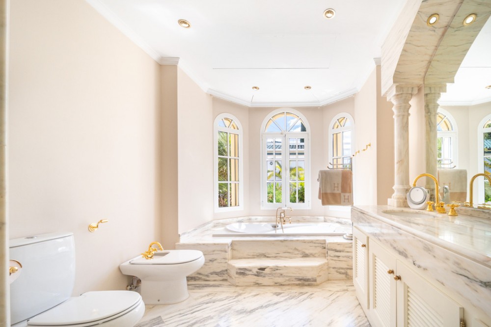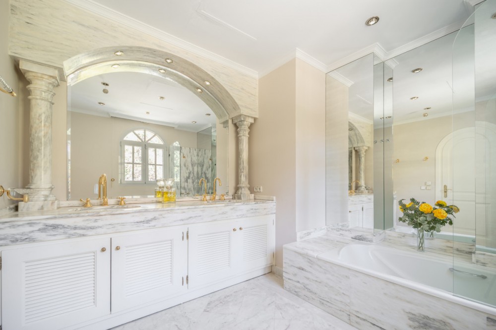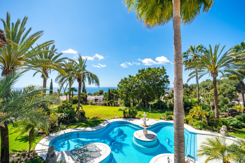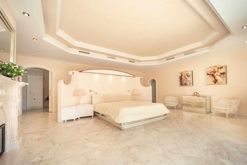 - This exceptional property is set on a generous, elevated plot of 7,200 m² in the exclusive, gated Cascada de Camoján community in Marbella and offers breathtaking views of the Mediterranean Sea. The impressive luxury residence consists of three separate properties: the four-bedroom main house, an adjoining, connected seven-bedroom guest house, and a self-contained four-bedroom guest finca with its own tennis court. The property welcomes you with an imposing entrance gate leading to a spacious driveway. This provides access to a four-space underground garage, two further garages on the ground floor, and ample space for eight additional vehicles outside. The entrance of the main house opens into a magnificent double-height reception hall with a stunning imperial double staircase. The ground floor houses the elegant living room with large French windows that let in plenty of natural light, a stylish study, a fully equipped gym, and a spacious kitchen. Directly adjacent to the living room is a spacious dining room for up to 12 people, which offers access to a long, elegant indoor bar with seating for at least 10. This is also connected to an outdoor bar, ideal for entertaining guests on the spacious terrace. The kitchen is also connected to the garages on this level via an adjoining utility room. Upstairs, you'll find four luxurious bedrooms, each with its own bathroom. From here, there is also direct access to the adjoining guest house, which includes seven additional bedrooms, several bathrooms, and a total of three fully equipped kitchens. The basement of the main house houses four additional garage spaces, several storage rooms, and the property's utility rooms. Both the main house and the guest house have their own lavishly landscaped gardens and a heated pool – each completely independent of the other. The separate guest finca, ideal for visitors or staff, features four bedrooms, private living areas, and a special highlight, a private tennis court. In addition to its unique living comfort, this property also offers enormous potential as an exclusive investment: Due to the exceptional size of the plot, there is the possibility of building up to six luxurious villas on this site – a rare opportunity in one of Marbella's most desirable locations. This property combines outstanding architecture, absolute privacy, luxurious amenities, and excellent development opportunities at the highest level. Discover a new level of living in Cascada de Camoján – an oasis of tranquility with spectacular views. Contact us today for an exclusive viewing of this unique property.