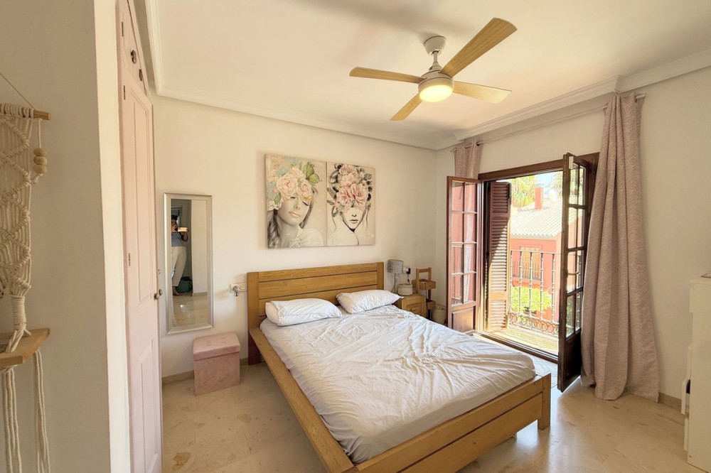 - Beachfront Townhouse – Estepona Discover this charming townhouse located in a sought-after beachfront urbanization in Estepona, with direct access to the seaside promenade. An unbeatable location that perfectly combines peace, convenience, and the Mediterranean lifestyle. Just a 4-minute drive from Estepona’s Marina and 20 minutes from Puerto Banús, the property is situated in a well-established residential and commercial area with all essential services close by, including supermarkets, schools, pharmacies, and a variety of restaurants just 2 km away. The home is distributed over two floors. Upstairs, you’ll find three bright bedrooms, one of them featuring an en-suite bathroom. The ground floor offers a cozy living room that opens onto a spacious terrace with direct access to the beautifully maintained gardens and the communal swimming pool — ideal for relaxing or spending time with family. For added convenience, the property includes a private parking space right at the entrance. A fantastic opportunity to live by the sea or invest in a high-potential property. Viewing is highly recommended!