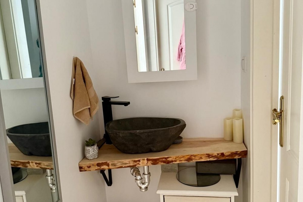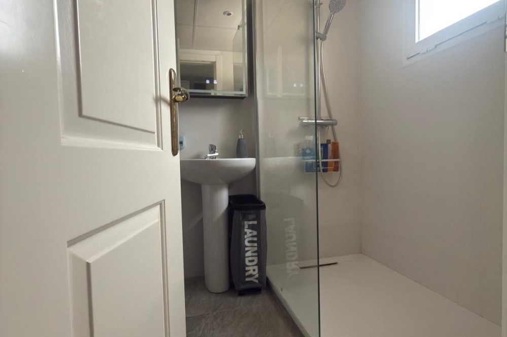 - Exquisite 3-Bedroom Townhouse in an Exclusive Community Discover this beautiful, recently renovated 3-bedroom townhouse that combines modern luxury with a sustainable lifestyle. With solar panels on the roof, you can enjoy virtually zero electricity costs while embracing a greener lifestyle. Located in an exclusive community of just seven homes, this property boasts a spacious, private front garden filled with vibrant flowers and stunning mountain views. Ground Floor: - The entrance hall leads to a modern bathroom equipped with a shower and washer/dryer. - To the left is a versatile third bedroom, currently used as an office. - The open-concept living and dining area receives abundant natural light and has access to a covered terrace with a Jacuzzi. - The private L-shaped garden is immaculately maintained and offers a peaceful outdoor space, with a separate dog area. Lower Floor: - Internal access to a spacious storage room and two private parking spaces. Upper Floor: - Two well-designed bedrooms and a second luxurious bathroom with a bathtub. - An additional sink in the hallway for added convenience. The newly renovated kitchen combines elegance and functionality, with plenty of storage space. Located just a 7-minute walk from the village and 12 minutes from the metro, this exceptional home offers the perfect combination of elegance, comfort, and practicality. Your ideal home awaits!