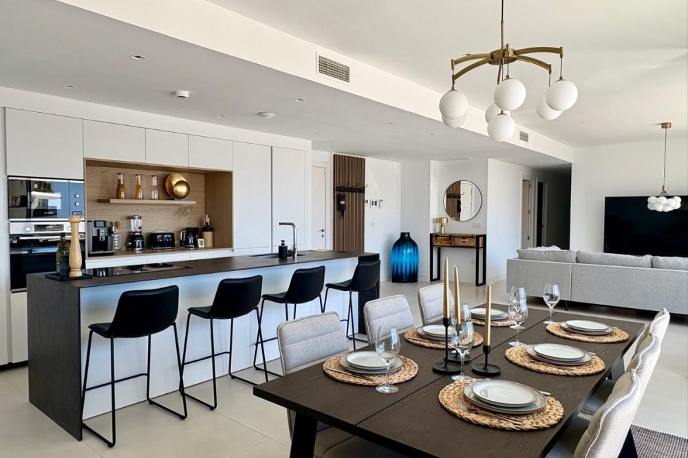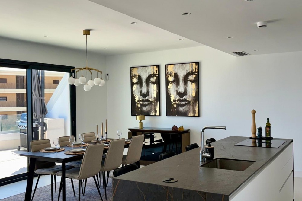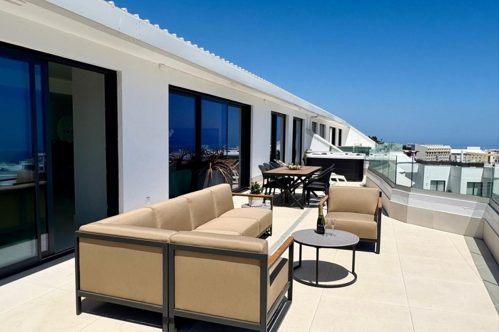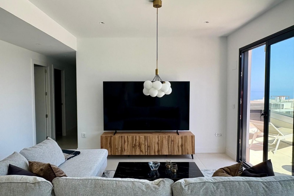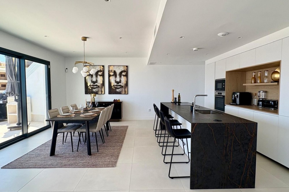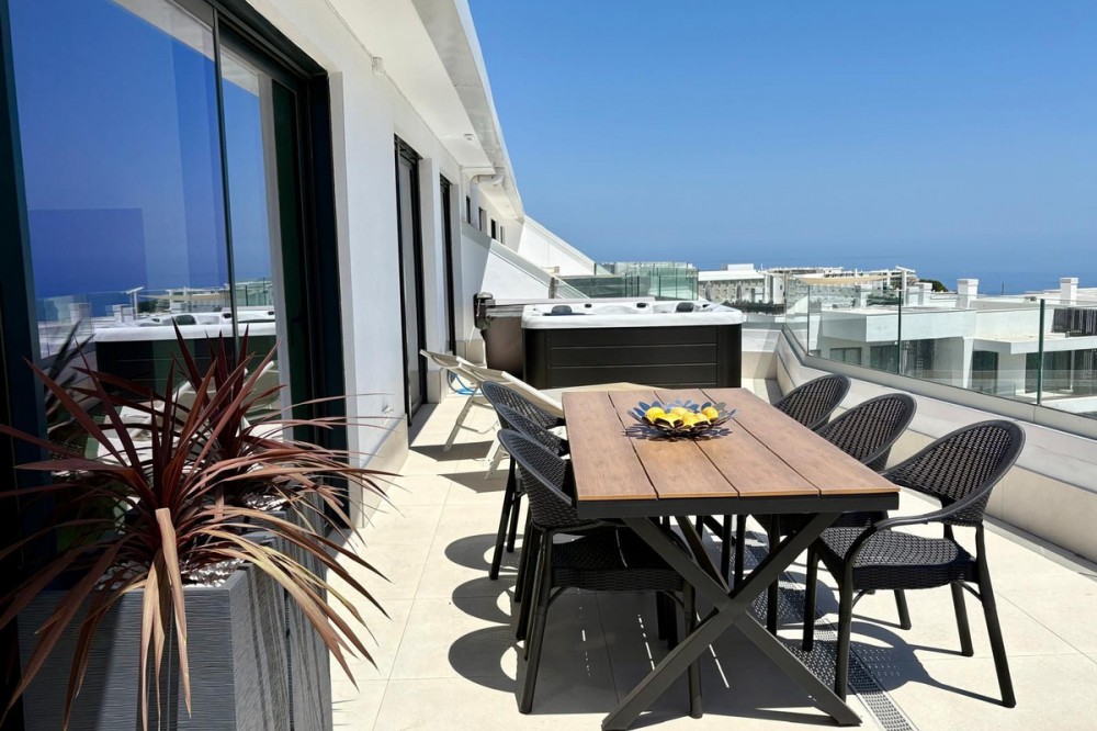- Luxury Penthouse with Panoramic Sea Views in Reserva del Higuerón, Fuengirola Step into contemporary elegance with this stunning penthouse, built in 2024, located in the sought-after Reserva del Higuerón – just a short walk from the prestigious Higuerón Resort with world-class facilities including a gym, spa, heated indoor pool, padel and tennis courts, sports club, and gourmet restaurants, including a Michelin-starred restaurant. This modern 3-bedroom, 3-bathroom penthouse offers 152 sqm of interior space and an impressive 67 sqm private terrace with breathtaking sea views. The spacious terrace is designed for luxurious outdoor living, featuring a jacuzzi, BBQ, sun loungers, a lounge area, and outdoor dining furniture – perfect for entertaining or relaxing in style. Inside, you'll find a bright open-plan living area with a fully equipped kitchen, breakfast bar, and direct access to the terrace. Two of the three bedrooms also open directly onto the terrace. The property includes underfloor heating in all bathrooms, spotlights, a separate laundry room, and plenty of storage throughout. A modern alarm system provides added peace of mind. The apartment is sold fully furnished and equipped, ready to move in. Two underground garage spaces and a storage room are included. The gated community offers beautifully landscaped gardens with multiple swimming pools. This penthouse is a perfect blend of luxury, comfort, and location – ideal as a permanent residence, a high-end holiday home, or a premium investment opportunity