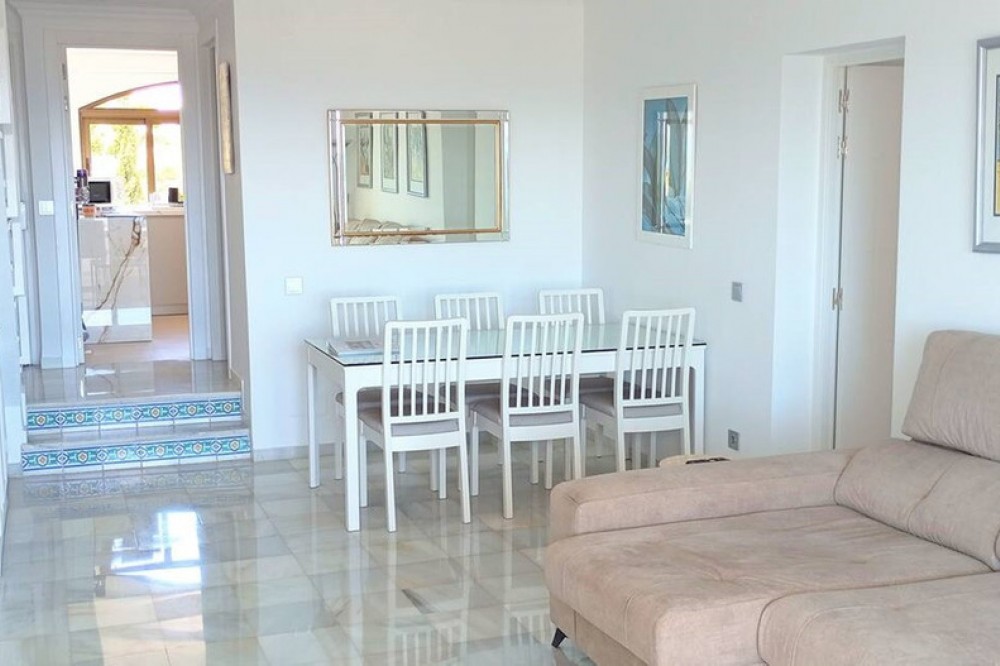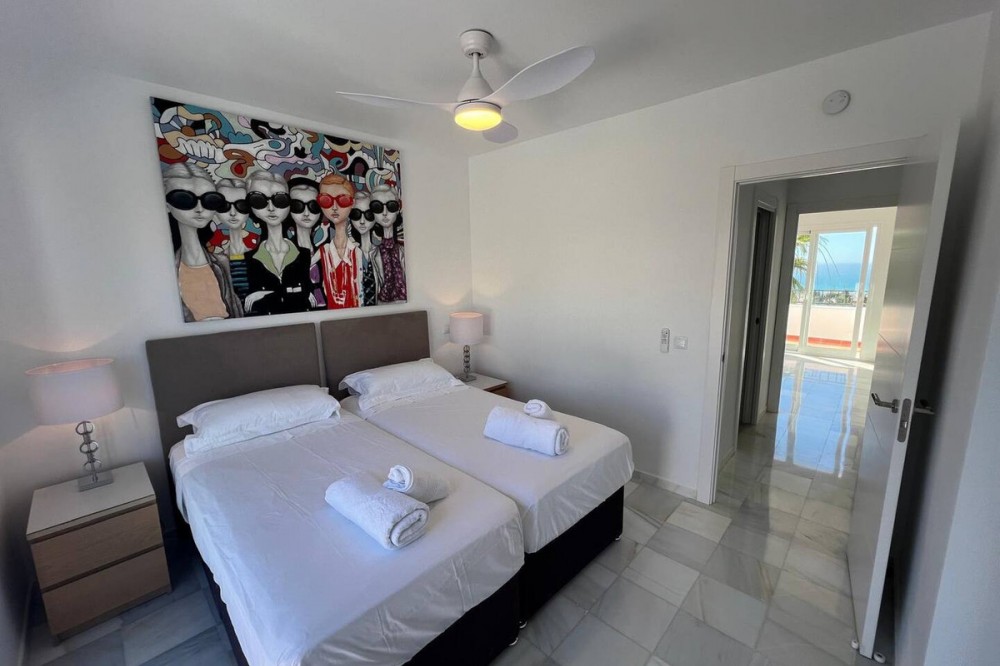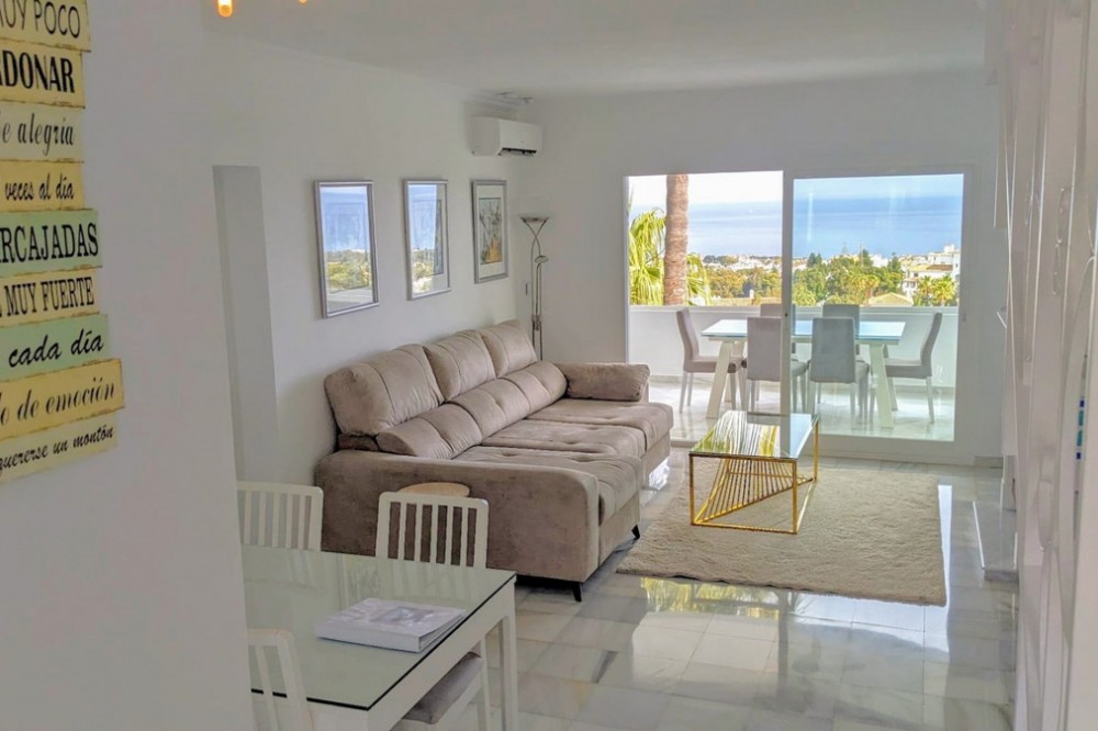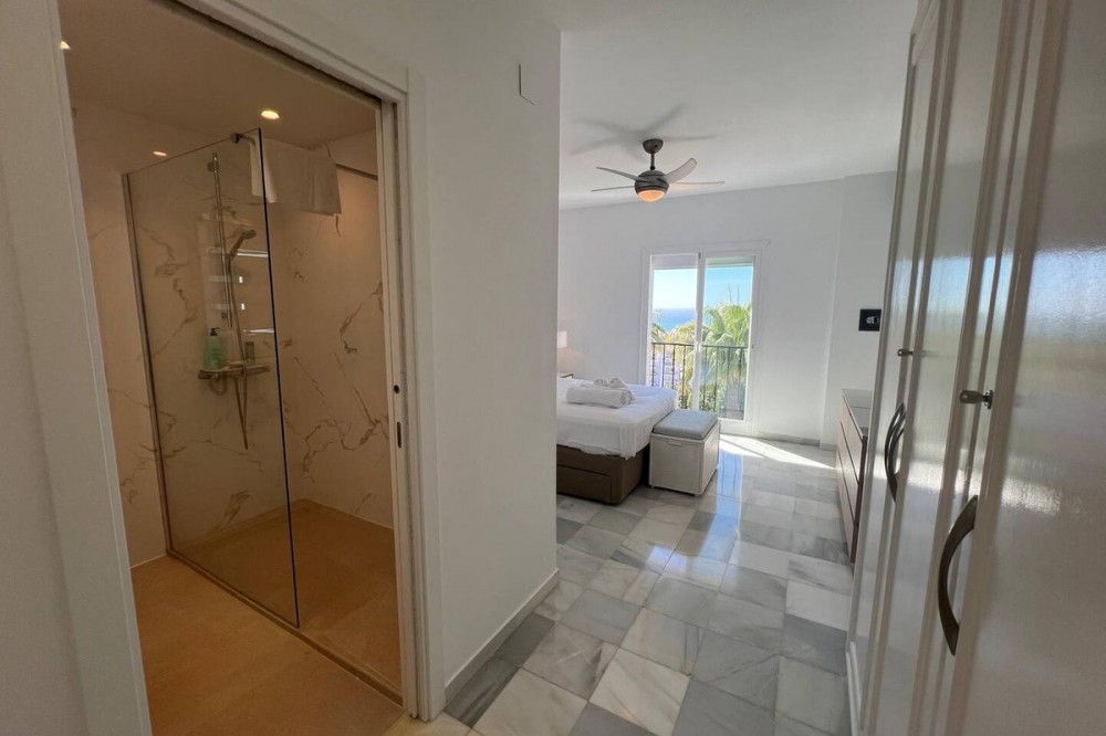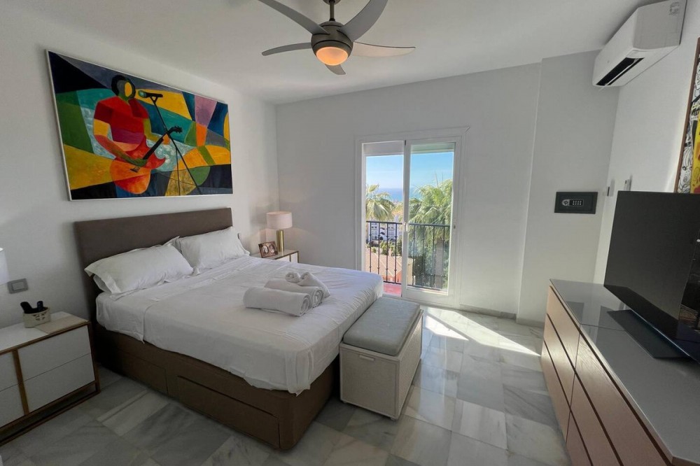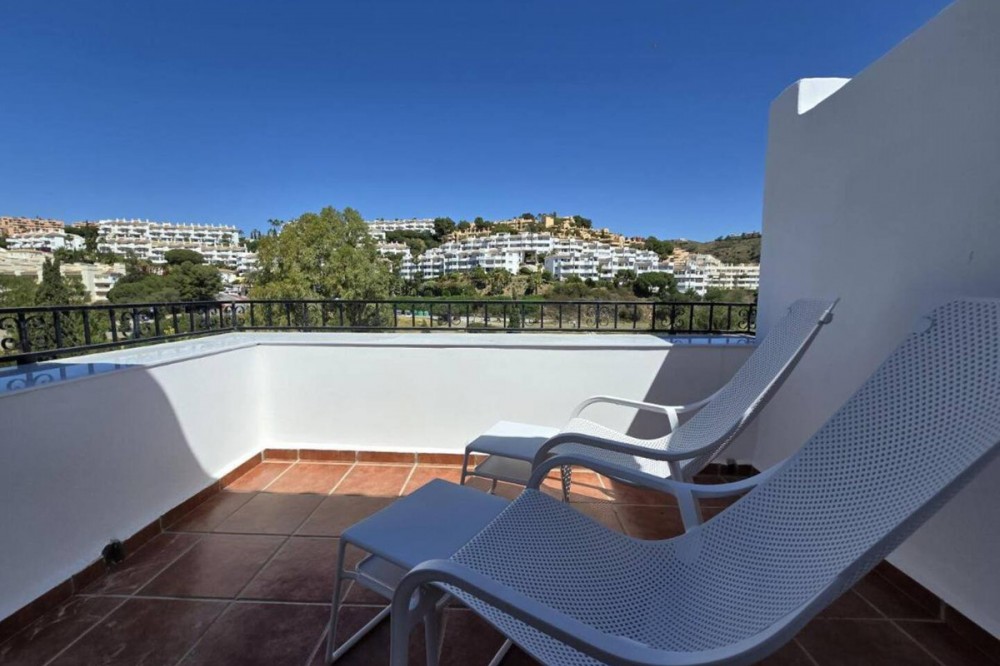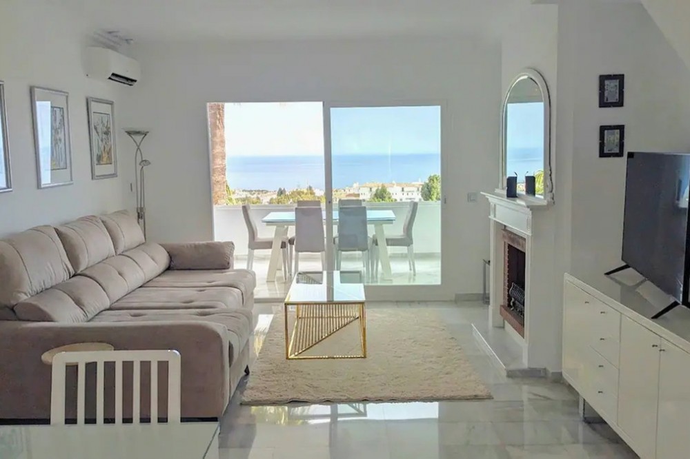 - Renovated duplex penthouse, finished with exclusive luxury materials!! The duplex penthouse enjoys a great location between Fuengirola and Marbella, offering easy access to both towns. It features beautiful views of the sea and the mountains, creating a stunning backdrop for everyday living. Just a one-minute walk from two popular restaurants, Miel y Nata and The Family, as well as the vibrant Millennium Bar & Nightclub. It’s also only a few minutes away from well-known beach destinations such as Max Beach (2.5 miles), Cabopino Beach (1.5 miles), and Marbella center (9 minutes by car). This penthouse has been fully upgraded with top-quality materials and features: - A brand-new Porcelanosa kitchen with modern electrical installations - Two new Porcelanosa bathrooms and a guest toilet, all with updated electrics - New aluminum sliding doors on the first floor - Professional plastering of three bedrooms and the living room - Four terraces, all treated with Capafinad - Three new air conditioning units - A new large water heater for the master bathroom A total renovation investment of approximately €120,000 Spread over two floors, the penthouse includes: - Three double bedrooms with sea and mountain views, including a master bedroom with en-suite - Four private terraces with sun from morning to evening - Two spacious TV rooms, each equipped with Smart TVs (three in total) - Two dining areas for both formal and casual dining This penthouse offers a rare combination of peace, privacy, and close proximity to Marbella’s best attractions. A unique opportunity for anyone seeking luxury and comfort on the Costa del Sol.
