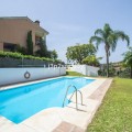 - This semi-detached house is located in the hills of Sierra Bermeja, in the Forest Hills urbanisation of Estepona, nestled in nature and surrounded by lush vegetation and mountain air. With a constructed area of 205m² spread over 3 floors and a private garden of 320m2, this property has uncommon potential. The entrance through the porch at street level is to the upper floor, where the spacious living room with fireplace, dining room and kitchen are located. This floor also offers a large terrace with panoramic views of the hills, as well as a guest toilet. On the lower floor are the 3 bedrooms with fitted wardrobes and 2 bathrooms. The master bedroom has an en-suite bathroom and access to another terrace with the same open panoramic views of the mountains and surrounding greenery. On this floor there is also a utility room which provides additional storage space. On the lower level, we have a second storage room and a large covered terrace equipped with an outdoor kitchen that opens onto the large private garden. This covered terrace, currently used as a gym and play area, offers a unique opportunity to expand the interior space of the house by closing it with glass curtains. The house is equipped with solar panels, which ensures energy efficiency. In addition, the property has parking for 2 cars and 2 storage rooms, one of which can be converted into an additional bedroom or office if desired. There is also a communal swimming pool available for residents. Located on the side of the mountain, the house is located in the Forest Hills area, right next to the Estepona Tennis and Padel Club, just 15 minutes from the centre of Estepona and 10 minutes from the beach and the main motorway that will easily take you to Marbella in 15 minutes or Malaga in 50 minutes.