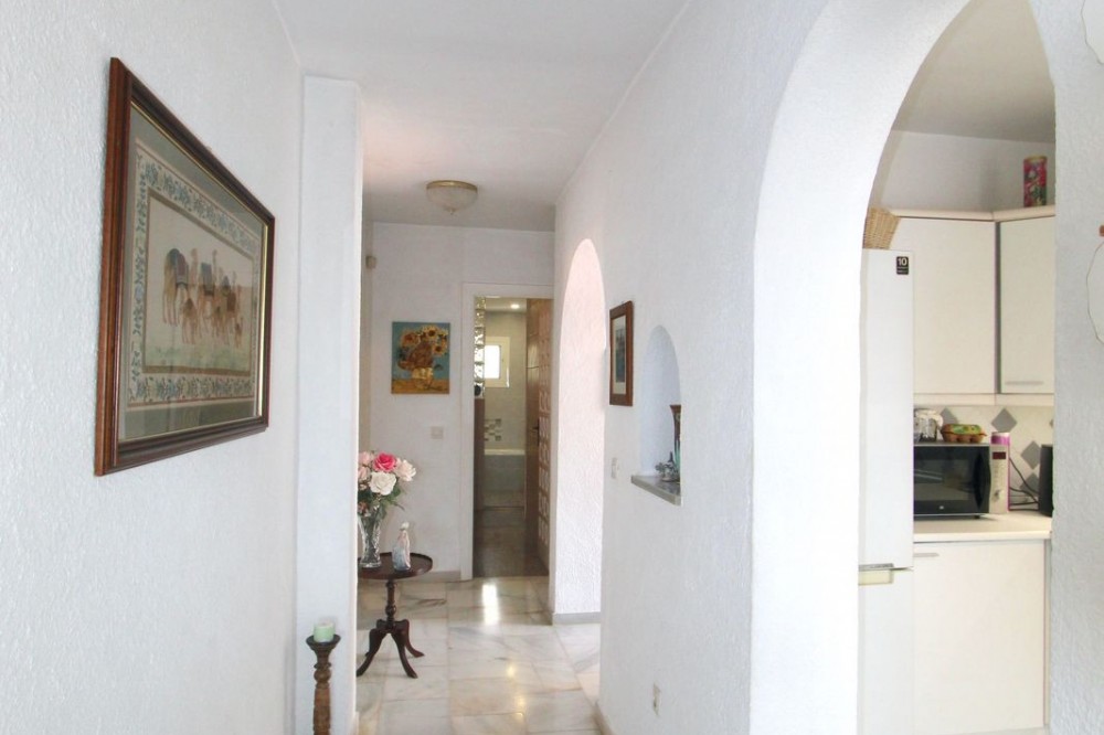 - This is a lovely family villa in a very desirable area, La Capellania, Benalmadena, located on a short Cul De Sac in a very quiet and secure residential area with stunning sea and mountain views. The orientation is fabulous and there is off road parking plus a large front walled yard with above ground pool and multiple sitting areas. The property has manicured and easy maintained gardens on three sides and there is also a private solarium accessed via an easy climb straight staircase which offers panoramic sea and mountain views. The main property is all on one level which comprises of 3 large double bedrooms, 2 bathrooms, a south west facing semi open plan kitchen/living with real fire and off this area a very large covered terrace area with glass curtains around allowing use and comfort all year round. Below the main property is an independent apartment with a living room, open plan kitchen, bathroom and a double bedroom en-suite. The community is presently refurbishing the communal pool and the cost has already been accounted for. There are numerous amenities; including supermarket, cafes, restaurants, bars all within a short walk and you are also a 20 mins walk to the beach and only 10 mins drive to Malaga Airport. This villa really needs to be viewed to appreciate its full potential.