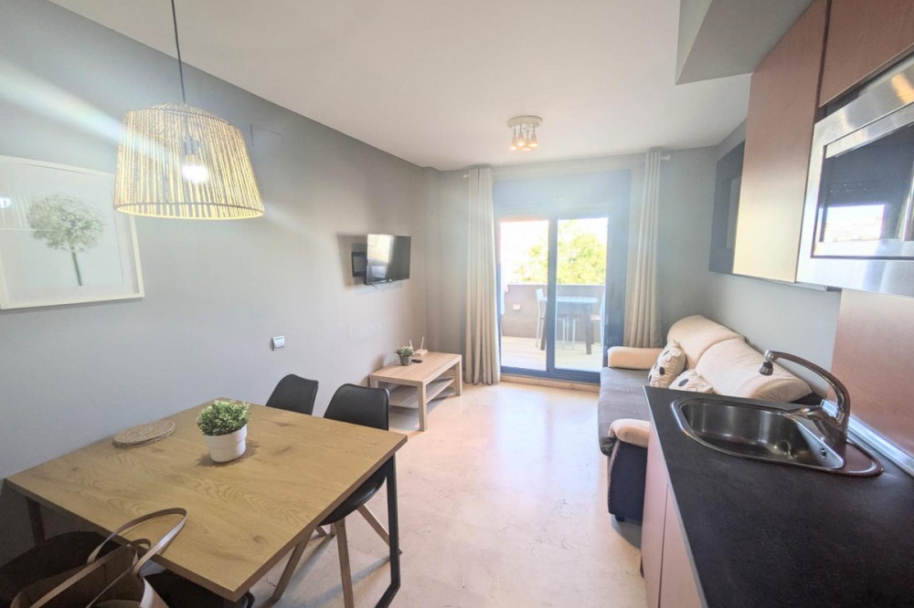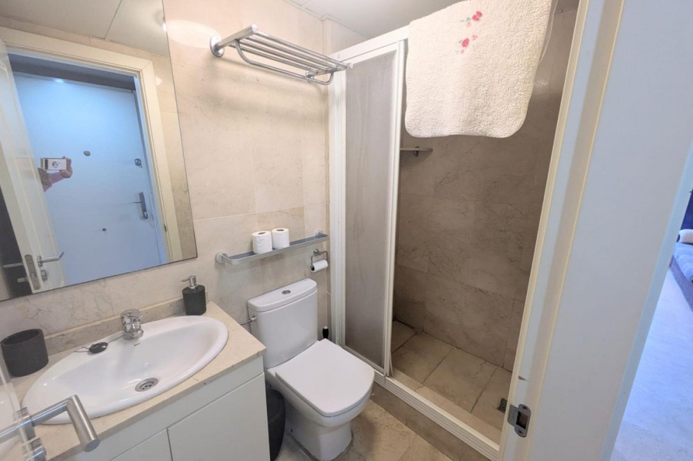 - Eng.: Fully equipped apartment with the tourist license in Benalmadena next to hotel Los Patos and only 150m from the beach! Opportunity! The flat consists of open kitchen-living-dining area, a bedroom, a bathroom and a terrace with sea-views. It's located on the 2nd floor with the elevator. Closed urbanization with 2 community pools and 24 hour surveillance. The underground parking space and a storage room included in the price.