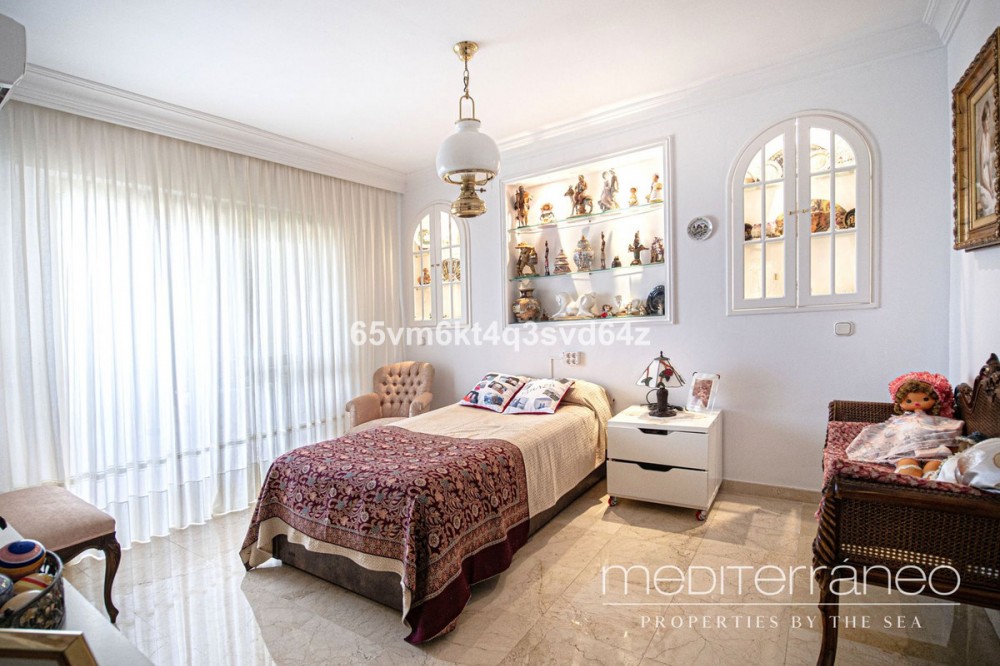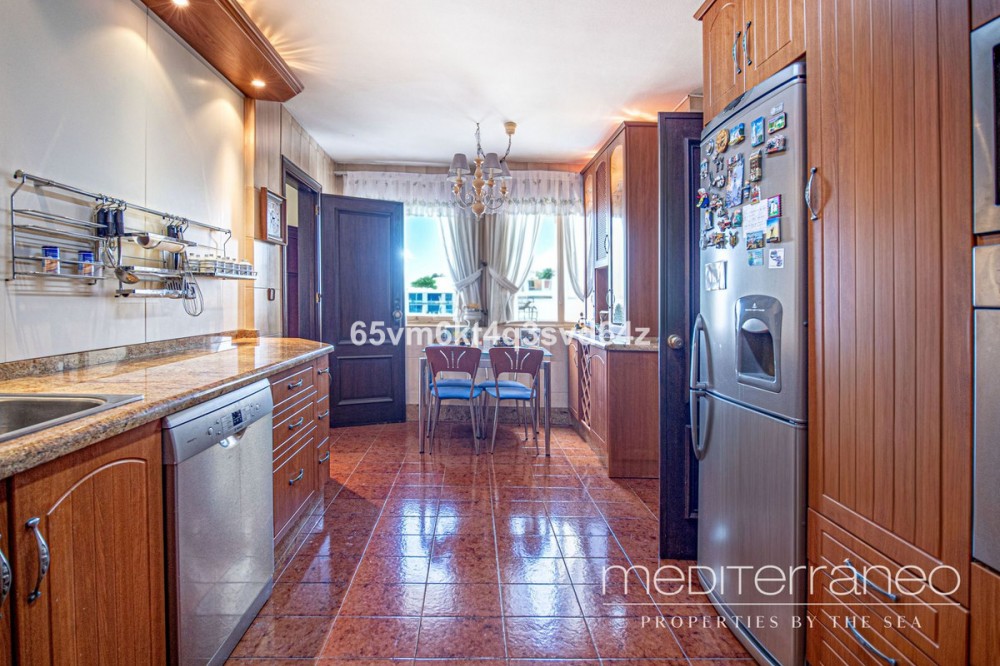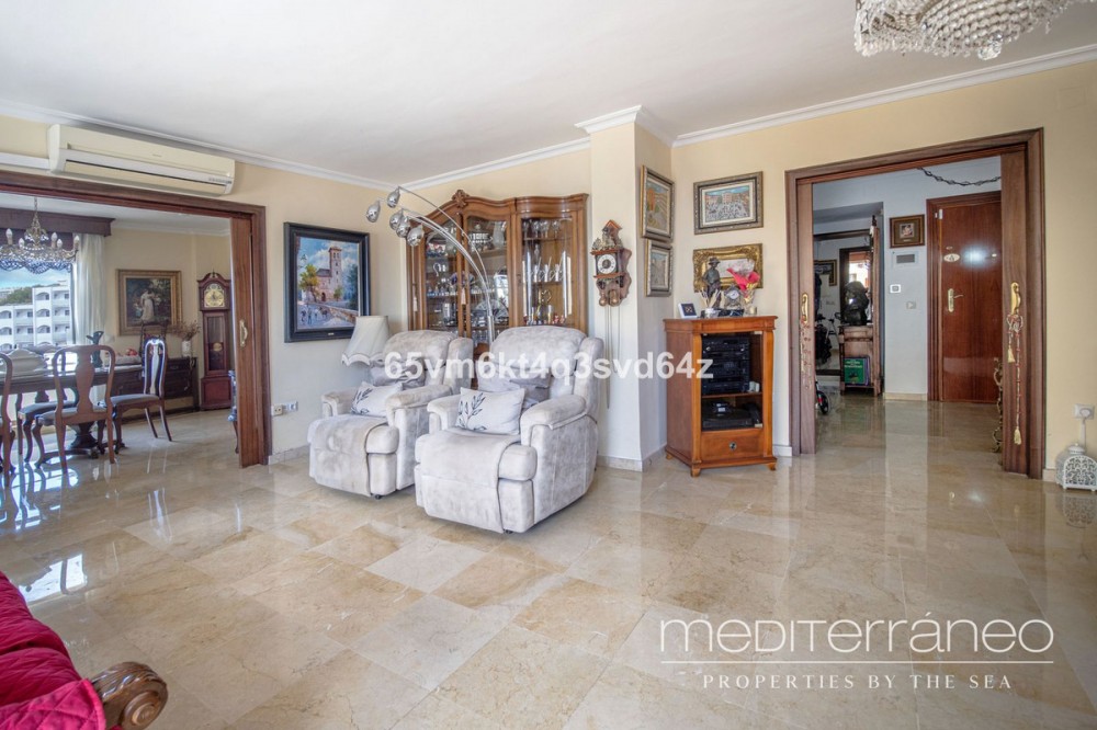 • Discover your new home just a few steps from the sea! This spectacular flat for sale, with a surface area of 207 m², offers everything you need to enjoy a comfortable and relaxing life. Located in a privileged area, close to all services, this property has breathtaking sea views. Upon entering, you are greeted by a welcoming hall that leads to a spacious living-dining room, ideal for sharing unforgettable moments with family and friends. From here, you can access two terraces where you can enjoy the sun and the sea views. The kitchen is fully equipped and furnished, perfect for gastronomy lovers. The property has three bright bedrooms, the master bedroom being a real haven with en-suite bathroom and access to a private terrace. One of the secondary bedrooms also has access to another terrace with sea views, ideal for relaxing at the end of the day. There is also an additional bathroom to share. This flat is sold furnished and comes with fitted wardrobes, electric hot/cold pump heating and air conditioning to ensure your comfort at any time of the year. Located on the fourth floor, the building has a lift and offers a south-west orientation that ensures natural light throughout the day. As an added value, it includes two parking spaces in the price and access to a fantastic communal pool and garden. Don't miss out on this unique opportunity to live in a place where comfort and beauty are the key features.