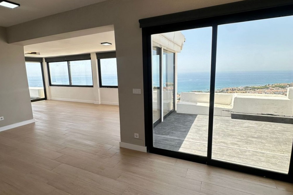 - We offer this wonderful penthouse for sale in the coastal town of Mijas, province of Málaga. Located in a gated community with a communal pool and well-maintained landscaped areas, this apartment will make your stay a healthy experience, filling you with vitality and good humor. 17 km from the center of Málaga city, it will provide you with access to all the services and facilities you may need (shops, supermarkets, sports, educational, and health centers, public transportation, hospitality and catering services, government offices, and leisure facilities, such as the Miraflores Golf Course (1.7 km) or Torre Nueva Beach (2 km), among others. This wonderful home is located on a single floor and is located in the penthouse of a residential building. This first-floor apartment, with no elevator, occupies an exclusive wing of the floor, ensuring privacy as it is not shared with neighbors. It has a constructed area of 115 m², distributed among: 3 bedrooms with built-in wardrobes, a separate kitchen, two full bathrooms (one en suite), and a spacious living-dining room with access to a 22 m² terrace. This spacious area, which seems to divide the terrace in two, is located inside the living room. It features large windows and large glass doors, from which you can enjoy the beautiful 360º panoramic sea views in any season, regardless of the weather (it is sunny for most of the day). You can also spend unforgettable moments with your loved ones enjoying the beneficial Mediterranean climate on the terrace on summer nights. This apartment is located in a residential area with a communal pool and gardens, providing a relaxing and fresh atmosphere during the summer. In terms of mobility, it has good connections by road (with easy access to the Mediterranean Motorway and the A-7) and public transport (bus service every half hour, nearby bus stop on line M-119, Fuengirola train station 18 minutes by car, and Plaza Mayor public transport station 28 minutes away), allowing quick access to neighboring towns such as Marbella and Fuengirola, and their wonderful leisure opportunities. This is a unique opportunity to acquire a home on the Costa del Sol with privacy, good transport links, and at an unbeatable price, as it is completely renovated and brand new. If you want to live in a quiet, residential area with all the amenities at your fingertips, this is your great opportunity. It is a unique opportunity to acquire this magnificent home at an exceptional price, which you can take advantage of for both your tourist and residential investment. Want to know more? NOTICE: The information contained in this advertisement may be subject to errors or omissions. Properties may be subject to price changes, sale, or withdrawal from the market. For more information, please do not hesitate to contact us. CONTACT US, WE WILL BE HAPPY TO ASSIST YOU. Our agency fees are already included in the sale price, so you will not have to pay any fees for management or real estate advice. In compliance with Andalusian Regional Government Decree 218/2005 of October 11, we inform you that notary, registry, property transfer (ITP), and other expenses inherent to the sale are not included in the price.