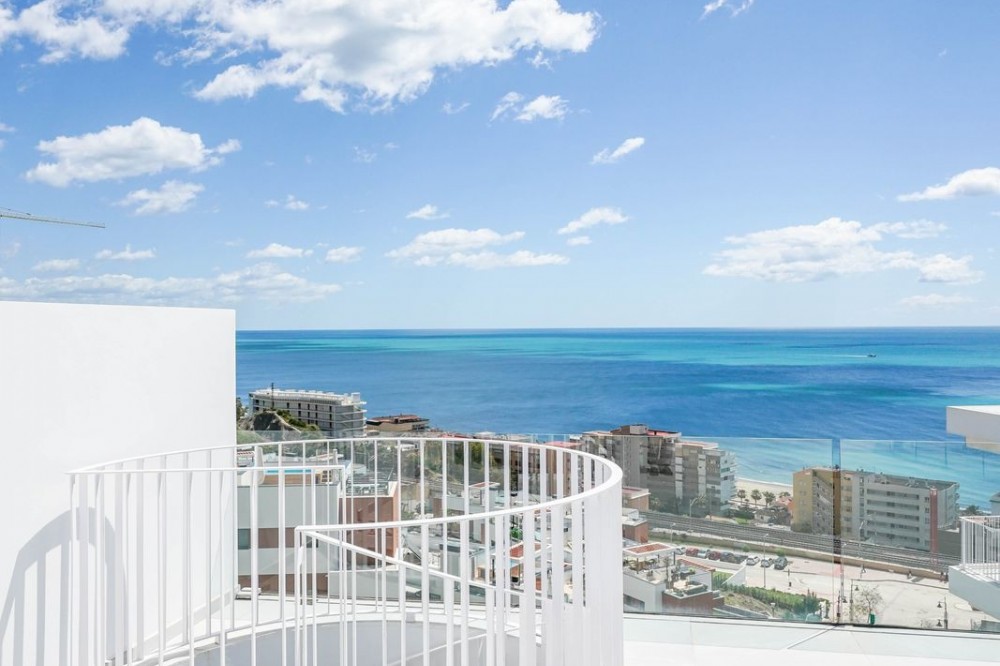 - This magnificent penthouse has a total of 239 m2 built area, distributed across 85 m2 of living space, a 34 m2 terrace, and a 120 m2 solarium. It also includes two large parking spaces and a storage room, included in the price. Located in the prestigious Higuerón area of Fuengirola, it offers the perfect combination of luxury, comfort, and coastal serenity. Designed for those who appreciate a refined lifestyle, this impressive residence provides an exceptional experience, just steps from the beach and first-class services. It features a sophisticated interior where modern aesthetics combine with warmth and functionality. The spacious living room is filled with natural light, thanks to its floor-to-ceiling windows that frame stunning views of the Mediterranean. The two bedrooms, designed with great attention to detail, offer a tranquil retreat, ensuring restful nights and serene mornings. The master suite features a private bathtub, adding a touch of exclusivity to this luxurious home. Furthermore, the property includes multiple extras, such as underfloor heating, integrated LED lighting, an aerothermal system for heating and cooling, electric blinds, and filtered water. The true star of this penthouse is its spectacular terrace-solarium. Here, you can delight in panoramic views of the coast, enjoy al fresco dining, or simply relax in the sun while admiring the landscape. It also has a barbecue and jacuzzi. The location is unbeatable. Just steps away, you will find golden sandy beaches, excellent restaurants, and a vibrant local entertainment scene. Furthermore, the Carvajal train station, located just 100 meters away, offers fast connections to Fuengirola, Benalmádena, Torremolinos, Málaga, and the airport. This extraordinary penthouse is more than just a home: it's a unique experience. Whether as a permanent residence or an exclusive vacation retreat, this property offers a lifestyle marked by elegance, comfort, and the beauty of the Mediterranean.