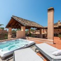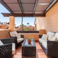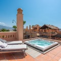 - Incredible Solarium Terrace with Sea and Mountain Views - Beachside Penthouse in Bahía Alcántara Step into a true outdoor paradise with this exceptional beachside penthouse in the sought-after Bahía Alcántara urbanisation. The standout feature of this remarkable property is its immense solarium terrace of more than 150 m² — an outdoor haven that feels like a second apartment in the sky. Here you will enjoy breathtaking sea and mountain views, a stylish covered gazebo lounge area, a jacuzzi, outdoor kitchen/BBQ, covered dining area, and ample space for sunbathing and entertaining under the Mediterranean sun. Built over two levels, the penthouse welcomes you on the main floor with an entrance hall, a spacious living and dining area leading out to a southeast-facing terrace, a fully fitted kitchen with utility area, two bedrooms, and two bathrooms. Upstairs, the impressive master suite offers ultimate privacy and direct access to the solarium, creating a seamless indoor–outdoor lifestyle. This fantastic property is offered partly furnished and includes two underground parking spaces and two storage rooms. The exclusive Bahía Alcántara community features lush tropical gardens, tranquil ponds, a large swimming pool, 24-hour security, and is perfectly located just 50 meters from the beach and a pleasant 10-minute walk to the heart of San Pedro de Alcántara with all its amenities. A rare opportunity to secure the best beachside penthouse in San Pedro currently on the market — come and experience it for yourself!