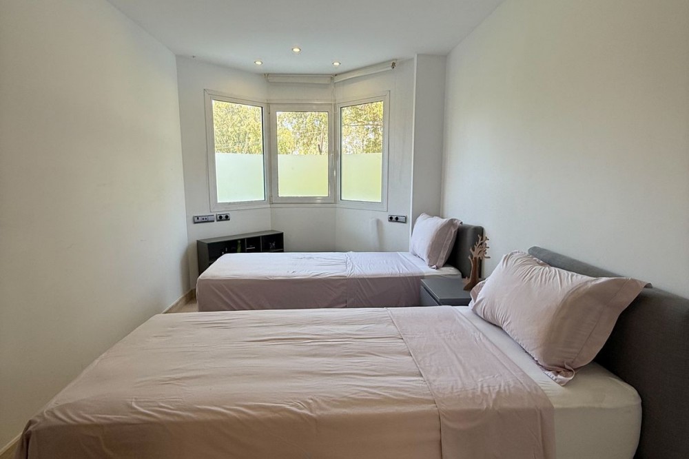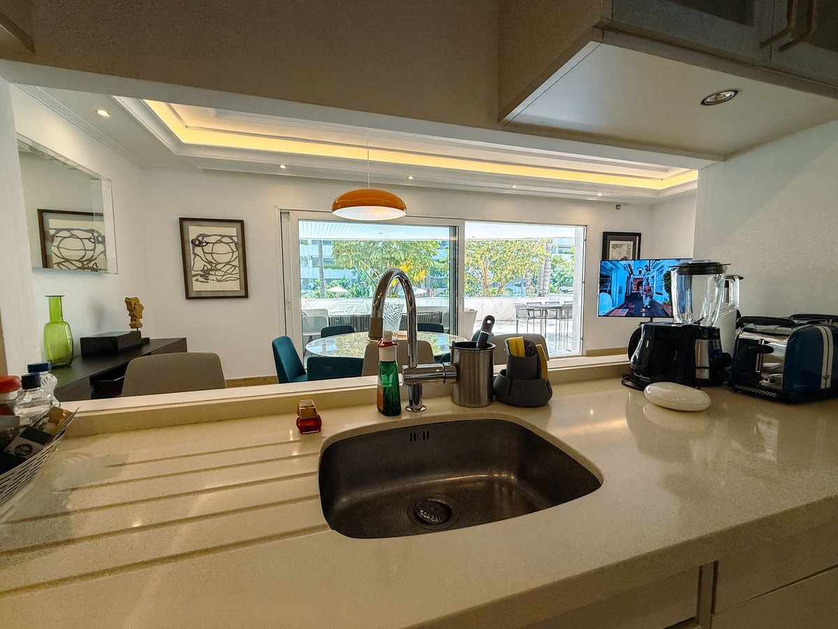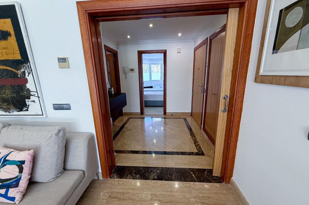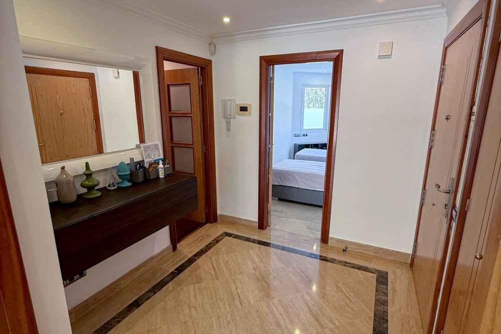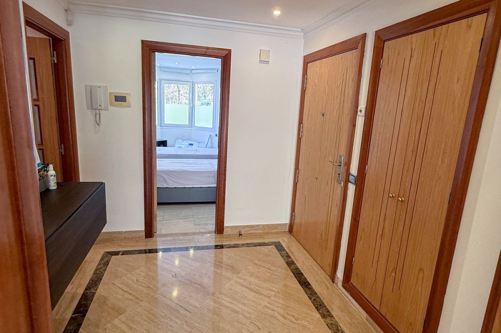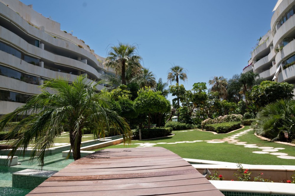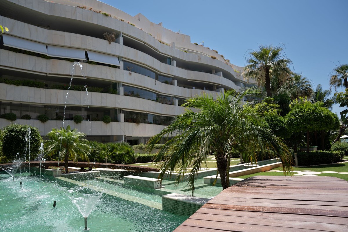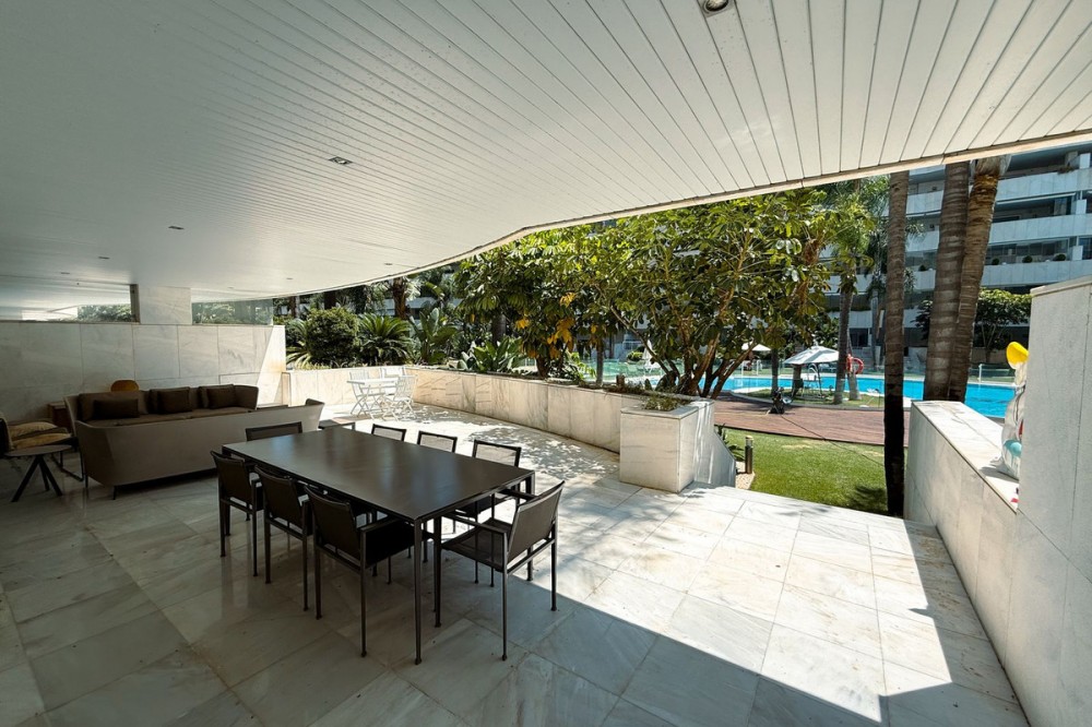 - Elegant ground-floor apartment with 157 m² built, located in the prestigious Embrujo de Banús complex, just a 3-minute walk from the beach: Ocean Club, Mistral Beach, etc. Spacious living/dining room with direct access to the terrace of over 70 m². The modern kitchen is fully equipped with high-end appliances. The property offers three bedrooms and three bathrooms. The master bedroom has an en-suite bathroom with a bathtub and shower and direct access to the terrace. The complex offers exclusive amenities such as an indoor and outdoor pool, a modern gym, a spa with a sauna and hydrotherapy, a restaurant, a bar, and 24-hour security. The apartment's notable features include electric shutters, air conditioning, a private parking space, a storage room and access to all complex amenities. Ground Floor Apartment, Marbella, Costa del Sol. 3 Bedrooms, 3 Bathrooms, Built 157 m², Terrace 70 m². Setting : Town, Suburban, Commercial Area, Beachside, Port, Close To Golf, Close To Port, Close To Shops, Close To Sea, Close To Town, Close To Schools, Close To Forest, Marina, Close To Marina, Urbanisation. Orientation : East, South. Condition : Excellent. Pool : Communal, Indoor, Heated. Climate Control : Air Conditioning, Hot A/C, Cold A/C. Views : Garden, Forest. Features : Covered Terrace, Lift, Fitted Wardrobes, Near Transport, Private Terrace, WiFi, Gym, Sauna, Storage Room, Utility Room, Marble Flooring, Double Glazing, Domotics, 24 Hour Reception, Restaurant On Site, Fiber Optic. Furniture : Optional. Kitchen : Fully Fitted. Garden : Communal, Landscaped, Easy Maintenance. Security : Gated Complex, Electric Blinds, Entry Phone, Alarm System, 24 Hour Security, Safe. Parking : Underground, Garage, Covered, Private. Utilities : Electricity, Drinkable Water. Category : Luxury, Resale.