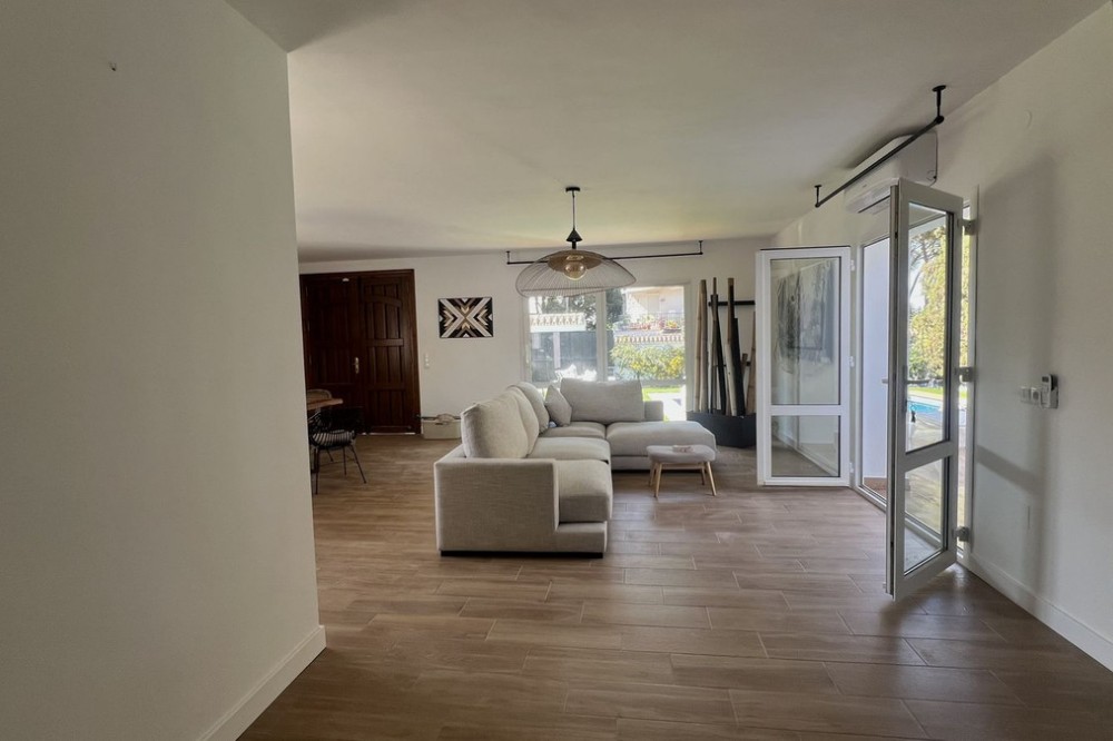 - Charming Villa for Sale – Artola, Cabopino (Marbella) We present this cozy villa located in one of the quietest and most exclusive areas of Marbella, surrounded by pine forests, protected dunes, and just steps from Cabopino Beach. A privileged location with direct access to the sea and a unique natural setting. The property has been completely renovated and is spread over two floors. It offers a bright living room with double-height ceilings and a fireplace, a modern kitchen with access to the garden, and well-connected spaces that invite you to enjoy both the interior and exterior. It features 3 well-distributed bedrooms, 3 fully renovated contemporary bathrooms, a private garden with a pool, and space for several vehicles. The villa is sold fully furnished and ready to move into. Located very close to the Cabopino marina, with waterfront restaurants, a relaxed atmosphere, and all amenities just minutes away. A unique opportunity to enjoy life by the sea in an incomparable natural setting. Visit recommended!
