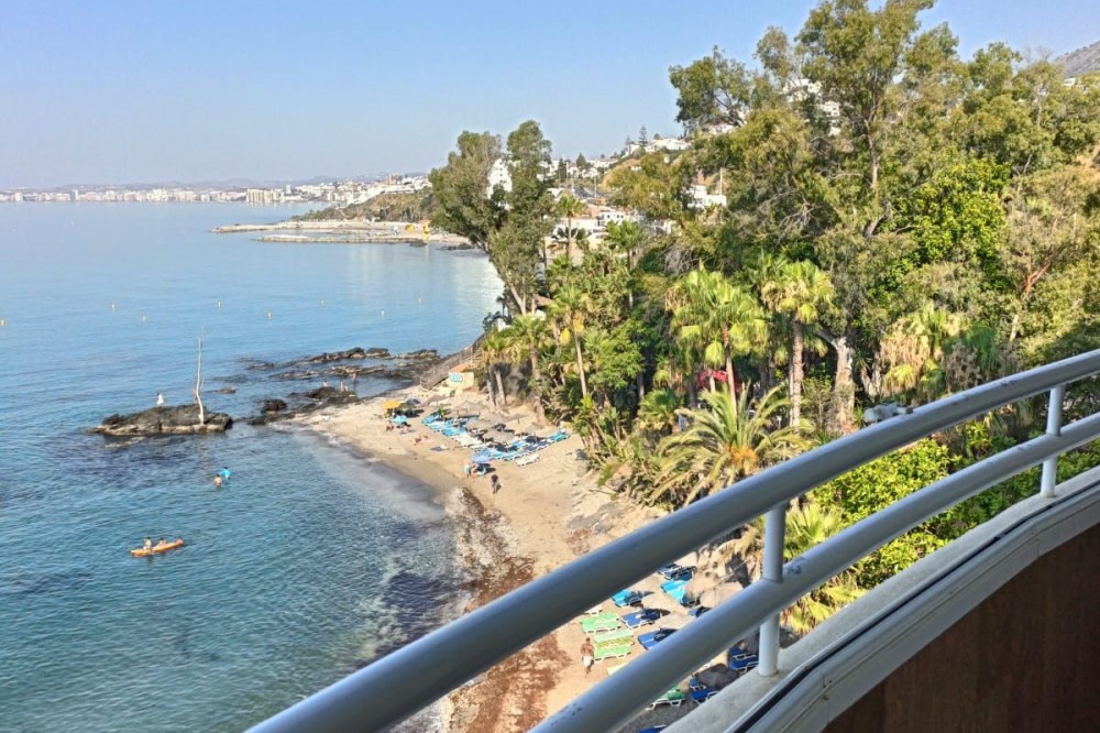 - Rare opportunity to purchace a fantastic beach front apartment in Benalmadena Costa . Residencial Costa Quebrada offers stunning sea views and lush gardens, Development located on the cliff by the sea , so despite the fact that apartment is on the ground floor , it’s very much elevated. Apartment has 2 bedrooms 2 bathrooms spacious leaving room white open plan kitchen and a large terrace. Very big underground parking is included in the price. Location cant be better , many restourants within the walking distance . Bus stop just outside international schools 5 min drive. If you are looking for amazing sea view from your terrace dont look any further