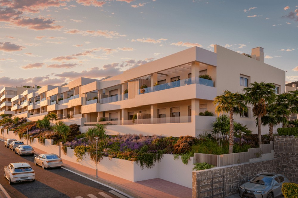 - New Development: Prices from €356,300 to €571,400. [Bedrooms: 2 - 3] [Bathrooms: 2] [Built size: 87m2 - 110m2]. Located on Calle Menta in Benalmádena (Málaga), this new residential development offers a private community of 70 homes with 2 and 3 bedrooms, featuring a wide variety of layouts, with penthouses standing out. The architecture and design focus on highlighting the terraces, which are designed to capture the natural light and sea breeze of the Costa del Sol, as well as offer sea views. The gated community includes communal areas with a swimming pool, chill-out zone, and a gym with a sauna—everything needed to enjoy leisure time. Each of the 70 homes includes 2 full bathrooms, 2 parking spaces, and a storage room. Completion is scheduled for October 2027. All residences come with fully fitted kitchens equipped with top-brand appliances. The homes are designed for comfort and versatility, with open and optimized layouts. A prime example is the open-plan kitchen with an island, integrated into the living room. Bedrooms provide direct access to terraces, allowing residents to enjoy the breeze during moments of rest. Penthouses boast expansive terraces with panoramic views of the Mediterranean Sea.