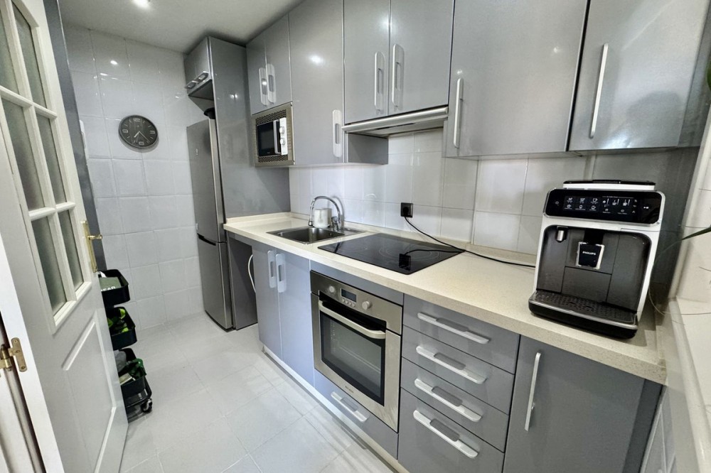 - Cozy 1-bedroom apartment with panoramic sea views in Benalmádena Costa For sale cozy 1-bedroom, 1-bathroom apartment located in one of the best areas of Benalmádena Costa, just 50 meters from the beach. The property has an interior surface area of 63 m², plus a 12 m² south-facing terrace, offering impressive panoramic views of the sea and Fuengirola Bay. The apartment features a fully independent kitchen, perfect for those who value space and functionality. The spacious living room connects to the terrace, allowing for excellent natural light throughout the day. Situated in a quiet complex with a communal pool, perfect for relaxing and enjoying the Mediterranean climate. Important: The building currently does not have an elevator. An excellent opportunity for a primary residence, second home, or vacation rental investment due to its unbeatable location and views.