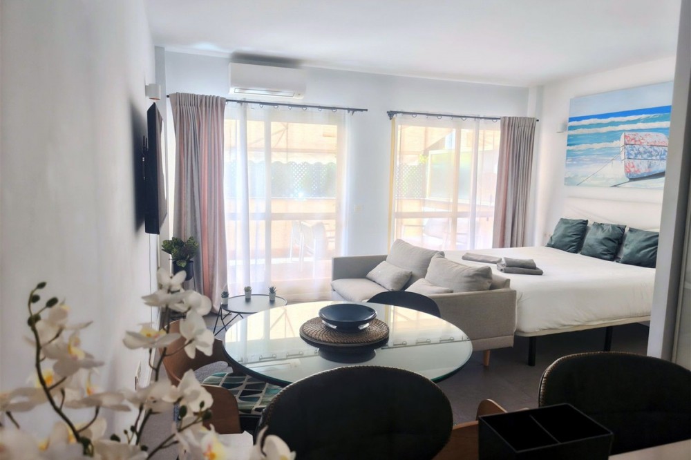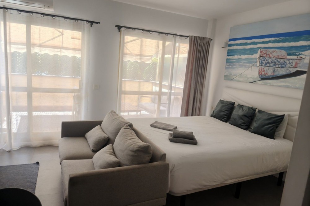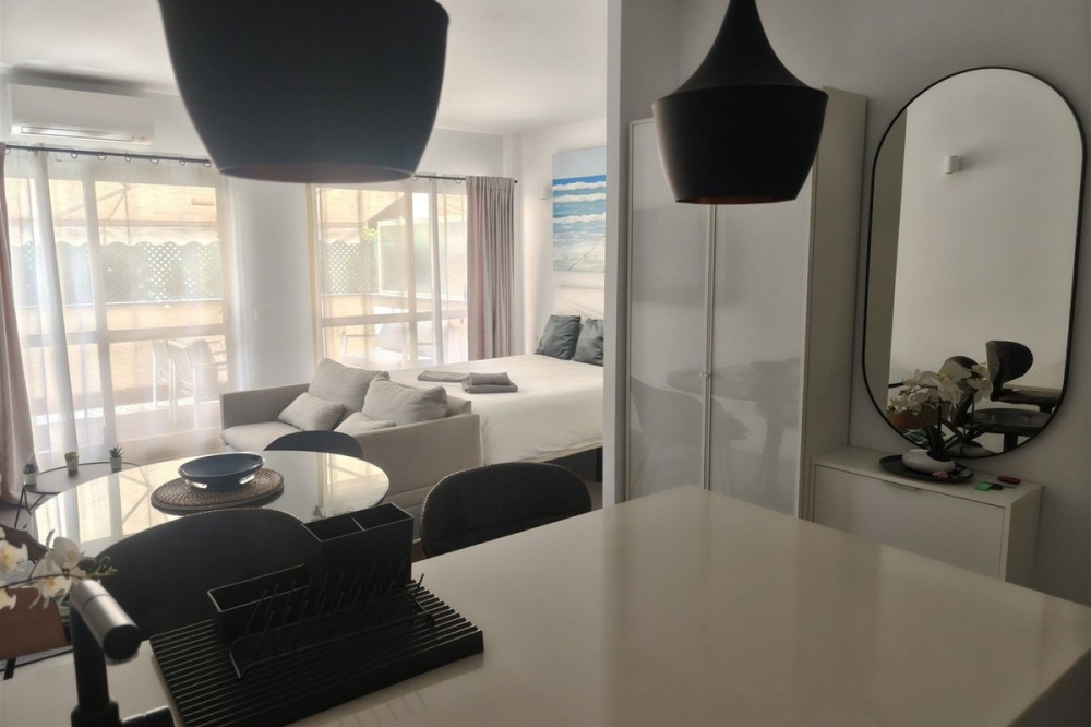 - Stylish Studio Apartment for Sale by the Beach in Elviria This bright and fully furnished studio apartment is set within a beachfront development in the sought-after Elviria area of Marbella. It’s on the ground floor and offers direct access to the beach — ideal for holiday living or as a solid rental investment. The development features communal parking, five swimming pools, an on-site restaurant, and a children's play area. The apartment also comes with a Tourist License, making it rental-ready. Inside, the property offers 37m² of well-designed living space, including a bathroom with a walk-in shower, an open-plan living-dining-sleeping area with a built-in wardrobe, and a fully fitted kitchen. A generous 14m² private terrace lets you make the most of the Costa del Sol's sunny climate. Set in an exclusive and quiet complex, the apartment is just a 20-minute drive from central Marbella and the glamour of Puerto Banús. It’s close to some of the area’s best beaches, and luxury resorts like Marriott's Marbella Beach Resort and Hotel Vincci Selección Estrella del Mar. Everyday amenities are nearby, including Carrefour supermarket, leisure options, and cultural attractions. For golf lovers, Santa María Golf Club is only 5 minutes away by car. The area is well-connected with public transport (bus lines L-302, M-220, M-320, and line 6) and quick access to the A-7 motorway, just 500m away. Whether you're looking for a peaceful coastal home or a high-performing rental property, this apartment is a fantastic opportunity in one of Spain’s most desirable beachside locations.