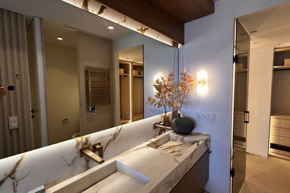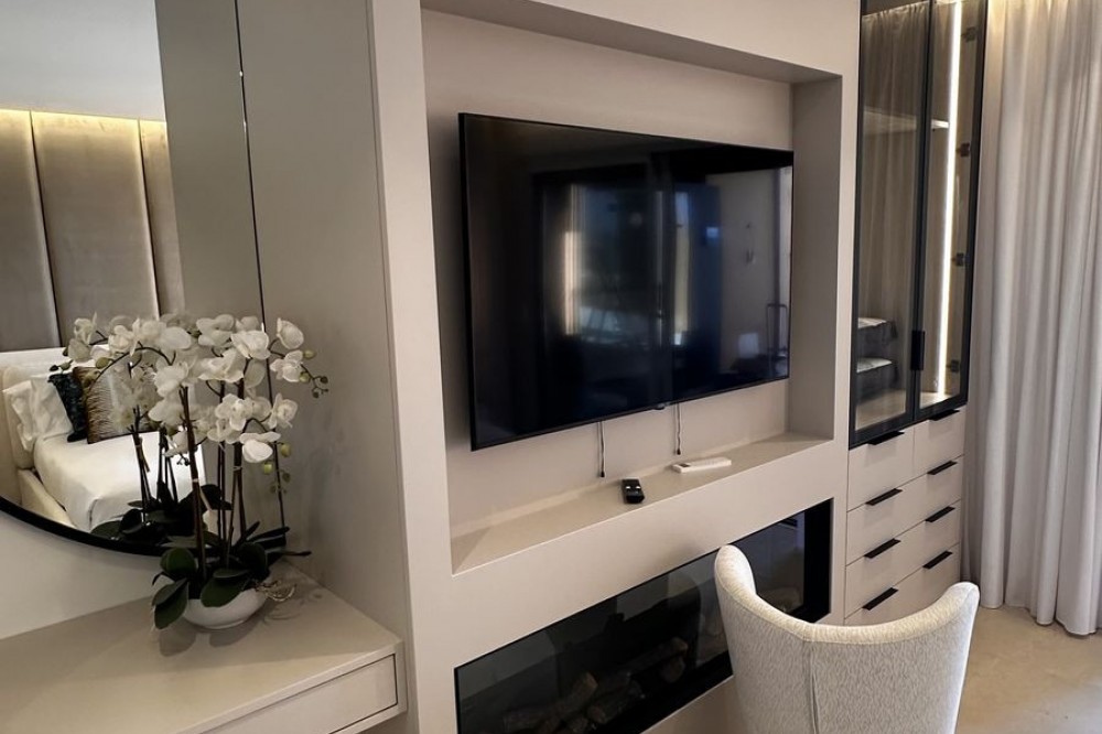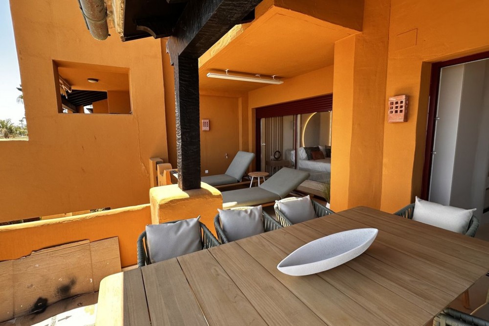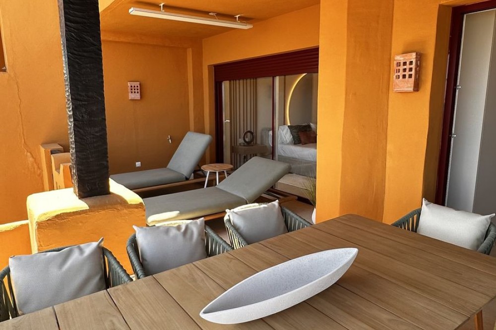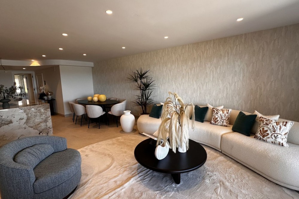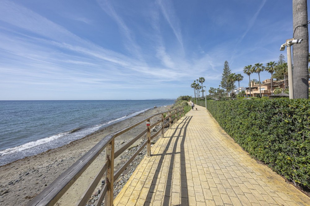 - This Front Line Beach Apartment presents itself as one of the most exclusive urbanisations on the **New Golden Mile** and combines luxurious living comfort with a spectacular location directly on the Mediterranean Sea. Luxurious designer flat on the -New Golden Mile- **(187 m², bright & modern with top fittings)** **Highlights of the apartment** ✔ **Open designer kitchen** (brand new) - High-quality **German brand appliances** - Integrated **B&O sound system** for first-class entertainment - Electric fireplace** for a cosy atmosphere ✔ **Master bathroom with luxury details** - Free-standing bathtub** as an eye-catcher - Walk-in wardrobe & high-quality materials ✔ **More premium features** - **Wine fridge** for wine lovers - **Second kitchen** / guest cooking area (depending on layout) - **Office area** or guest room possible #### **Exclusive location & communal comfort** - **Direct beach access** & Mediterranean Sea views - Access to **pools (3), sauna, fitness, 24h security** - **Laguna complex & Estepona centre** within walking distance --- **Perfect for discerning buyers looking for modern luxury & lifestyle! Here are some of the highlights of this prestigious development: *Luxury Amenities & Services** ✔ **Multiple pools**: Heated indoor pool + two outdoor pools ✔ **Wellness area**: Sauna, whirlpool and fitness centre ✔ **Gastronomy**: Own restaurant within the complex ✔ **Security**: 24-hour security service for maximum privacy ✔ **Maintained gardens**: Mediterranean landscaping with a high feel-good factor **Perfect location** ???? **Direct beach access** - just a few steps to the Mediterranean Sea ???? **Local amenities**: Shops, top restaurants and schools in the immediate vicinity ???? **Laguna complex**: Exclusive beach clubs, trendy bars and culinary highlights in the newly built complex.