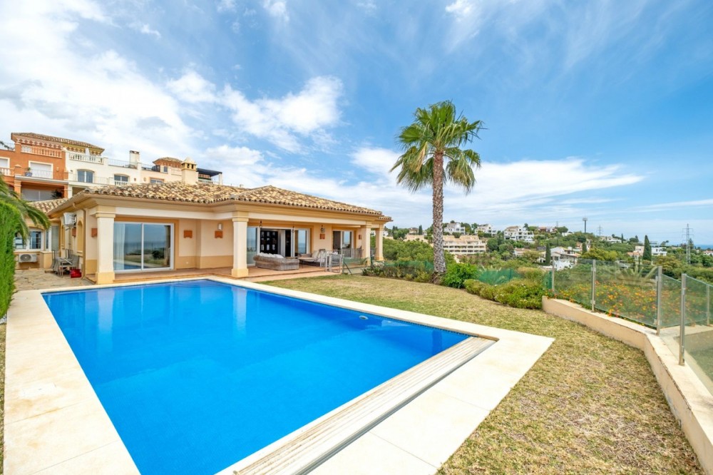 - Discover the epitome of luxury living in Elviria, Marbella East, with this captivating south-facing villa boasting unrivaled panoramic views of the Mediterranean Sea. This cozy andalucian villa, enveloped by a internal courtyard, features seven generously sized bedrooms, six of which boast en-suite, all spanning a grand total of 711 sqm. Nestled within a secure gated community on a substantial 1,019 sqm plot, the residence offers a private garden, expansive pool, and sea-view terraces, ensuring a sanctuary of exclusivity. The ground floor unveils a luminous living space, a gourmet kitchen, and the opulent master suite, while the basement hosts a leisure haven with a games room, TV lounge, gym, sauna, laundry, and additional bedrooms. An idyllic family haven in the heart of the verdant paradise of Elviria, this residence promises the perfect blend of elegance and comfort. Seize the opportunity to call this enchanting property your home, where every moment is embraced by the allure of Mediterranean splendor.