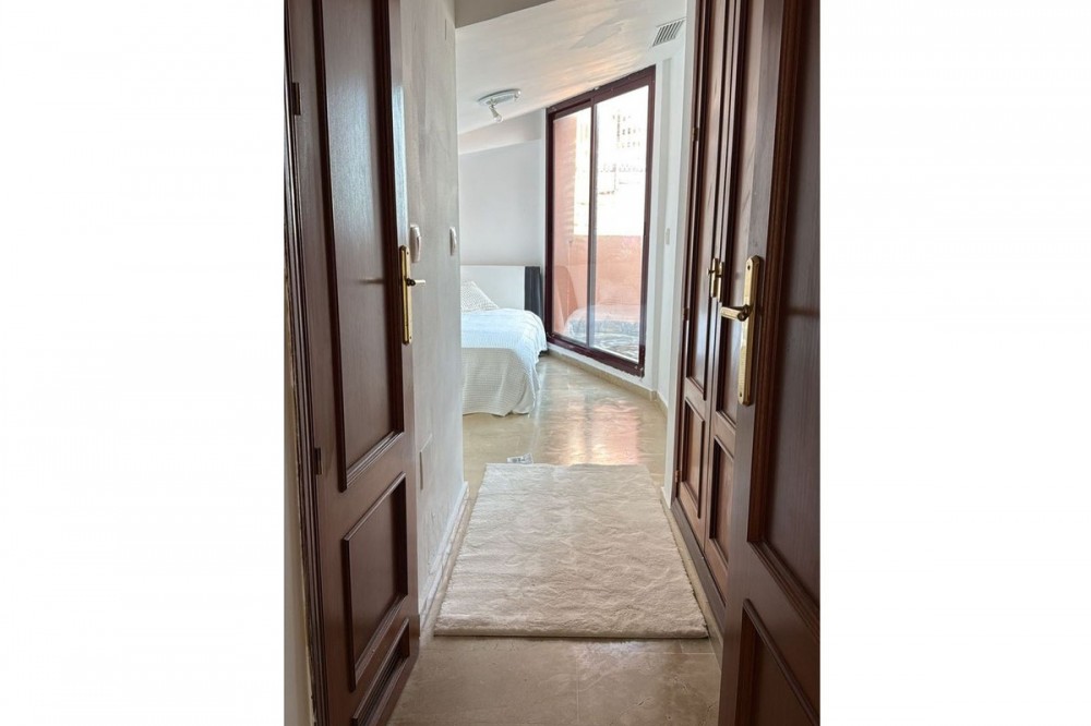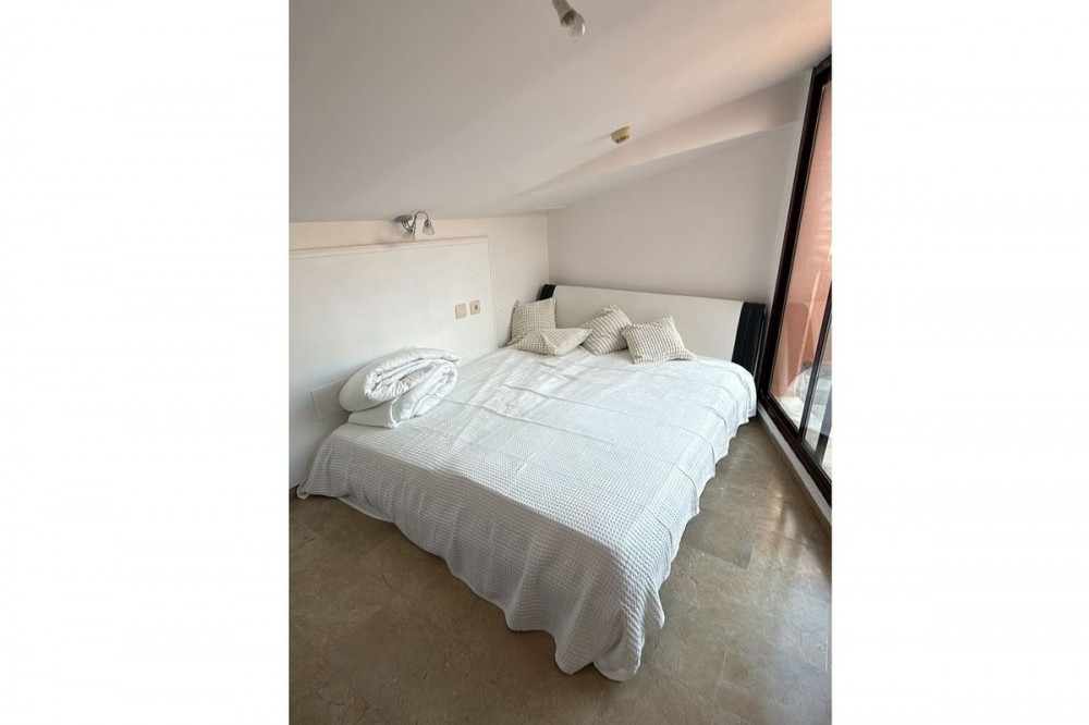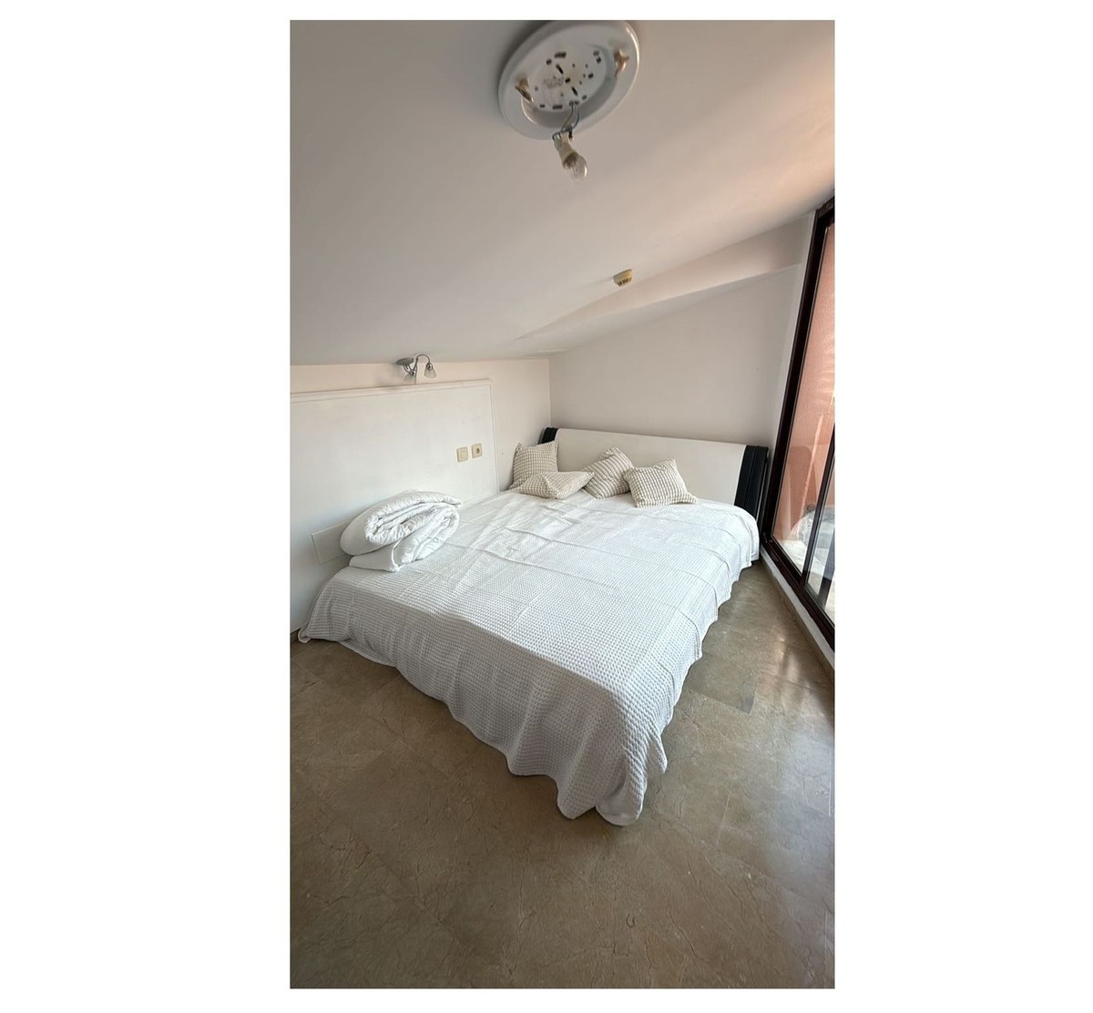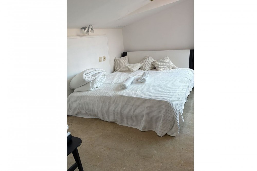 - Opportunity! Beachfront penthouse in Manilva, in the Aparthotel Don Juan. The apartment, located on the fifth floor, has a floor area of 104 m² and a 12 m² terrace with sea views, facing south-southwest. It comprises a living room, a fully equipped and furnished kitchen, 2 bedrooms and 2 bathrooms. It will be sold fully furnished and ready to rent. The apartment is sold on a freehold basis; Spanish banks grant loans of up to 70% of the purchase price. Owners can use the property privately for up to 8 weeks per year and the hotel rents it out for the rest of the year. After deducting fees and expenses, the rental income goes to the owner. Community with outdoor pool and indoor pool with spa, sauna and gym. Features: Fully modern furnishings, hot/cold air conditioning, fitted wardrobes, lift, security entrance door, equipped kitchen, TV, terrace, double glazing, shutters. Gated complex on the beachfront with direct access to the beaches and beach restaurant. Bus stop in front of the complex. 5 minutes' drive from La Duquesa port or 25 minutes from Marbella. Golf courses are just a few minutes' drive away.