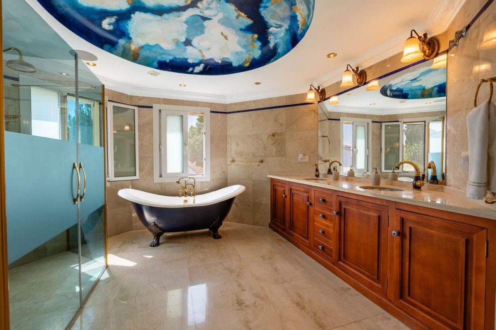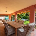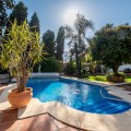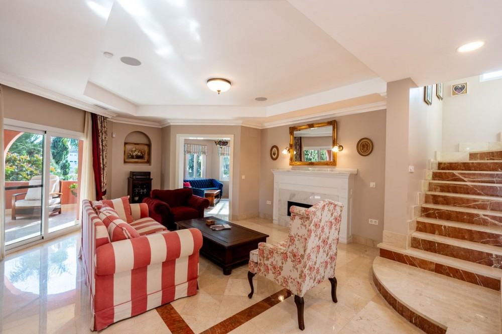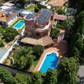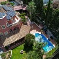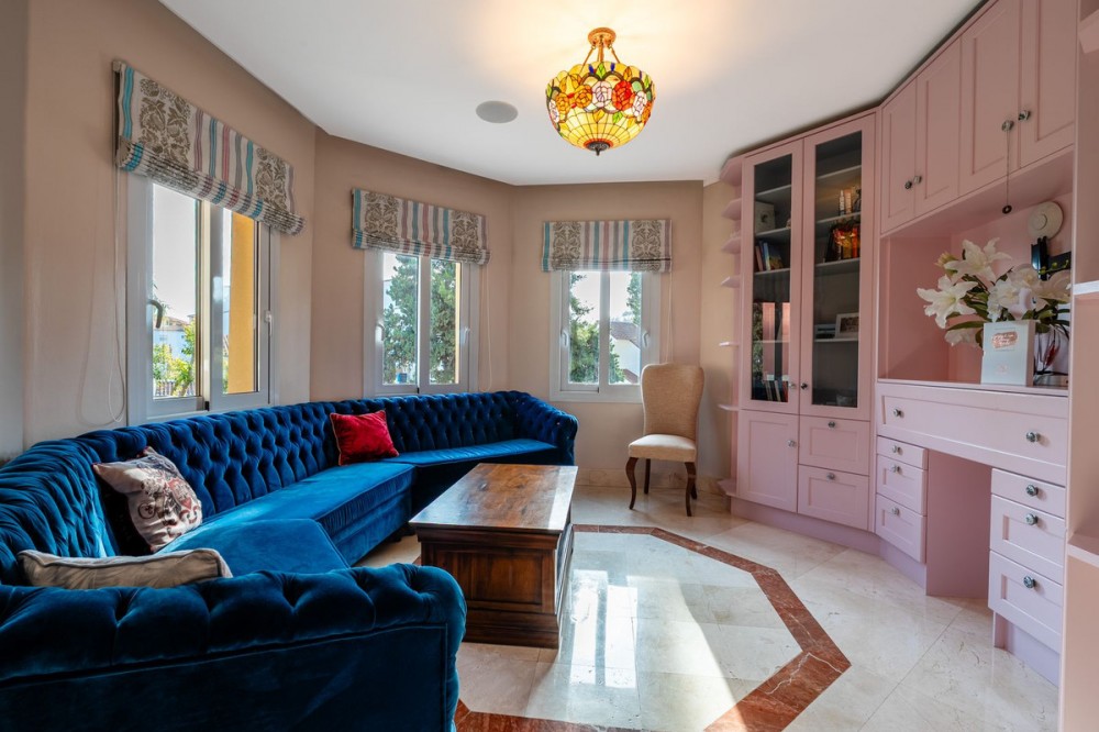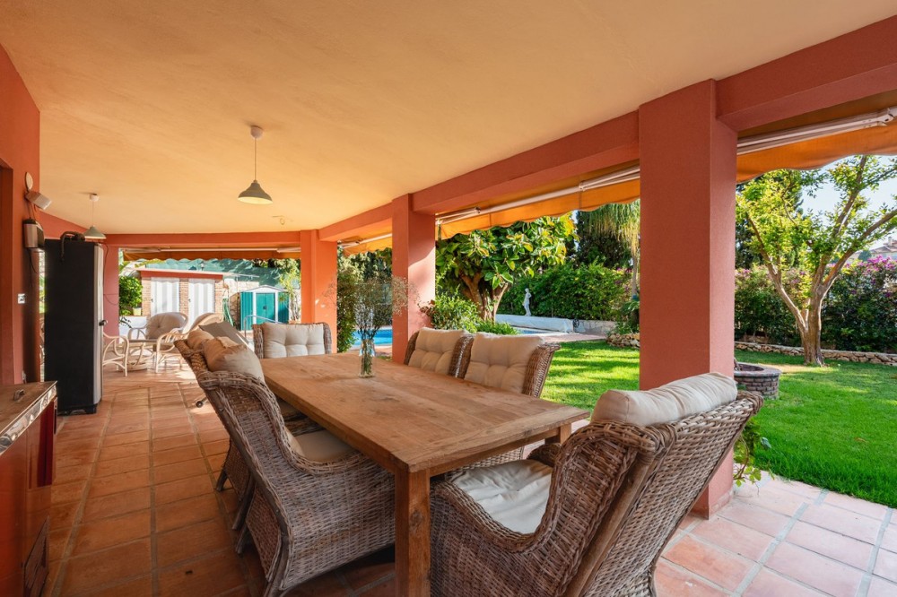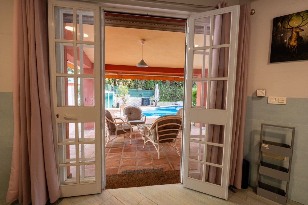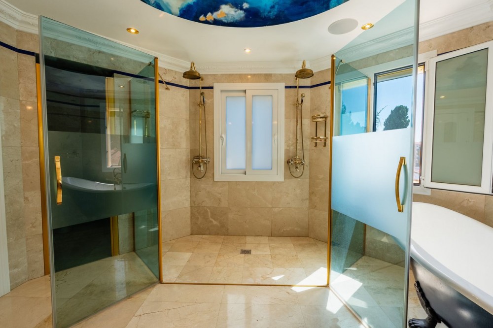 - Discover this stunning, luxory newly listed villa located in one of the most popular residential neighborhoods El Coto in Mijas. Set on a generous 946 m² southwest-facing plot, this meticulously upgraded villa offers 416 m² of light-filled living space across three refined levels. South-west orientation ensures warm natural light all day and postcard-perfect sunsets from the expansive main terrace. Step through the front door and into a home that welcomes you with comfort and space. The main floor boasts an open-concept design where a fully equipped American-style kitchen with granite countertops and a central island seamlessly connects to a spacious dining area and a dual-sitting lounge. Large glass doors open directly to the garden-view terrace, creating an effortless indoor-outdoor living experience. This floor also includes a serene study, a guest powder room, and a thoughtfully designed laundry and ironing room. Air conditioning and heating—via both split units and radiant floor heating in key areas—ensure cool summers and cozy warmth during the colder months. A state-of-the-art home automation system allows you to control lighting, blinds, and climate throughout the house, while high-speed fiber-optic internet is available, ideal for remote work or streaming. Upstairs, the master suite is your private retreat. It features a walk-in wardrobe, a luxurious ensuite with a double shower, soaking tub, in-floor heating, and a private terrace. Two additional bedrooms on this level offer built-in wardrobes and full ensuite private bathrooms—both with shower and tub—providing elegant comfort and privacy for family or guests. The lower level is where functionality meets flexibility. Enjoy a dedicated home cinema, a second full kitchen, and a spacious suite combining bedroom and lounge with a private bathroom and direct garden access. Ideal as a guest apartment, games room, or independent living space. Outdoors, the home continues to impress. A beautifully maintained garden surrounds a heated saltwater pool—perfect for year-round use. A built-in barbecue area invites entertaining, and the generous garage easily accommodates up to four vehicles. There are also three large separate buildings for additional storage. The property is located within a secure, quiet residential area with 24-hour private security, ensuring peace of mind for you and your family. Sustainability and modern convenience go hand in hand with 36 solar panels, offering considerable energy savings and reflecting the home’s commitment to eco-conscious living. This turnkey villa is in excellent condition, located in the highly desirable residential area of El Coto in Mijas. International schools are within easy reach, with the prestigious San Francisco School just 200 meters away. Grocery stores, playgrounds, and clinics are all less than a 5-minute drive, making daily life exceptionally convenient. Rental Investment Potential The villa presents an attractive opportunity for both short-term and long-term rental income. The property holds an active tourist license (VFT), allowing immediate rental operations and maximizing investment potential in one of the Costa del Sol’s most in-demand areas. Don’t miss your chance to own one of Mijas’ most thoughtfully designed homes, in a peaceful neighborhood ideal for families, professionals, or investors. Contact us to schedule your private viewing.