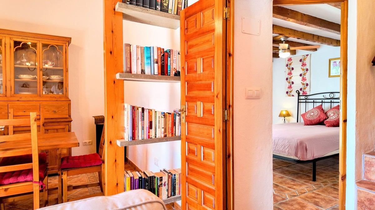 - This charming property features a spacious 3-bedroom, 1-bathroom house with two levels, located in the peaceful Barranco del Sol neighborhood. only 25 min drive to Malaga The house is well-maintained and offers a range of desirable amenities, including access to city water and electricity, as well as a 3000-liter water tank for backup. The living area is bright and inviting, with a cozy sitting area, dining space, and a charming stove and fireplace to create a warm atmosphere. The fully equipped kitchen includes a stove, dishwasher, and two refrigerators, with a door leading directly outside for easy access to the outdoors. The bathroom is fitted with a bath, shower, sink, and heated floor. Outside, you'll find a covered terrace, perfect for both winter and summer use. There's a door leading to the garden, where you'll discover the inviting pool area, along with a shower next to the pool for convenience. The master bedroom has its own private terrace with a door leading to the garden, offering stunning views. Upstairs, two additional bedrooms each have their own terraces, offering beautiful views of the valley and the pool area. The second bedroom has direct views of the pool. Additionally, there's a laundry room and a storage area for extra convenience. The property is easily accessible, with a 200-meter driveway and a stream running along the property, enhancing the natural charm. The municipality is also planning to repair the road for improved access. This property offers ample parking space and is located in a tranquil area with easy access to nearby amenities. It's an ideal home for those looking for a peaceful retreat with beautiful views and plenty of space. Pre-AFO in place