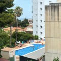 - Studio just steps from the sea – Ideal for living or investing Located only 600 meters from the beach and Puerto Marina, this studio is perfect both as a permanent residence or a tourist investment. Upon entering, you’re welcomed by a full bathroom with a bathtub. Then, a cozy and functional space includes a fully equipped kitchen, a sofa bed, a bunk wardrobe, and access to a pleasant terrace overlooking the pool with a partial sea view. The southeast orientation ensures plenty of natural light throughout the day. It also has a large closet on the terrace and a small pantry in the kitchen. The building features spacious gardens, a communal pool, and a large shared parking area (no assigned spaces). Vacation rentals are allowed, making it an excellent opportunity for generating income. Community fees include both hot and cold water, as well as propane gas, ensuring greater daily comfort. A complete, bright, and perfectly located option by the sea!