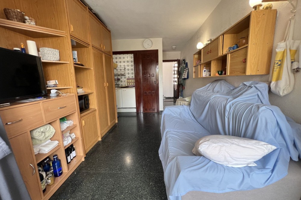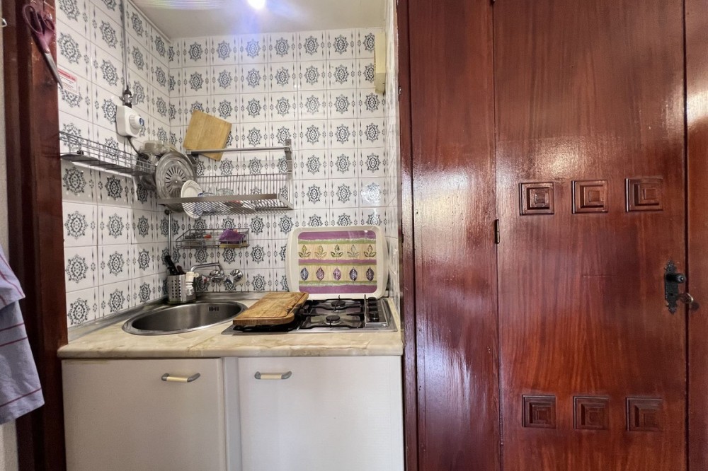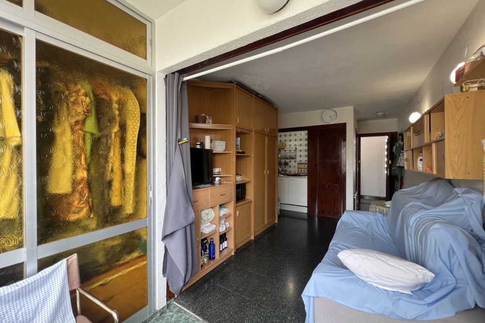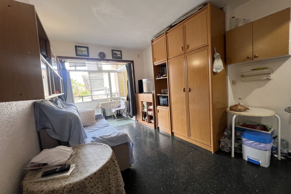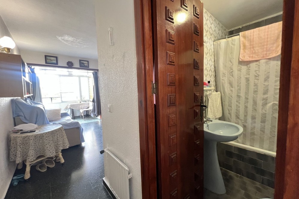 - Studio just steps from the sea – Ideal for living or investing Located only 600 meters from the beach and Puerto Marina, this studio is perfect both as a permanent residence or a tourist investment. Upon entering, you’re welcomed by a full bathroom with a bathtub. Then, a cozy and functional space includes a fully equipped kitchen, a sofa bed, a bunk wardrobe, and access to a pleasant terrace overlooking the pool with a partial sea view. The southeast orientation ensures plenty of natural light throughout the day. It also has a large closet on the terrace and a small pantry in the kitchen. The building features spacious gardens, a communal pool, and a large shared parking area (no assigned spaces). Vacation rentals are allowed, making it an excellent opportunity for generating income. Community fees include both hot and cold water, as well as propane gas, ensuring greater daily comfort. A complete, bright, and perfectly located option by the sea!