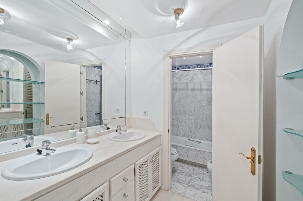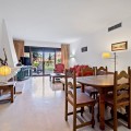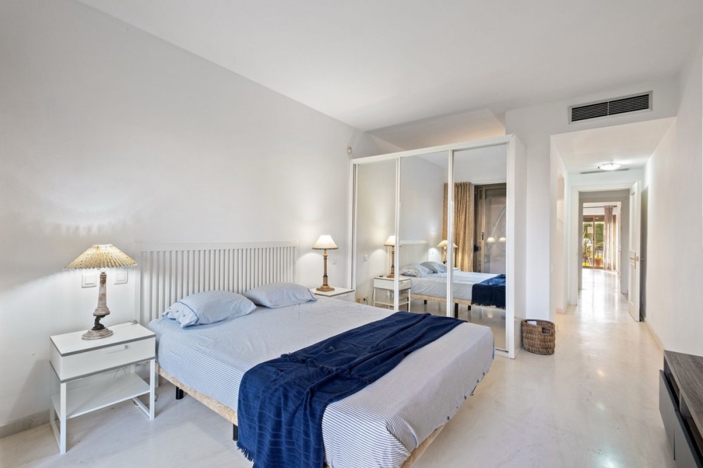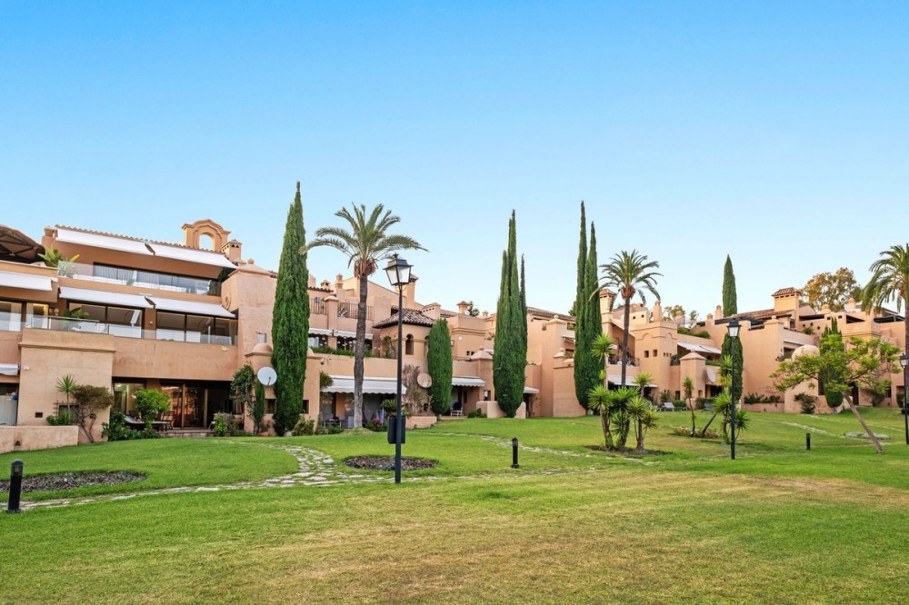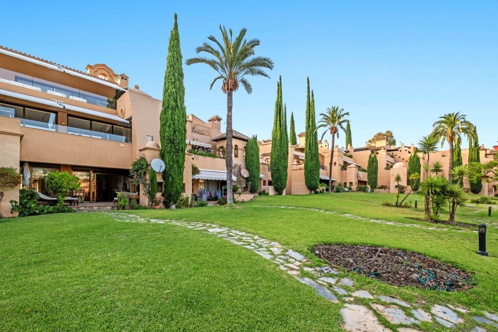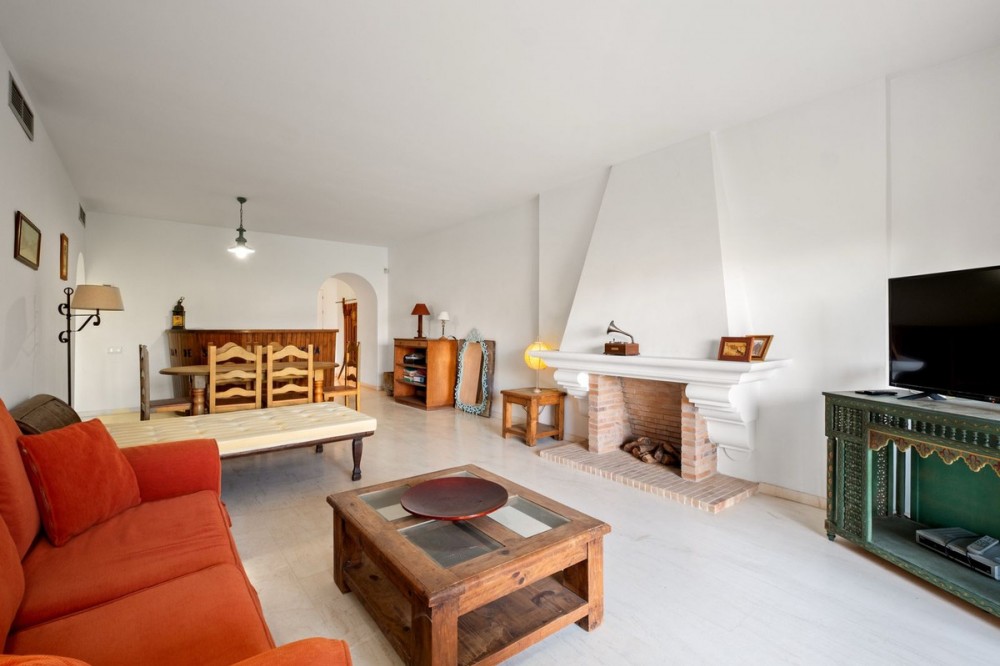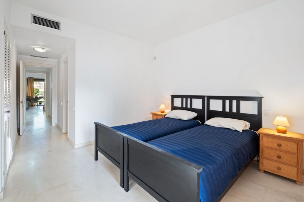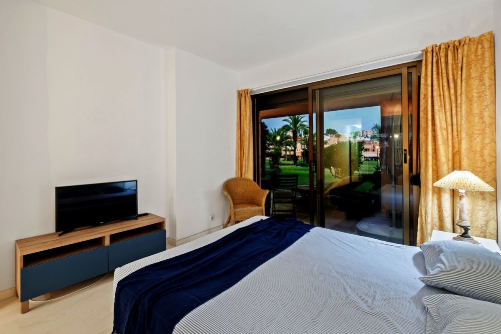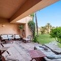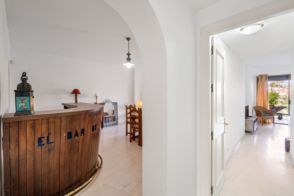 - Elegant Ground-Floor Apartment with Private Terrace, Two En-Suite Bedrooms, and Direct Garden Access – Perfect for Living or Investment Located in the exclusive residential complex La Cartuja del Golf, this charming ground-floor apartment combines comfort, style, and a unique connection with nature. With an excellent layout and a warm atmosphere, the property features a bright living-dining room with a fireplace, tastefully furnished, and with direct access to a spacious private terrace — ideal for relaxing, enjoying the sun, or sharing special moments outdoors. The terrace is surrounded by greenery and opens onto beautifully maintained communal gardens, offering a privileged outdoor space perfect for those who value peace and tranquility without compromising on comfort. The property boasts two spacious bedrooms, each with its own en-suite bathroom, ensuring privacy and convenience. The kitchen is fully equipped, ready to use, and ideal both for everyday cooking and for those who enjoy preparing meals at home. Inside, high-quality finishes stand out, including solid wood furnishings, centralized air conditioning, and marble floors that bring elegance and freshness to the space. Every detail has been carefully considered to ensure both functionality and comfort. La Cartuja del Golf is a prestigious gated community just minutes from beaches, golf courses, shopping areas, and all essential services, making this an excellent choice as a permanent residence, holiday home, or high-return investment for rental. A unique opportunity to enjoy a relaxed lifestyle surrounded by nature, with all amenities