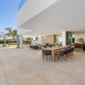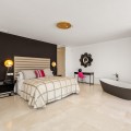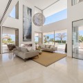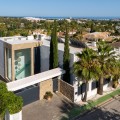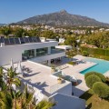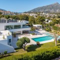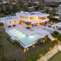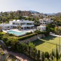 - Introducing a stunning contemporary villa located in the prestigious neighbourhood of La Cerquilla, nestled in the heart of Nueva Andalucía’s Golf Valley. This exclusive 7-bedroom residence sits on a generous 2,548m2 plot, offering unmatched privacy and panoramic views of Marbella’s iconic La Concha mountain and the Mediterranean coastline. Its prime location places it within close proximity to top golf courses, international schools, upscale restaurants, and the vibrant Puerto Banús marina, making it an exceptional investment and lifestyle choice. Step inside to discover expansive interiors thoughtfully designed with natural textures and rich finishes. The villa boasts soaring ceilings, elegant lighting features, and a harmonious flow between indoor and outdoor living. The main living areas are spacious and inviting, adorned with custom furnishings, organic materials, and curated decor elements such as woven wall art and hand-crafted ceramics. The upper floor showcases a tranquil gallery-style corridor overlooking the main level, with direct access to bedrooms that enjoy sweeping views and private terraces. At the heart of the home is a modern kitchen outfitted with premium appliances, sleek cabinetry, and a large glass dining area framed by floor-to-ceiling windows. The seamless connection to the outdoor living spaces includes an impressive pool with a jacuzzi, Balinese- style sun loungers, and a covered dining terrace with a fireplace and barbecue setup—perfect for entertaining. What's best is the private pristine tennis court at the foot of the garden, ideal for residents to use all year round. This villa epitomises contemporary luxury in a Mediterranean setting, offering an unparalleled blend of comfort, sophistication, and location.
