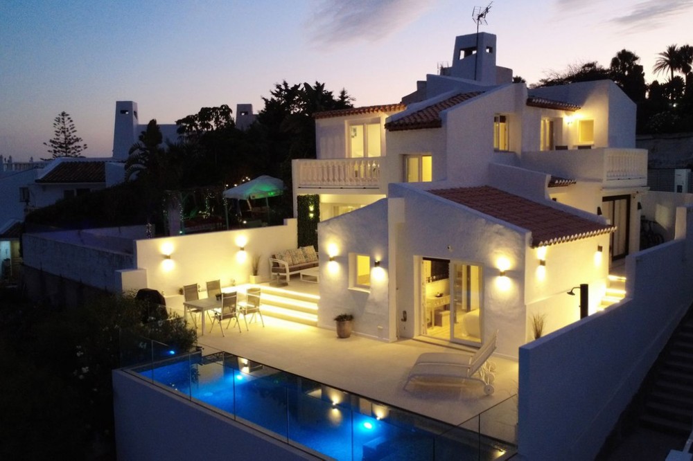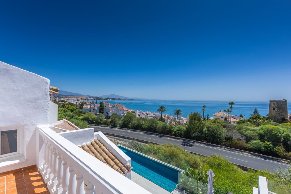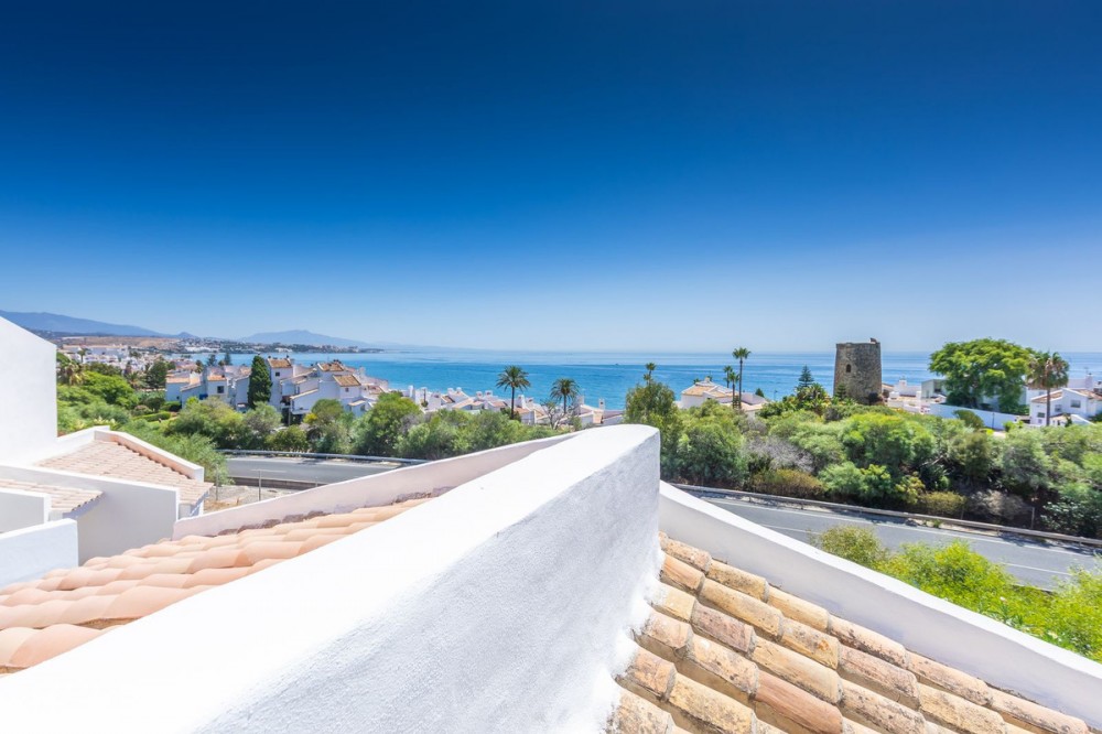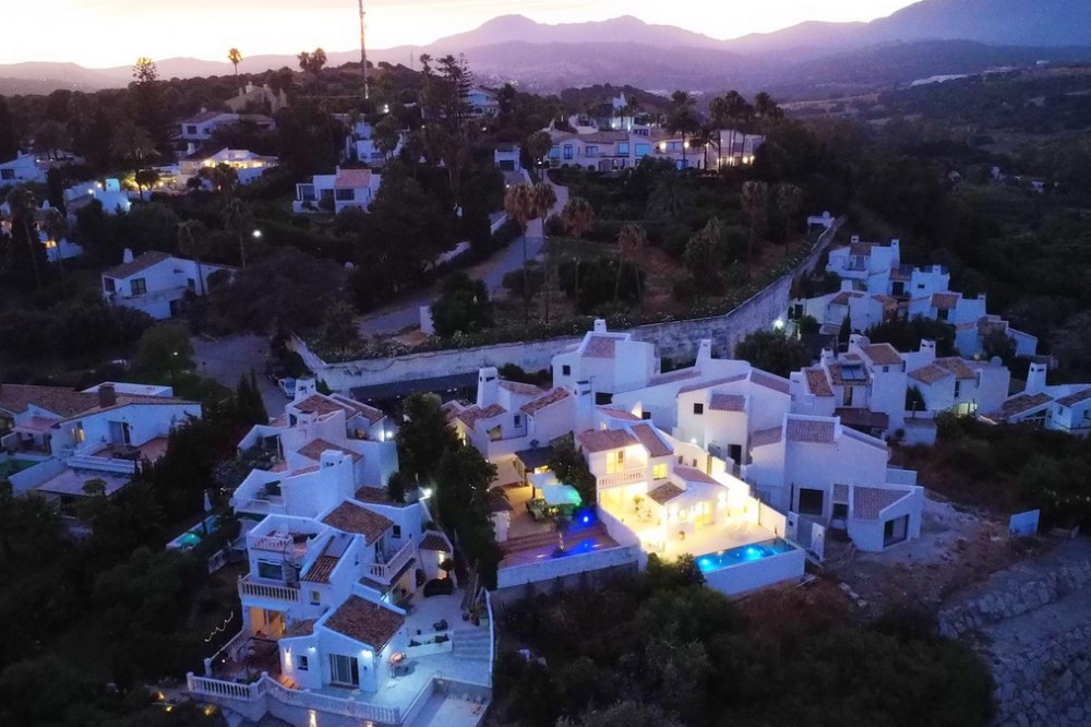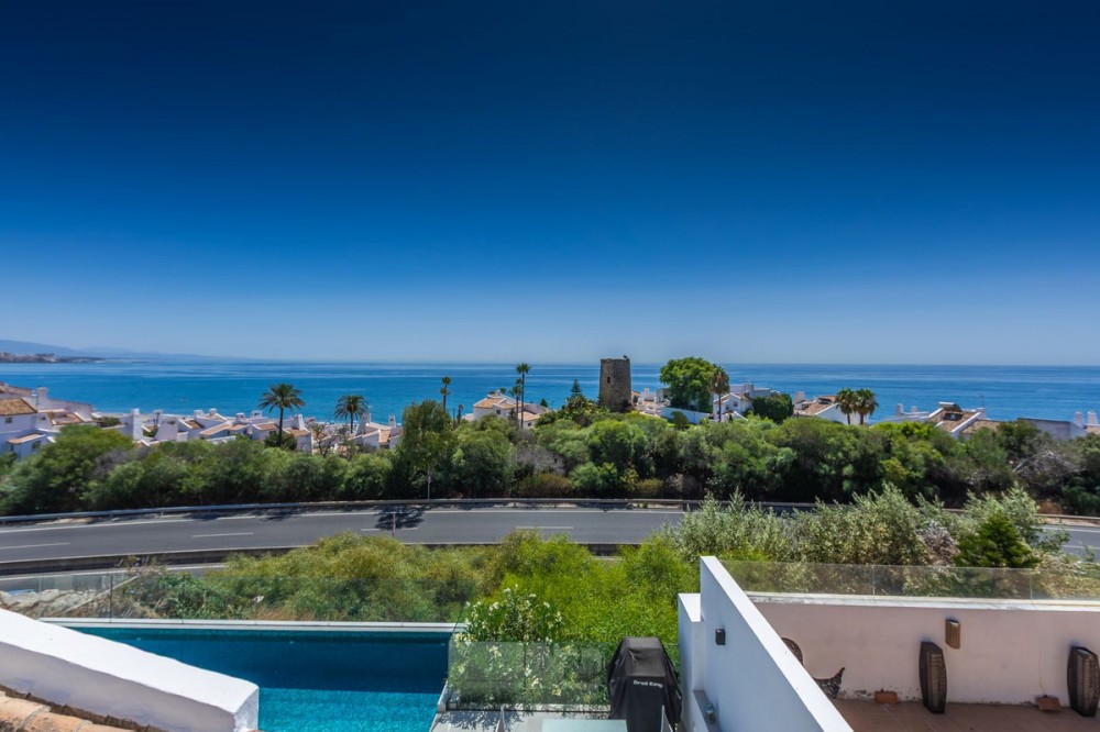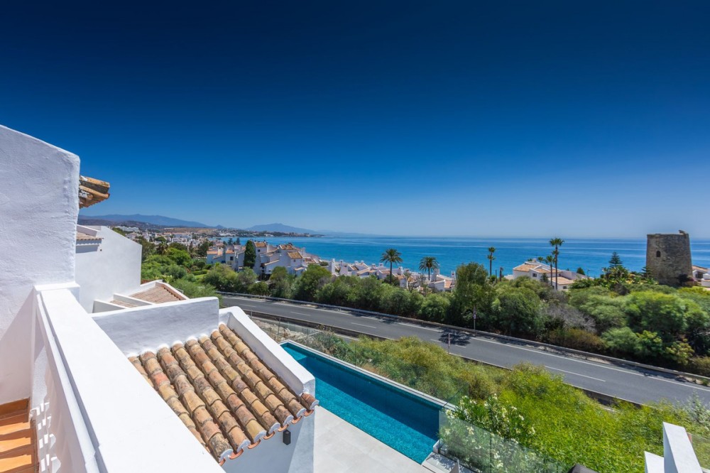 - Modern and elegant villa with extraordinary panoramic views of the sea, the mountains, Gibraltar, and Africa, located in a privileged area with direct access to beautiful beaches via a convenient footbridge or an easy underground tunnel. This property is part of a unique architectural complex designed by renowned European architect Aubrey David, widely awarded for his innovative and aesthetic approach. Set within a well-established and meticulously maintained residential community, it offers access to six communal swimming pools, mature gardens, a gym, and a tennis court. Each villa in the complex features a unique design and layout, adding to the exclusive character of the community. The villa enjoys an excellent location, just a short drive from Estepona, La Duquesa, and Sabinillas, and well connected to Sotogrande, Marbella, Gibraltar, and Málaga Airport. All essential services, supermarkets, schools, and the new hospital are conveniently close, just 2 km away. Ideal for golf enthusiasts, the property is next to Estepona Golf and close to prestigious courses such as Finca Cortesin. Facing southeast and recently renovated, the villa retains its charming original rustic style. It is laid out over several levels, allowing for an abundance of natural light through its many windows. The home features several terraces with different orientations, a private pool, and a spacious covered parking area. Holiday rentals are allowed, with a 20% supplement applied to the community fee. A property full of character, charm, and an unbeatable location. Highly recommended for viewing.