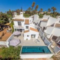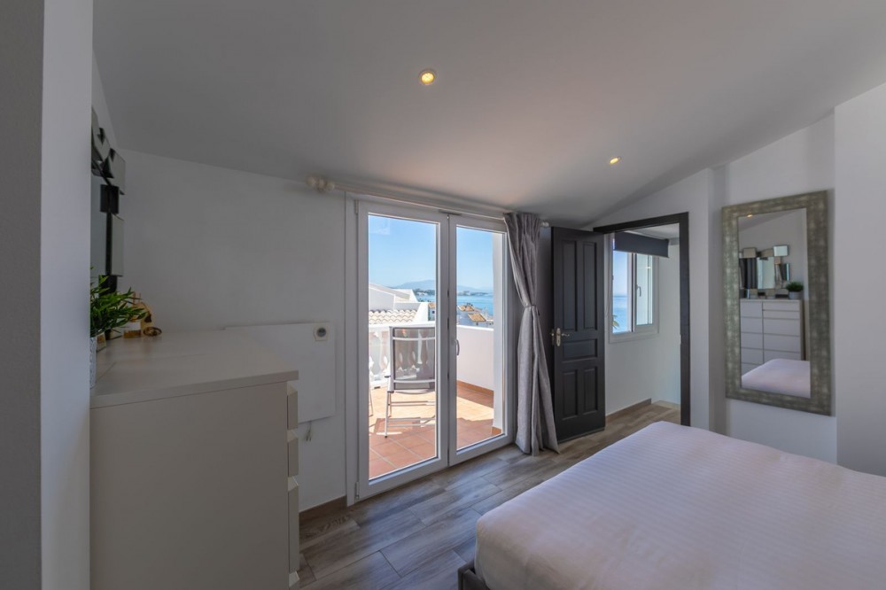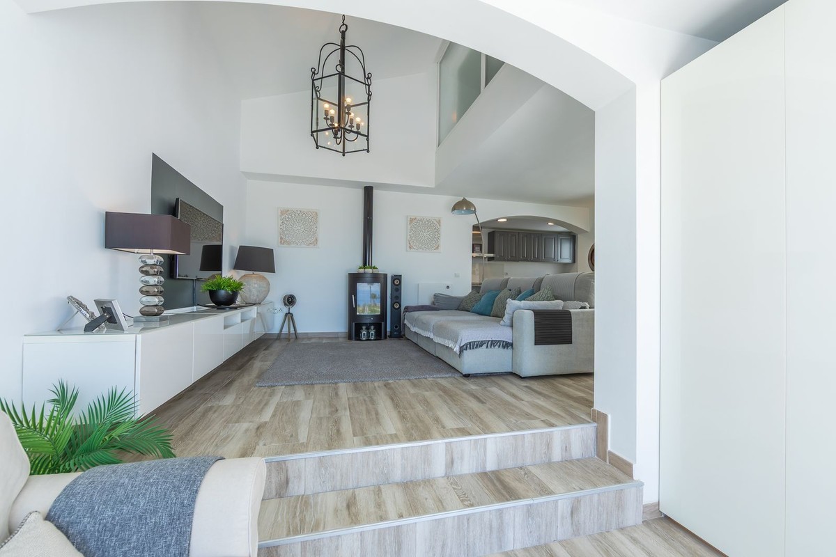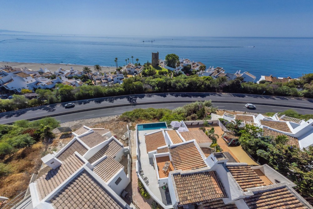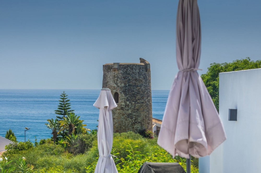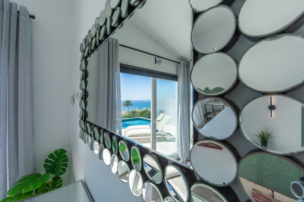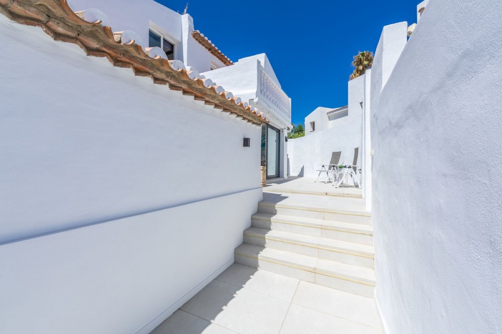 - Modern and elegant villa with extraordinary panoramic views of the sea, the mountains, Gibraltar, and Africa, located in a privileged area with direct access to beautiful beaches via a convenient footbridge or an easy underground tunnel. This property is part of a unique architectural complex designed by renowned European architect Aubrey David, widely awarded for his innovative and aesthetic approach. Set within a well-established and meticulously maintained residential community, it offers access to six communal swimming pools, mature gardens, a gym, and a tennis court. Each villa in the complex features a unique design and layout, adding to the exclusive character of the community. The villa enjoys an excellent location, just a short drive from Estepona, La Duquesa, and Sabinillas, and well connected to Sotogrande, Marbella, Gibraltar, and Málaga Airport. All essential services, supermarkets, schools, and the new hospital are conveniently close, just 2 km away. Ideal for golf enthusiasts, the property is next to Estepona Golf and close to prestigious courses such as Finca Cortesin. Facing southeast and recently renovated, the villa retains its charming original rustic style. It is laid out over several levels, allowing for an abundance of natural light through its many windows. The home features several terraces with different orientations, a private pool, and a spacious covered parking area. Holiday rentals are allowed, with a 20% supplement applied to the community fee. A property full of character, charm, and an unbeatable location. Highly recommended for viewing.