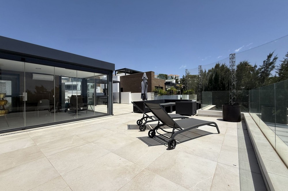 - This 3-bedroom, 2-bathroom duplex penthouse offers expansive windows and two large terraces with incredible frontline golf and sea views. It includes a private jacuzzi perfect for relaxing while enjoying the scenery and a south-southwest orientation, maximizing natural light throughout the day. Included: - Brand new, high-quality furniture - 2 underground parking spaces - Storage room This Penthouse is located in Artola Homes, a secure gated complex designed with resort-style luxury and state-of-the-art features. The complex includes landscaped gardens, outdoor and indoor pools, and a fitness room. Positioned on the front line of Cabopino Golf Course, it is close to protected sand dunes and the marina. The area offers access to over 70 golf courses, international schools, health centers, and shopping malls. Marbella’s town center is just 10 minutes away.