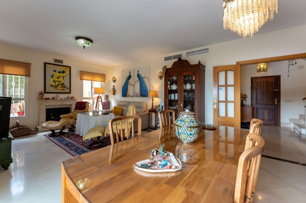 - Located in the sought-after residential area of Cerro del Águila on Mijas Costa, this beautifully presented detached corner villa offers a unique combination of privacy, open views, and exceptional comfort. Enjoy uninterrupted panoramic vistas across the surrounding countryside and mountains, with an added bonus of sea views from the private terrace of the master suite. Set on a generous 602m² plot, this immaculate home was built in 2007 and has been meticulously maintained by its current owner. The villa spans three levels, offering a well-thought-out layout ideal for family living. Interior Features • Basement Level: Includes a spacious garage for one vehicle, a large storage room (offering potential to convert into a fourth bedroom), a bathroom with shower and window for natural ventilation, and an independent utility/laundry room. • Main Floor: Welcoming entrance hall, a modern fully fitted kitchen with access to a charming, enclosed terrace with glass curtains, perfect for enjoying breakfast year-round. The bright and spacious living/dining area features a fireplace and opens onto a covered terrace overlooking the pool and surrounding landscape. This floor also includes a double bedroom with en-suite bathroom and fitted wardrobes. • Upper Floor: Two double bedrooms, both with en-suite bathrooms. The master suite offers a dressing area and access to a private terrace with breathtaking views of the mountains and the sea. The property benefits from air conditioning throughout the ground and first floors, security glass windows in the living room, and a 2,000 litre water deposit tank. Outdoor Space The low-maintenance garden features a saltwater swimming pool, bordered by artificial grass and mature planting, an ideal space to relax or entertain. There is further terracing and garden area located at the front of the house. Additional Information • Built size: 220 m² • Community fees: €90/month • Fully registered with First Occupation License • Town water supply • Conveniently located near schools, golf courses, and shopping areas • Just 7 km (approx. 14 minutes by car) from the beach • Walking distance to a bus stop with regular daily routes This is a fantastic opportunity to own a move-in ready family home in a tranquil yet well-connected location. Early viewings are highly recommended. The Listing agent for itself and as agent for the vendor gives notice that: 1. These particulars are only a general outline for the guidance of intending purchasers and do not constitute in whole or in part an offer or a Contract. 2. Reasonable endeav-ours have been made to ensure that the information given in these particulars is materi-ally correct, but any intending purchaser should satisfy themselves by inspection, searches, enquiries, and survey as to the correctness of each statement. 3. All statements in these particulars are made without responsibility on the part of Listing agent or the vendor. 4. No statement in these particulars is to be relied upon as a statement or repre-sentation of fact. 5. Neither Listing agent nor anyone in its employment or acting on its behalf has authority to make any representation or warranty in relation to this property. 6. Nothing in these particulars shall be deemed to be a statement that the property is in good repair or condition or otherwise nor that any services or facilities are in good work-ing order. 7. Photographs may show only certain parts and aspects of the property at the time when the photographs were taken and you should rely on actual inspection. 8. No assumption should be made in respect of parts of the property not shown in photo-graphs. 9. Any areas, measurements or distances are only approximate. 10. Any refer-ence to alterations or use is not intended to be a statement that any necessary planning, building regulation, listed building or any other consent has been obtained. 11. Amounts quoted are exclusive of Tax if applicable.