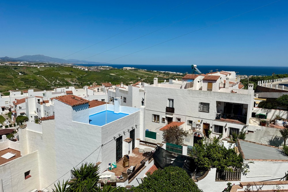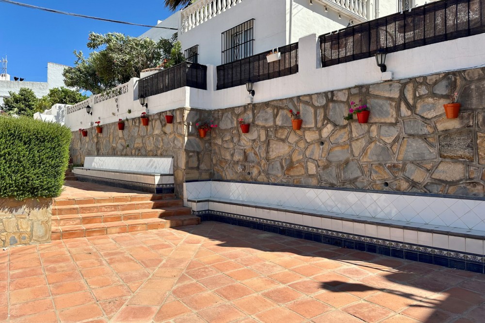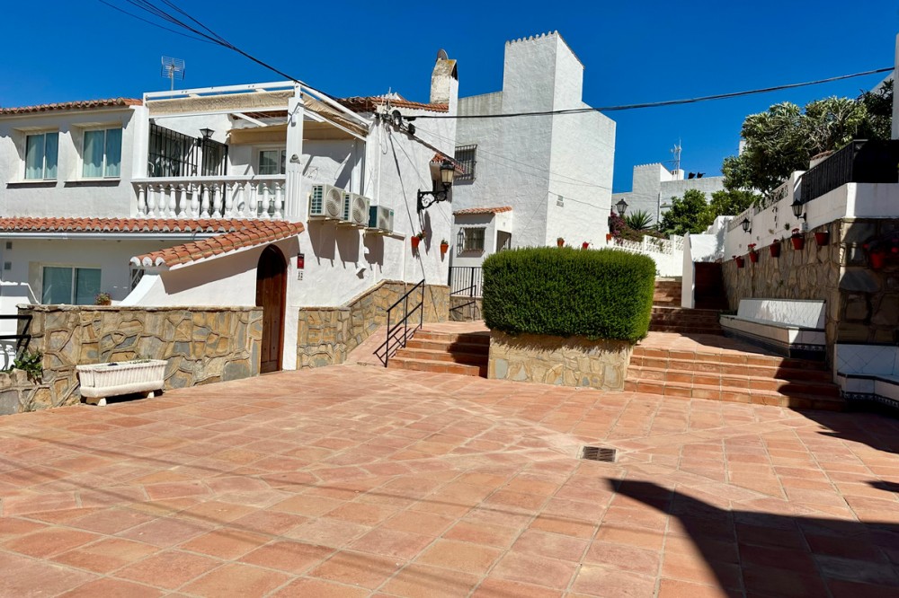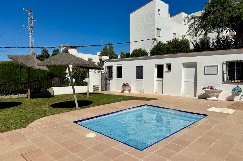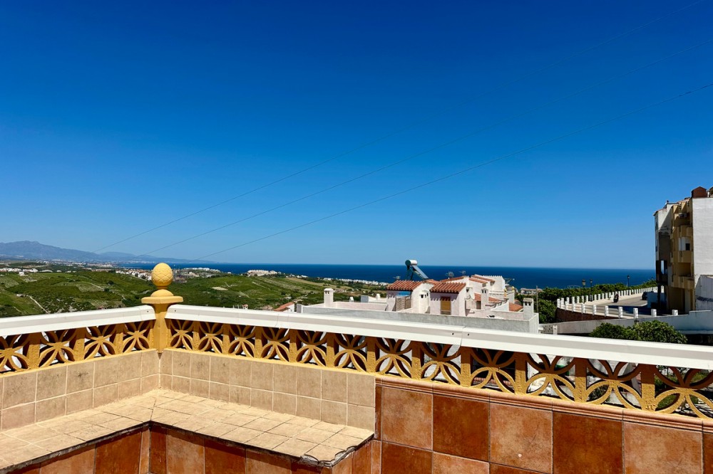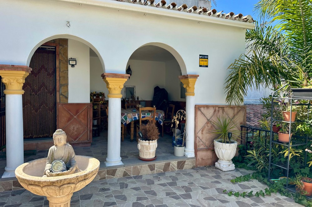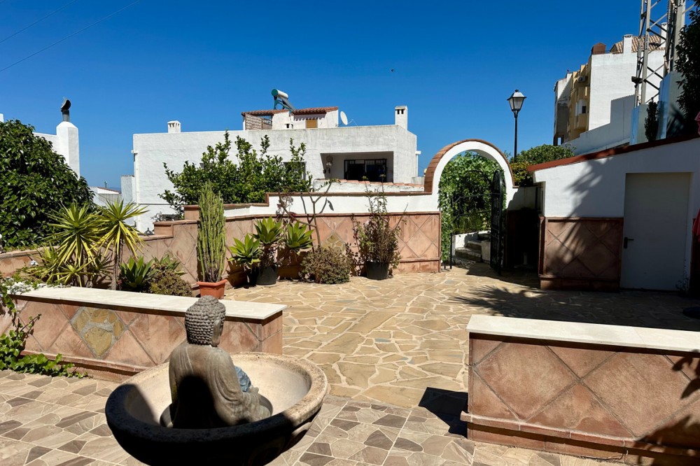 - Wonderful Detached Villa in the Heart of Manilva This charming three-storey detached home invites you to enjoy Andalusian charm in a peaceful residential complex with a swimming pool, just steps from the center of Manilva. Upon arrival, you're welcomed by a sunny south-facing patio of approximately 60 m², featuring elegant traditional-style columns, a covered terrace, and a perfectly integrated storage room. Inside, a hallway leads to a bathroom with shower, and further on, it opens up to a warm living room with a fireplace and an open-plan kitchen. The separate dining area connects to a terrace with a barbecue — ideal for sharing outdoor moments. A lower level offers another terrace of about 40 m² with an independent room, outdoor shower, and laundry area. From the living room, a beautiful spiral staircase leads to the first floor, where you’ll find two bedrooms with built-in wardrobes and a modern bathroom with shower. Finally, on the top floor, a lovely rooftop terrace of around 30 m² offers open views of the mountains, countryside, and sea, a perfect spot to breathe and disconnect. You have at your disposal the abbreviated information document. Costs: Taxes (ITP or VAT + AJD) + Notary and registry fees. NGS