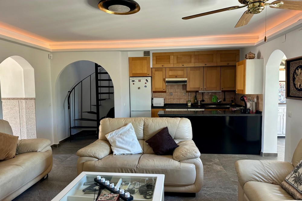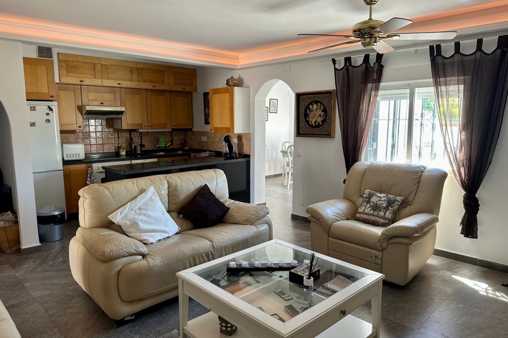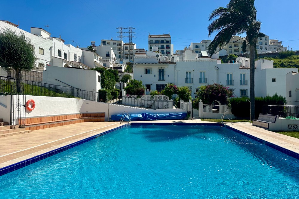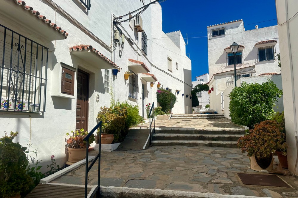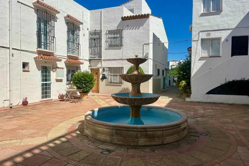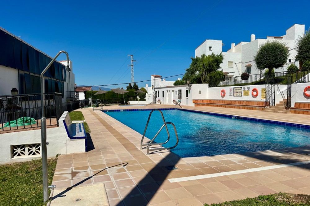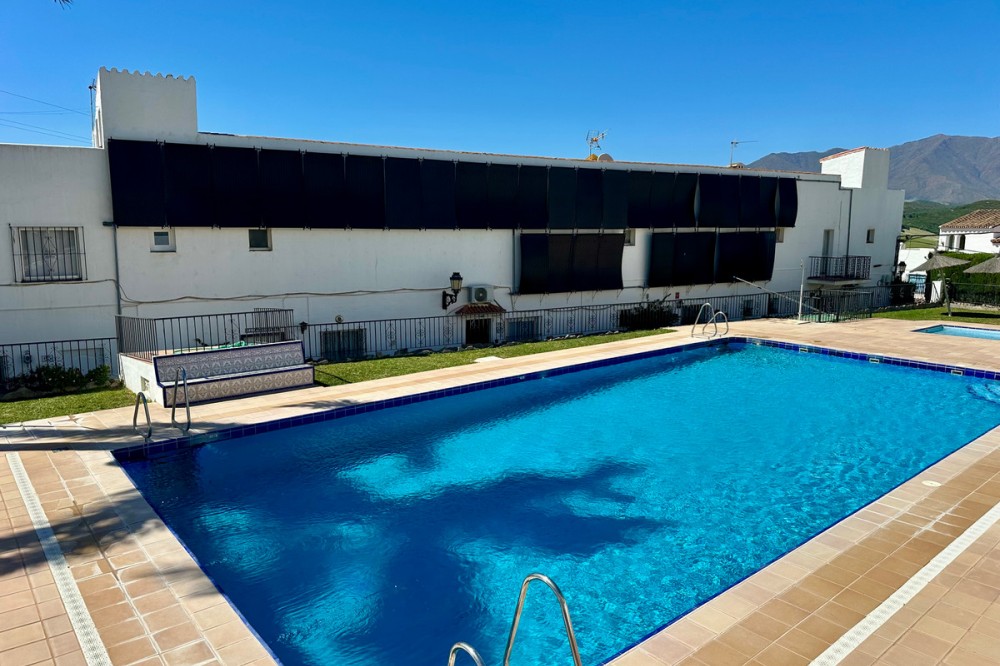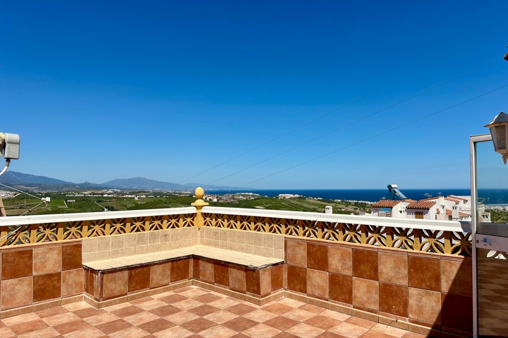 - Wonderful Detached Villa in the Heart of Manilva This charming three-storey detached home invites you to enjoy Andalusian charm in a peaceful residential complex with a swimming pool, just steps from the center of Manilva. Upon arrival, you're welcomed by a sunny south-facing patio of approximately 60 m², featuring elegant traditional-style columns, a covered terrace, and a perfectly integrated storage room. Inside, a hallway leads to a bathroom with shower, and further on, it opens up to a warm living room with a fireplace and an open-plan kitchen. The separate dining area connects to a terrace with a barbecue — ideal for sharing outdoor moments. A lower level offers another terrace of about 40 m² with an independent room, outdoor shower, and laundry area. From the living room, a beautiful spiral staircase leads to the first floor, where you’ll find two bedrooms with built-in wardrobes and a modern bathroom with shower. Finally, on the top floor, a lovely rooftop terrace of around 30 m² offers open views of the mountains, countryside, and sea, a perfect spot to breathe and disconnect. You have at your disposal the abbreviated information document. Costs: Taxes (ITP or VAT + AJD) + Notary and registry fees. NGS